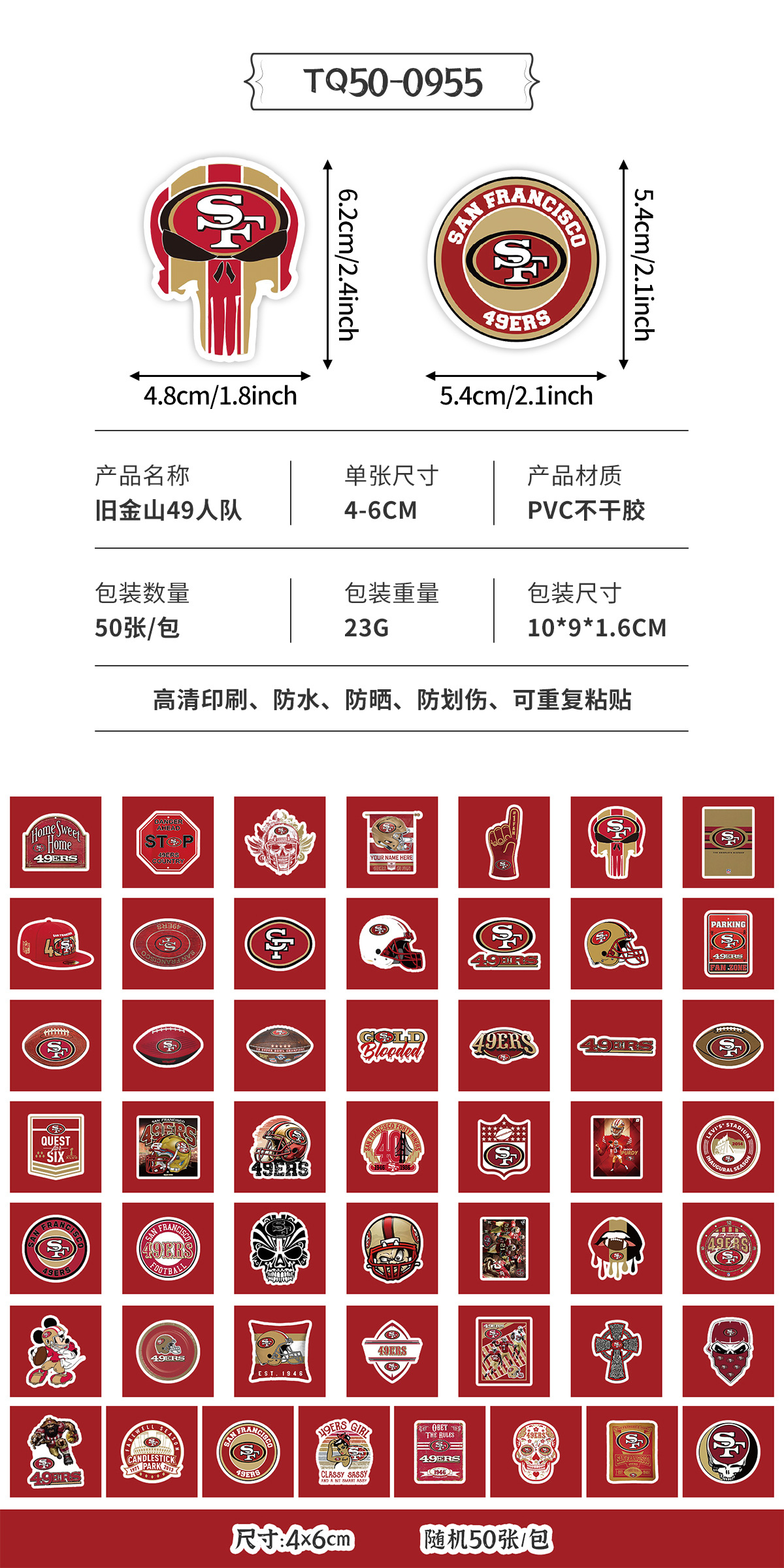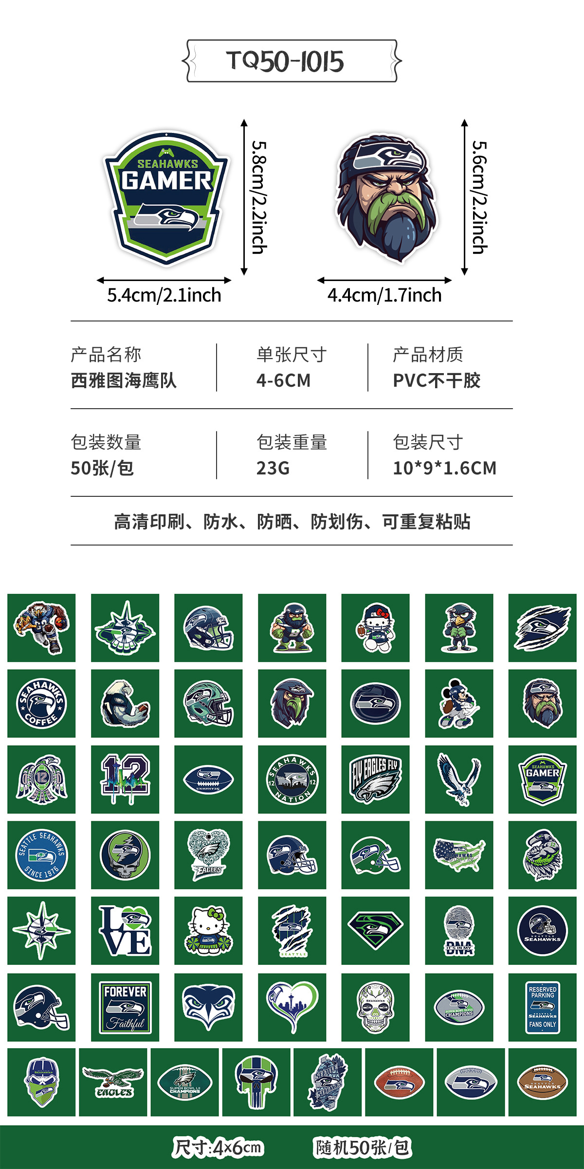 50 다양한 럭비 팀 시리즈 낙서 스티커 물 컵 스케이트 보드 수하물 방수 장식 스티커 도매