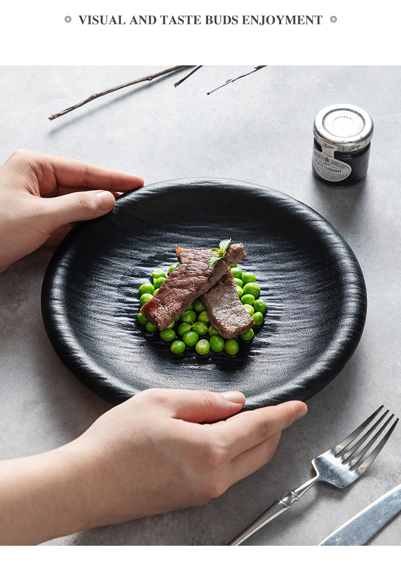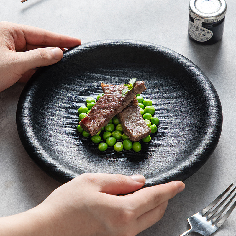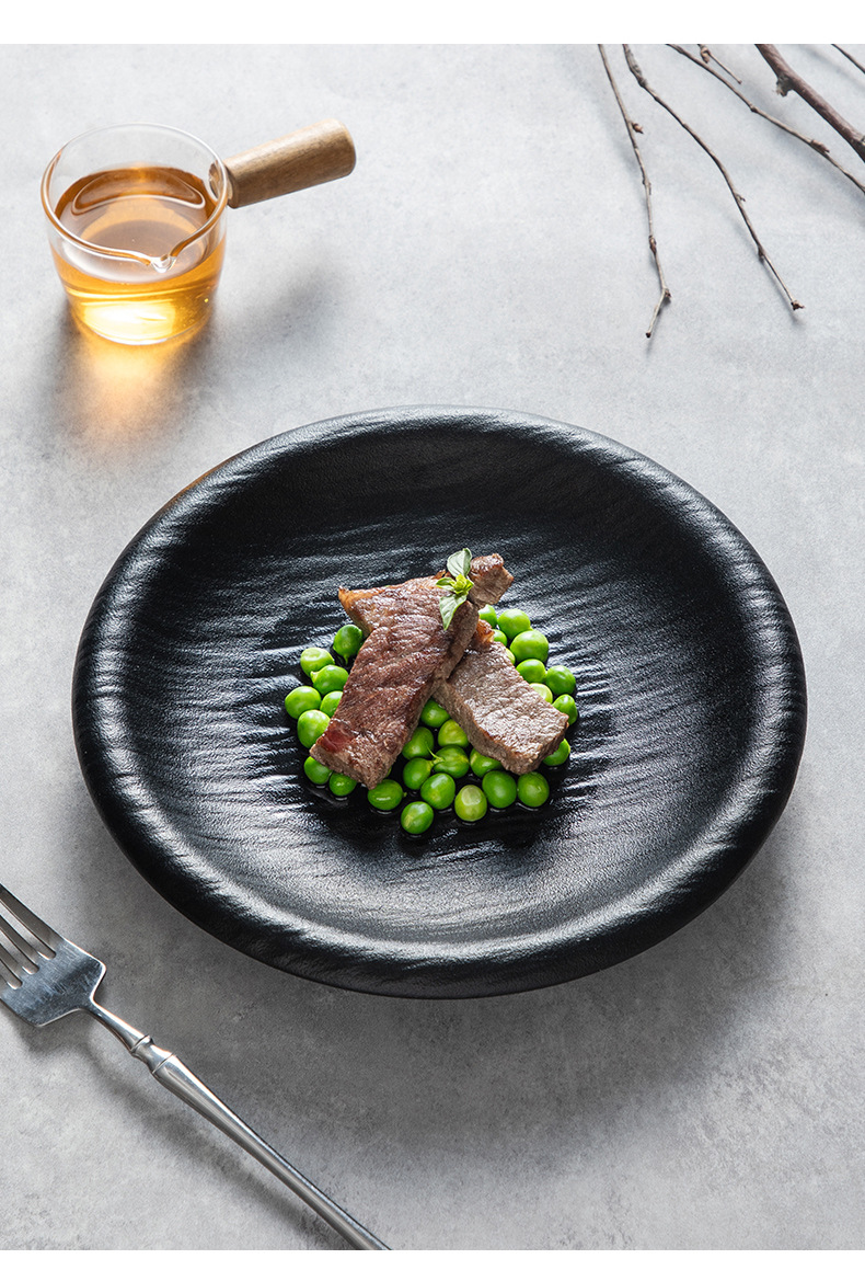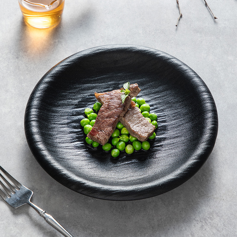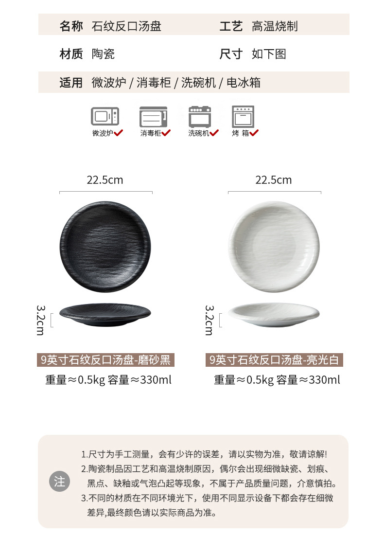 9inch 스톤 패턴 리버스 입 수프 접시 매트 블랙