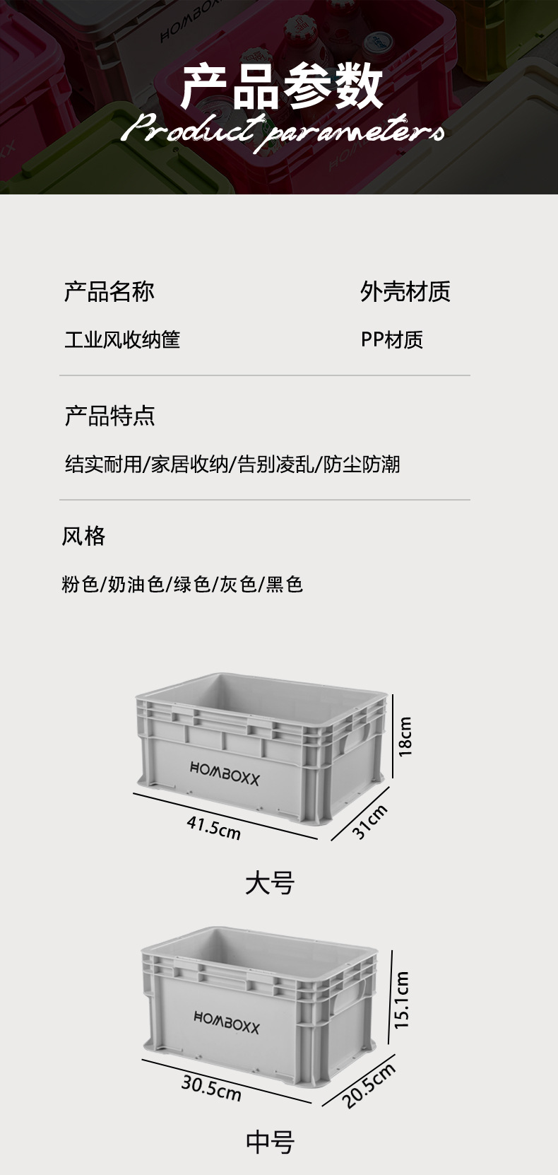 中号收纳箱尺寸:30.5*20.5*15.1CM,产品净重:439g,12个/箱,外箱尺寸:62.5*32*61.5CM,毛重:6.85KG