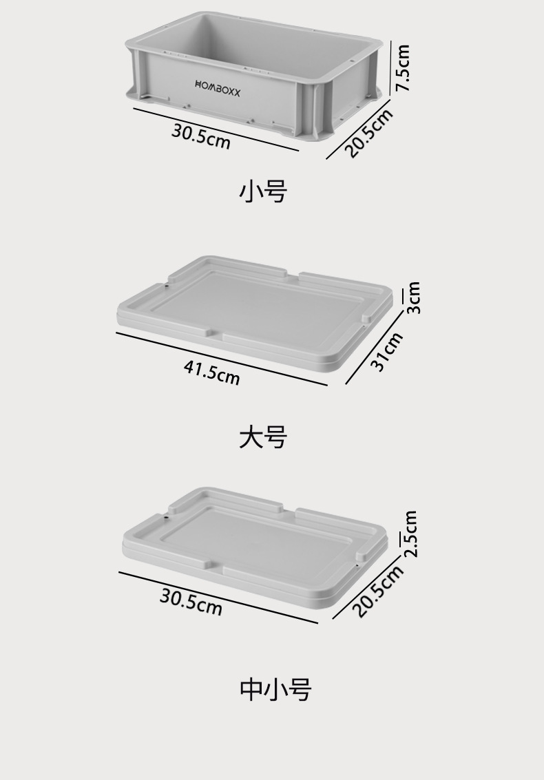 小号收纳箱尺寸:30.5*20.5*7.5CM,产品净重:268g,24个/箱,外箱尺寸:62.5*32*61.5CM,毛重:7.8KG