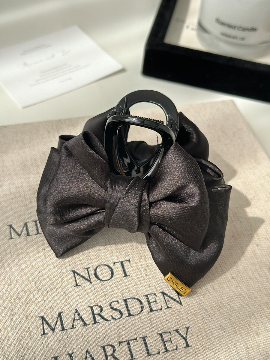 原创蕾丝缎面蝴蝶结发夹女成人高级感小香风后脑勺抓夹马尾发卡