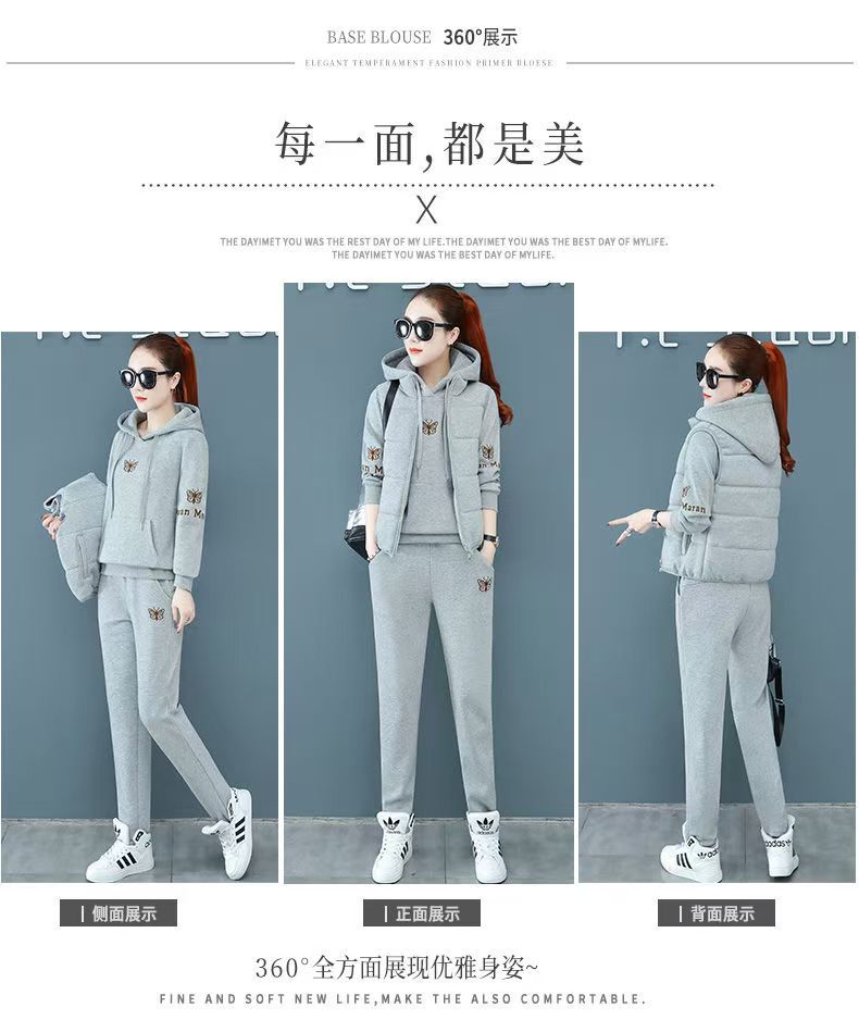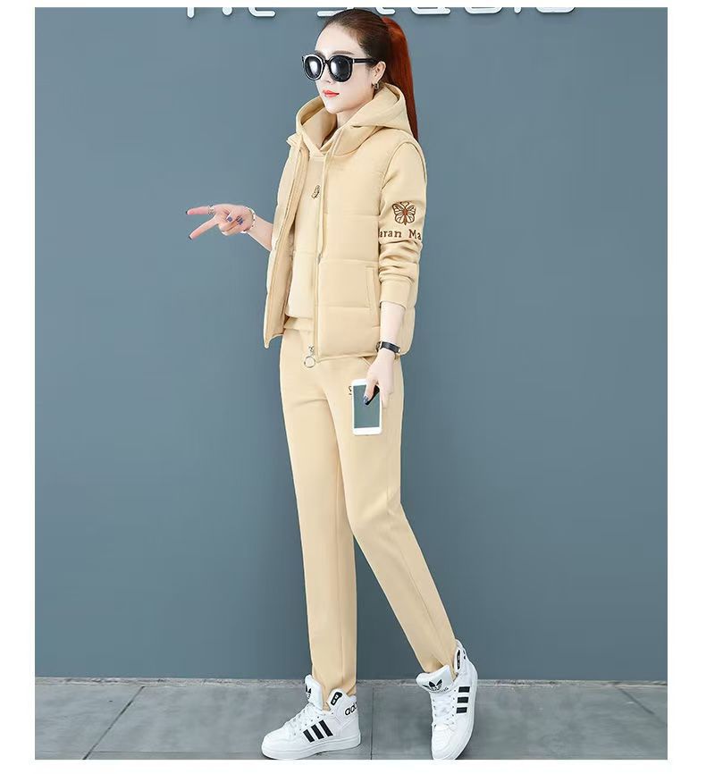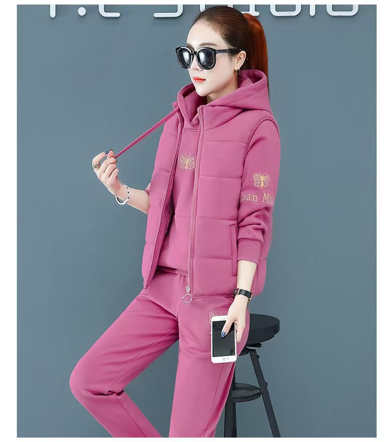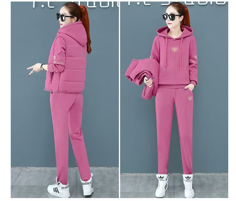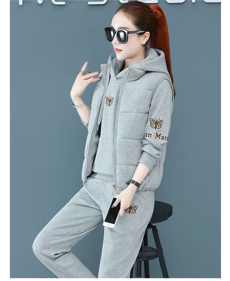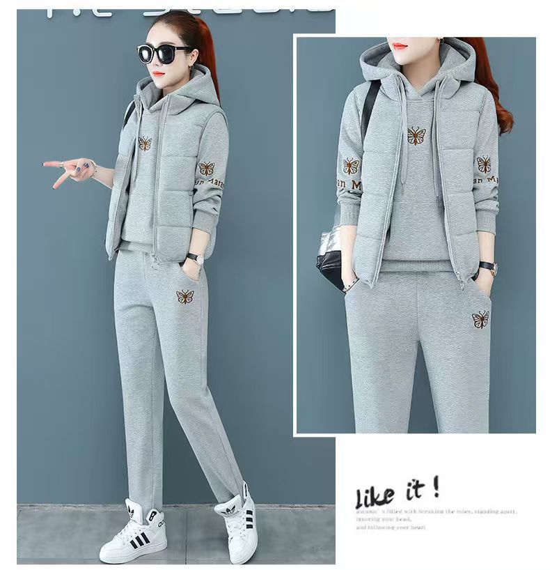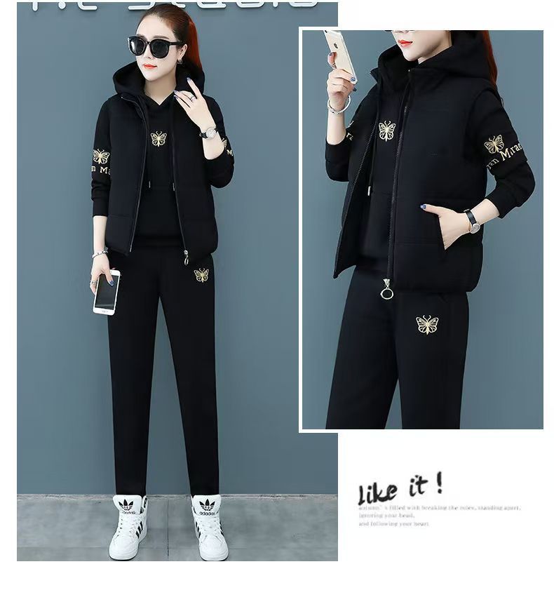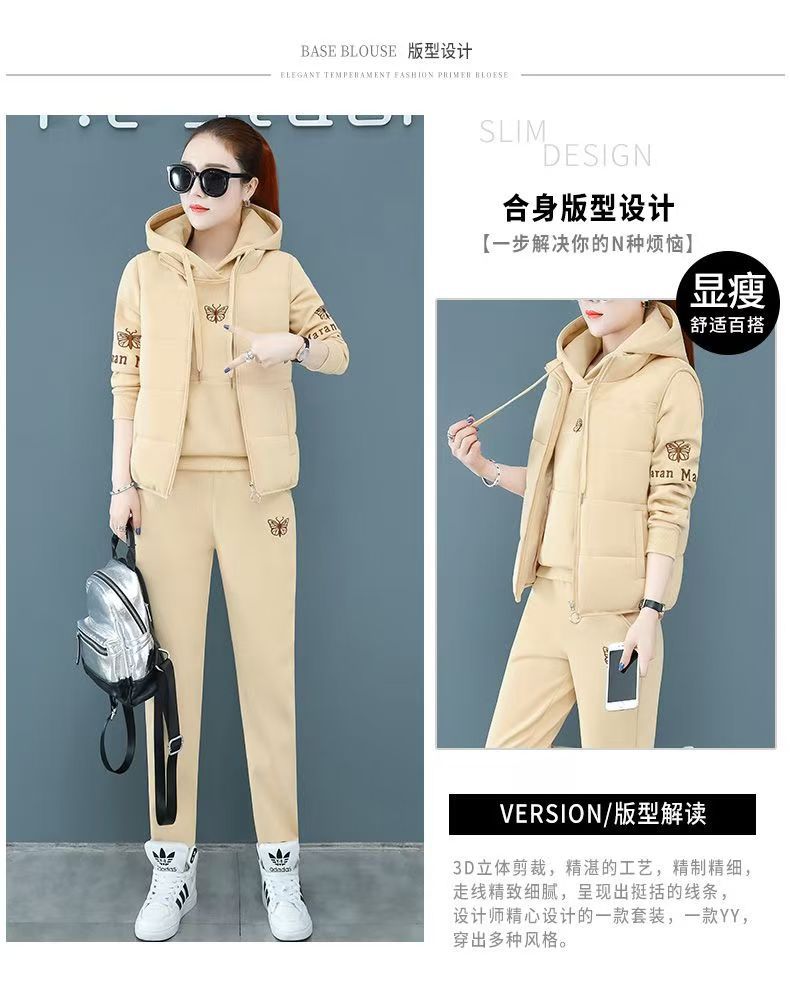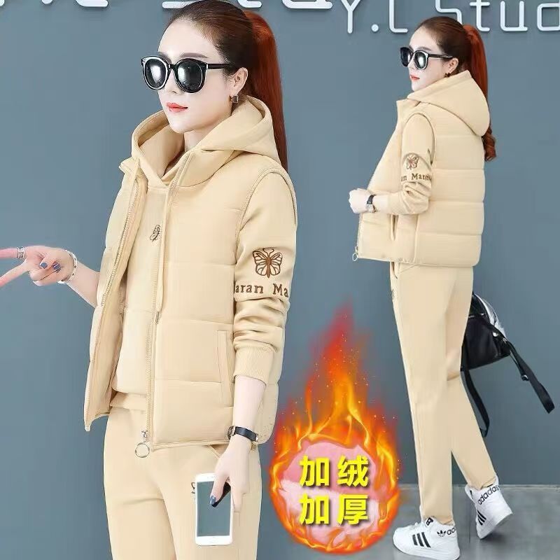어머니의 가을과 겨울 조끼 3 종 세트 중년 및 노인 기모 두꺼운 운동복 세트 여성의 방한 겨울 코트 뉴