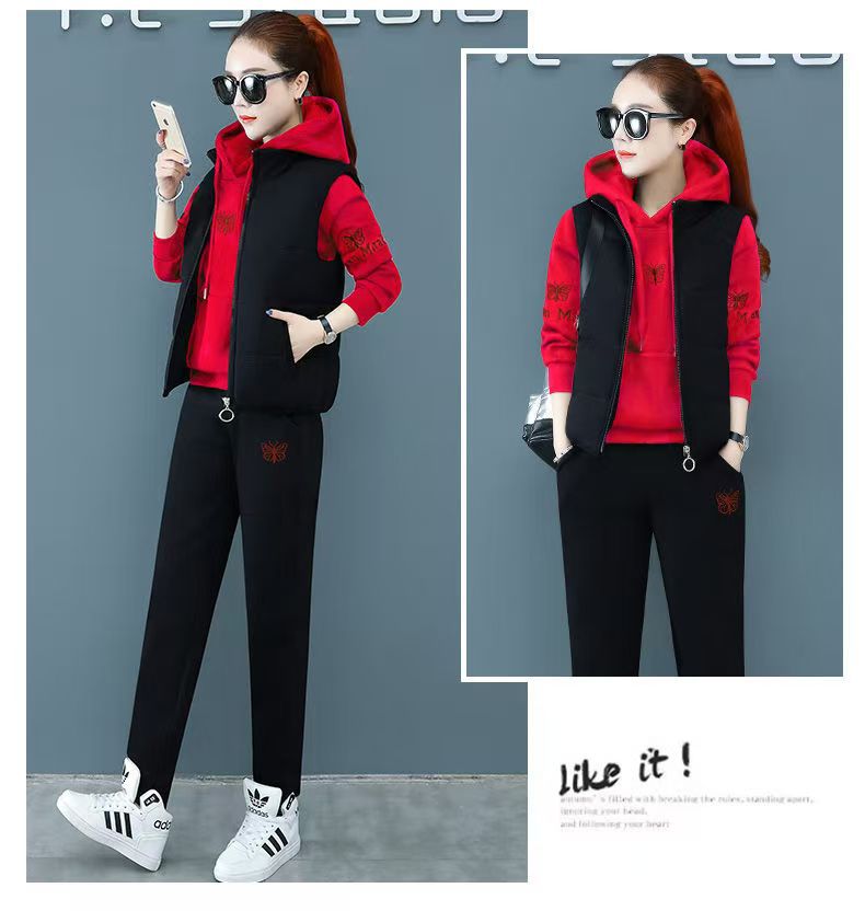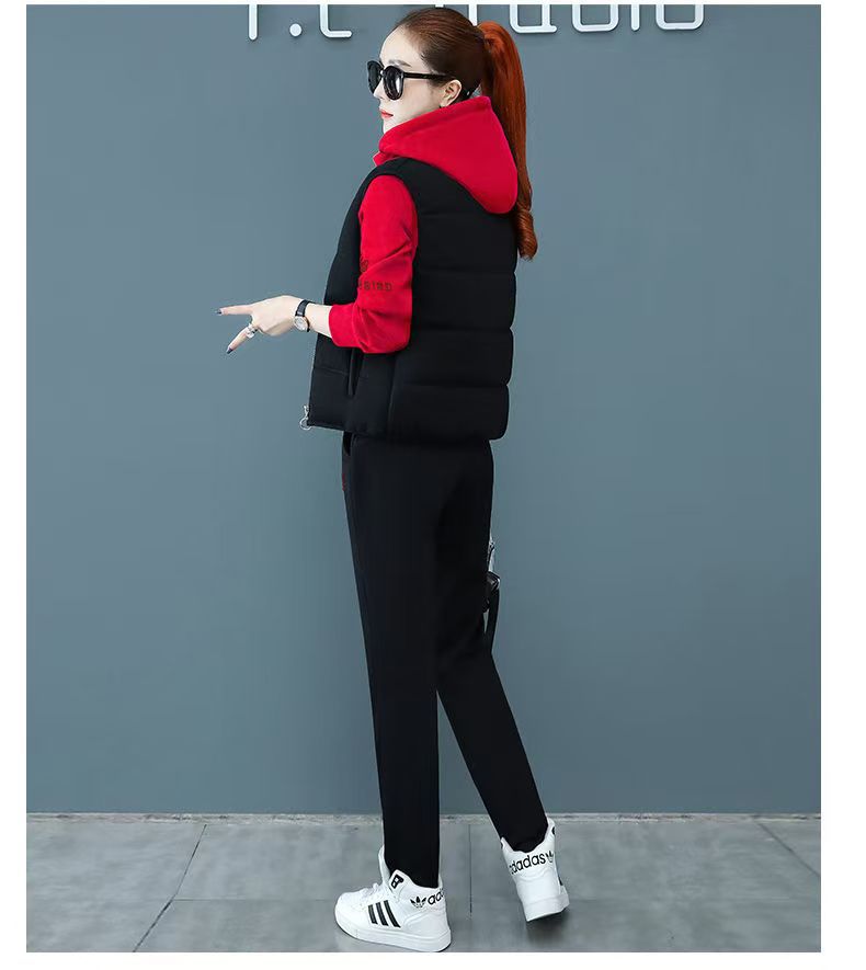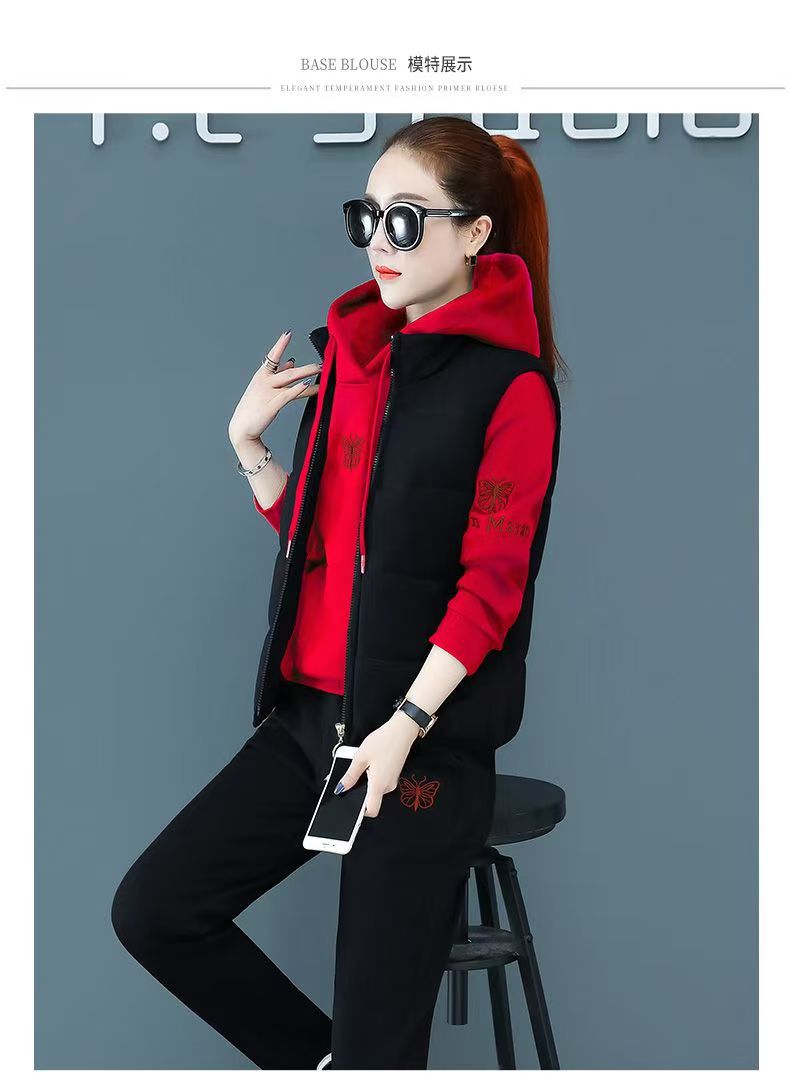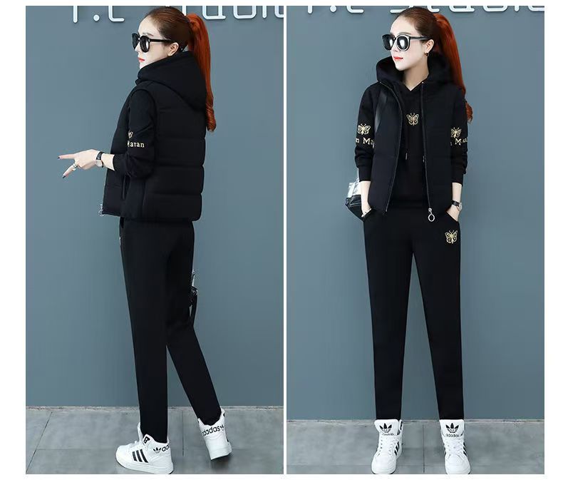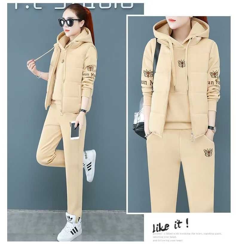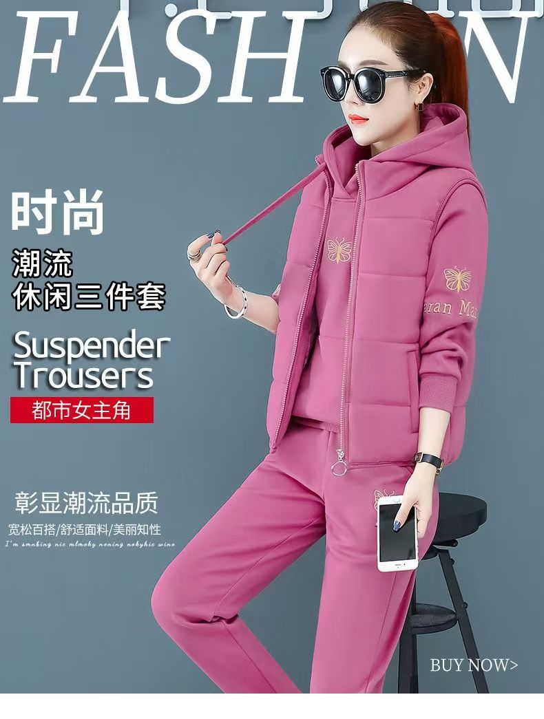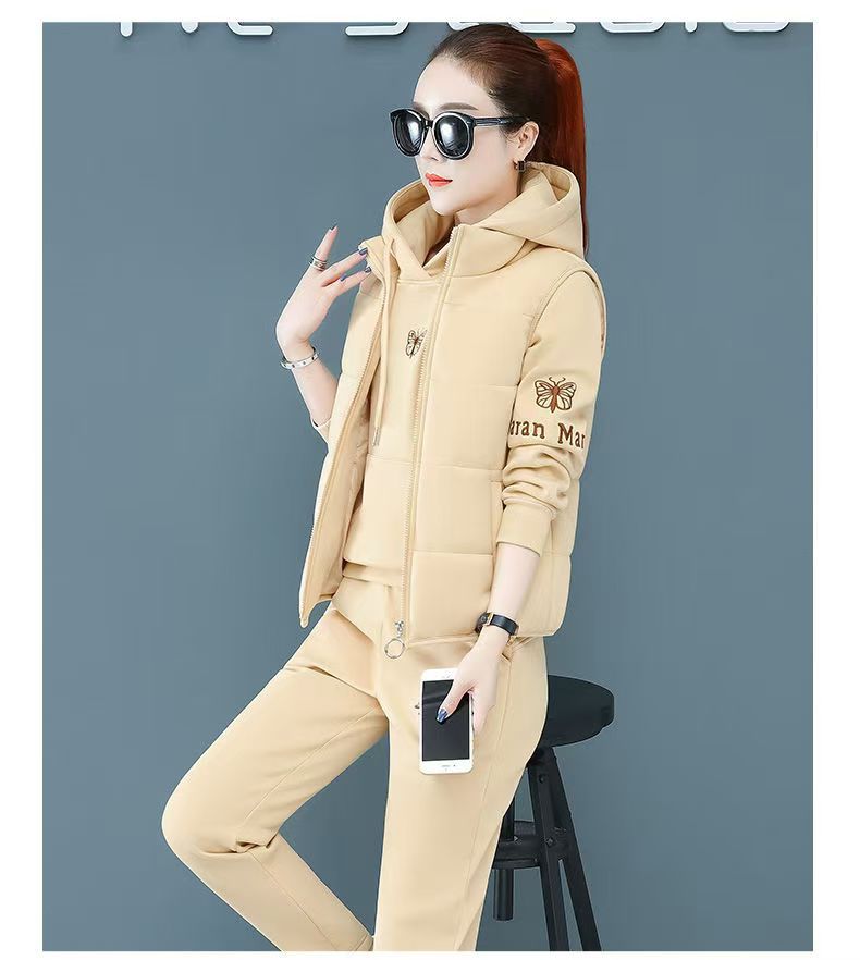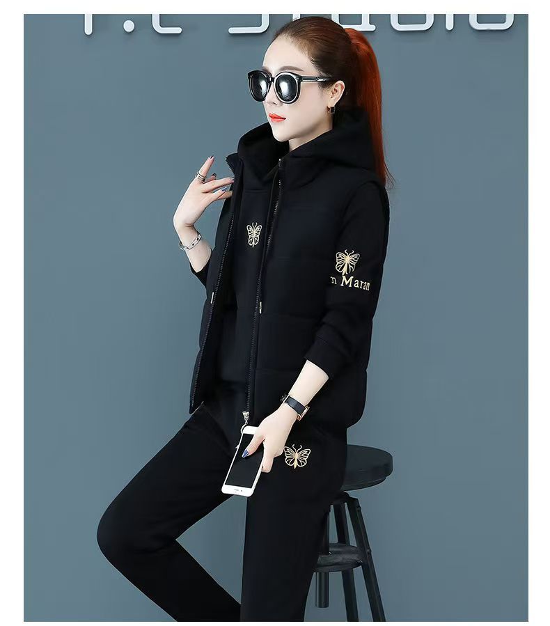 어머니의 가을과 겨울 조끼 3 종 세트 중년 및 노인 기모 두꺼운 운동복 세트 여성의 방한 겨울 코트 뉴