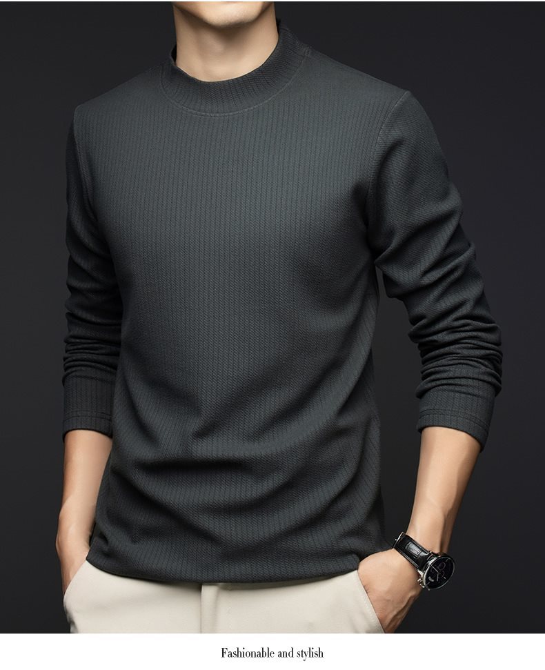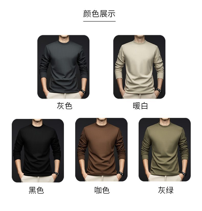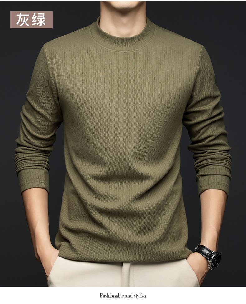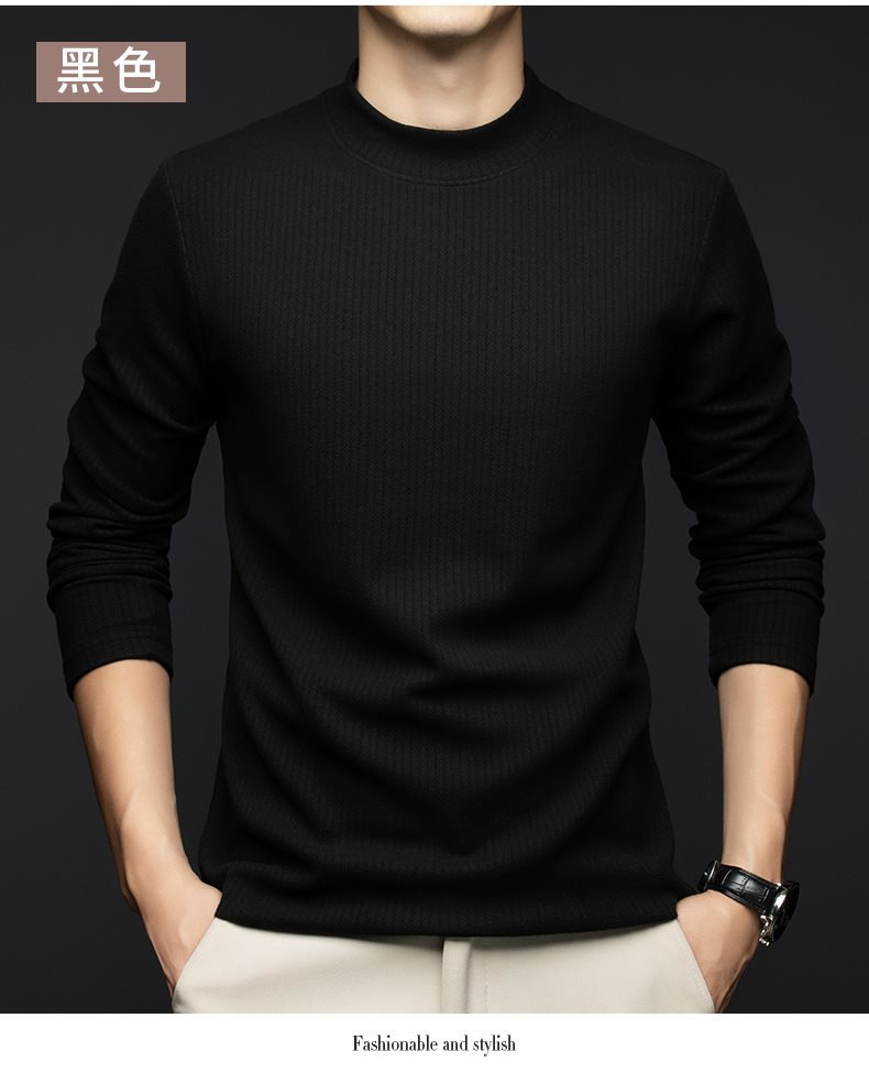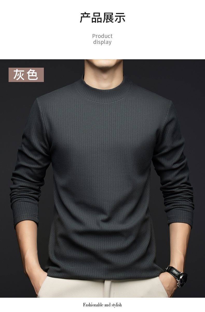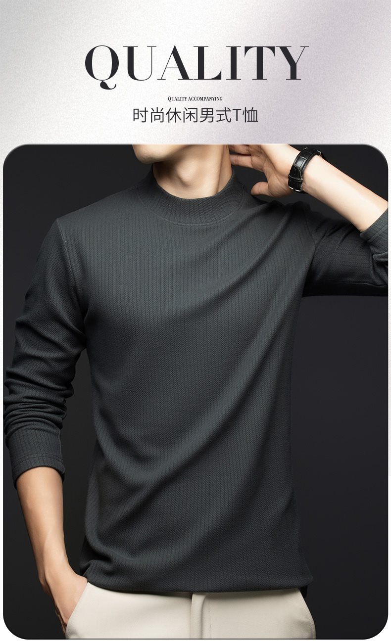 청남의 단색 긴팔 티셔츠 심플 남성 세미 하이 칼라베이스 셔츠 캐주얼 가을 남성 티셔츠 탑