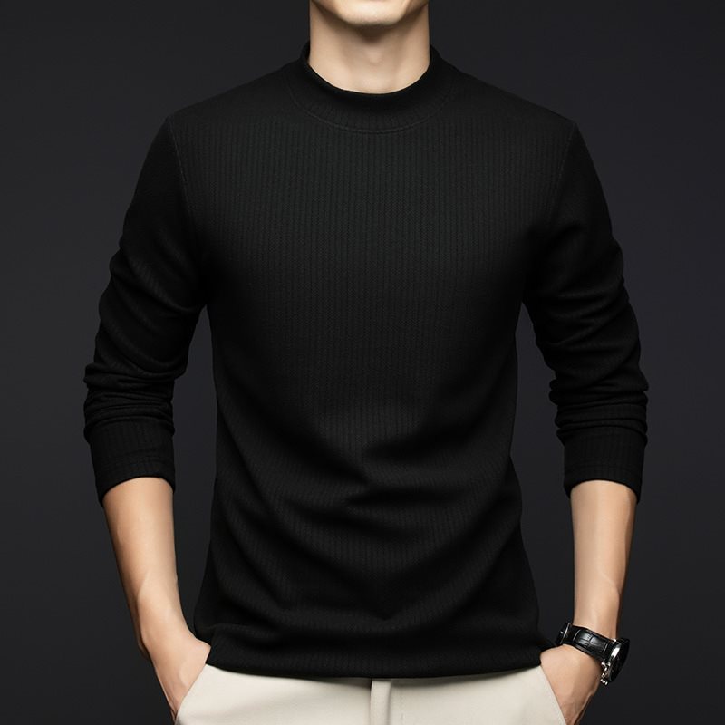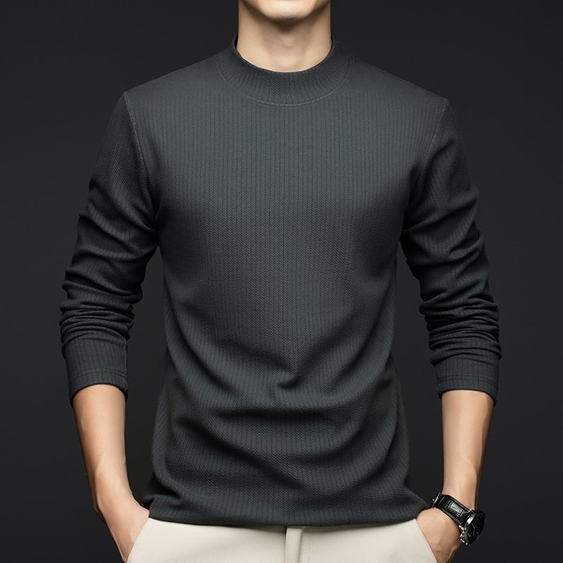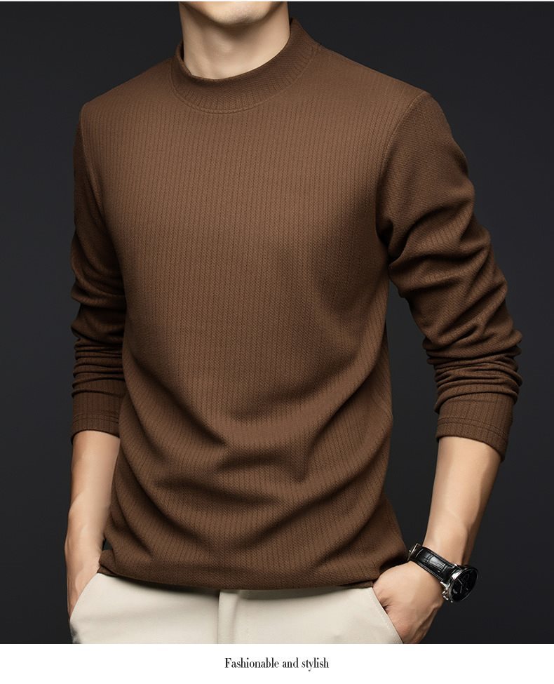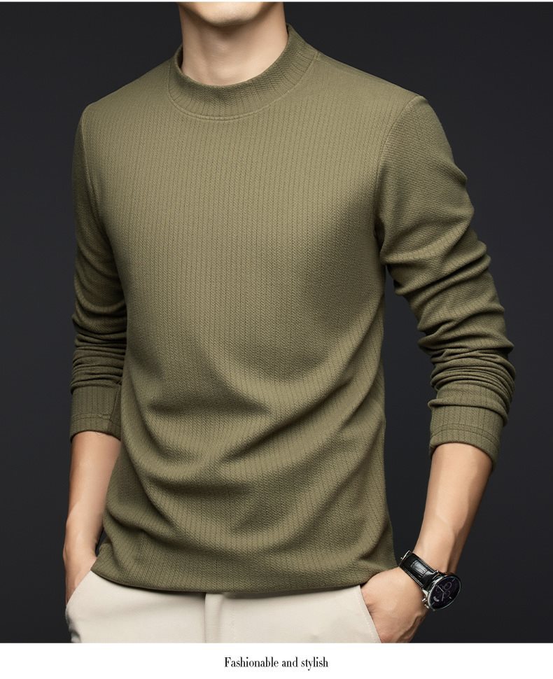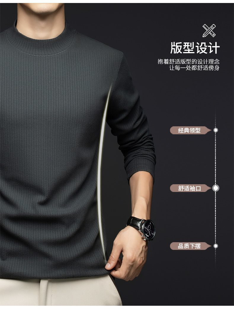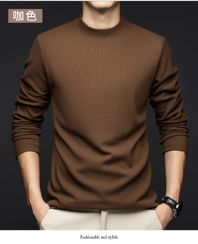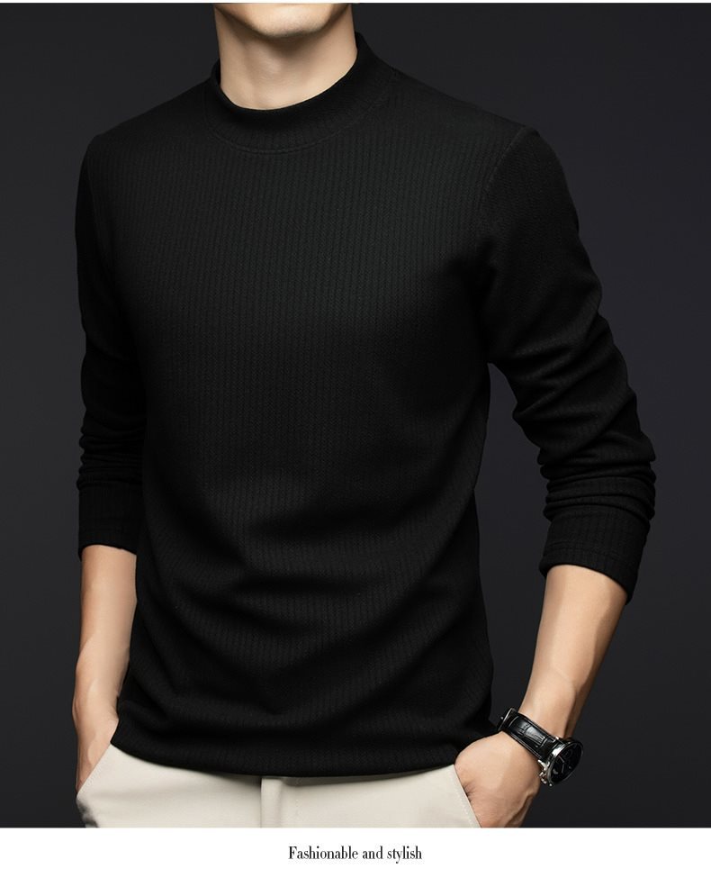청남의 단색 긴팔 티셔츠 심플 남성 세미 하이 칼라베이스 셔츠 캐주얼 가을 남성 티셔츠 탑