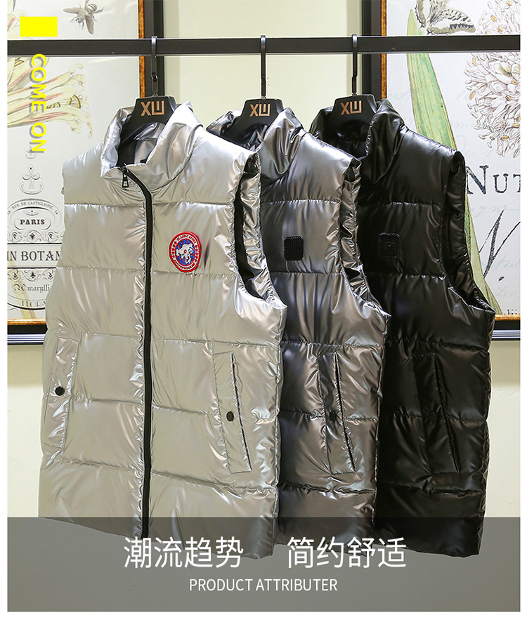 국경 간 유럽 상품 워시없는 밝은 조끼 수직 칼라 플러스 사이즈 캐주얼 올 매치 웨이스트 코트 탑이있는 남자 다운 코튼 조끼