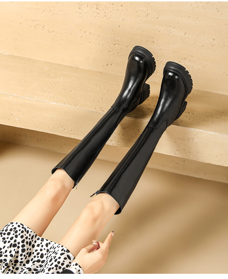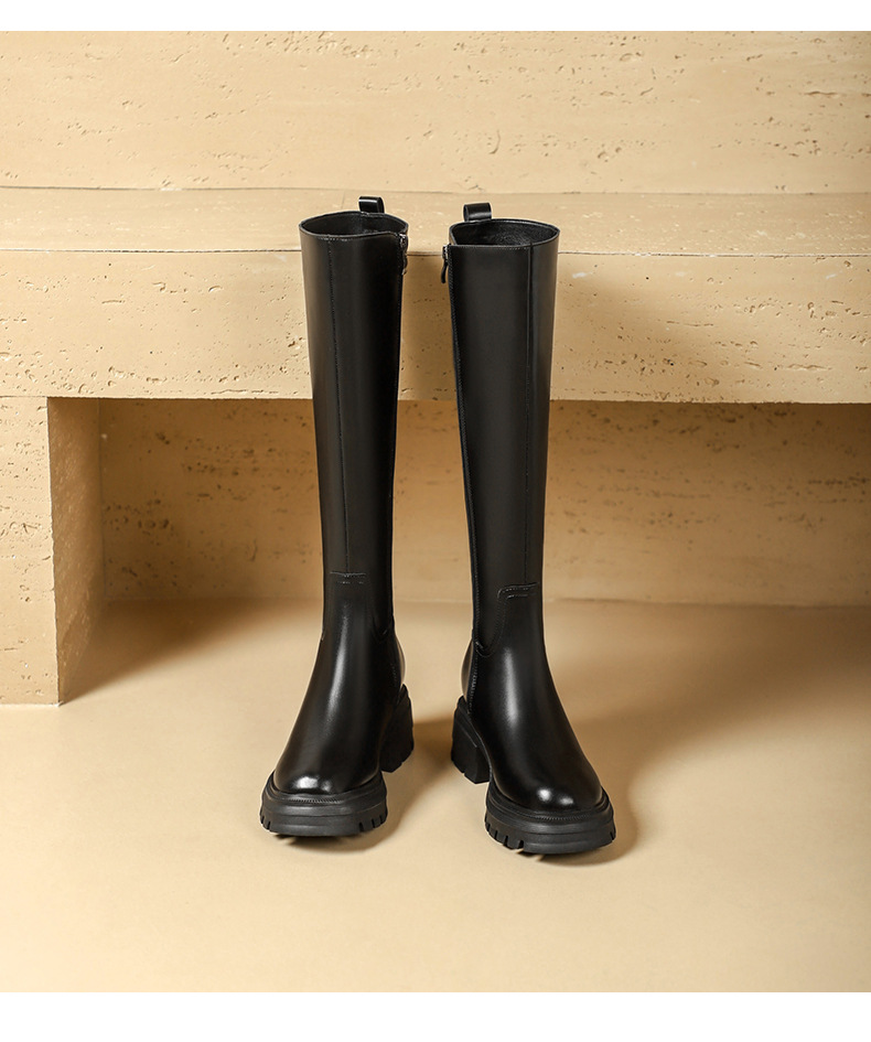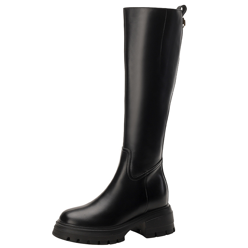 9CM 내부 높이 높이 작은 부츠 여자의 2024 새로운 기모 높은 부츠하지만 무릎 두꺼운 바닥 마틴 부츠