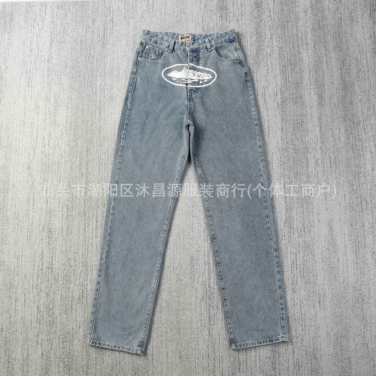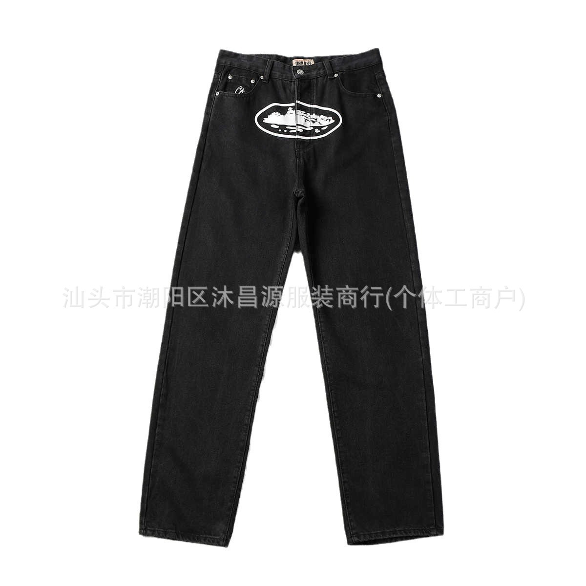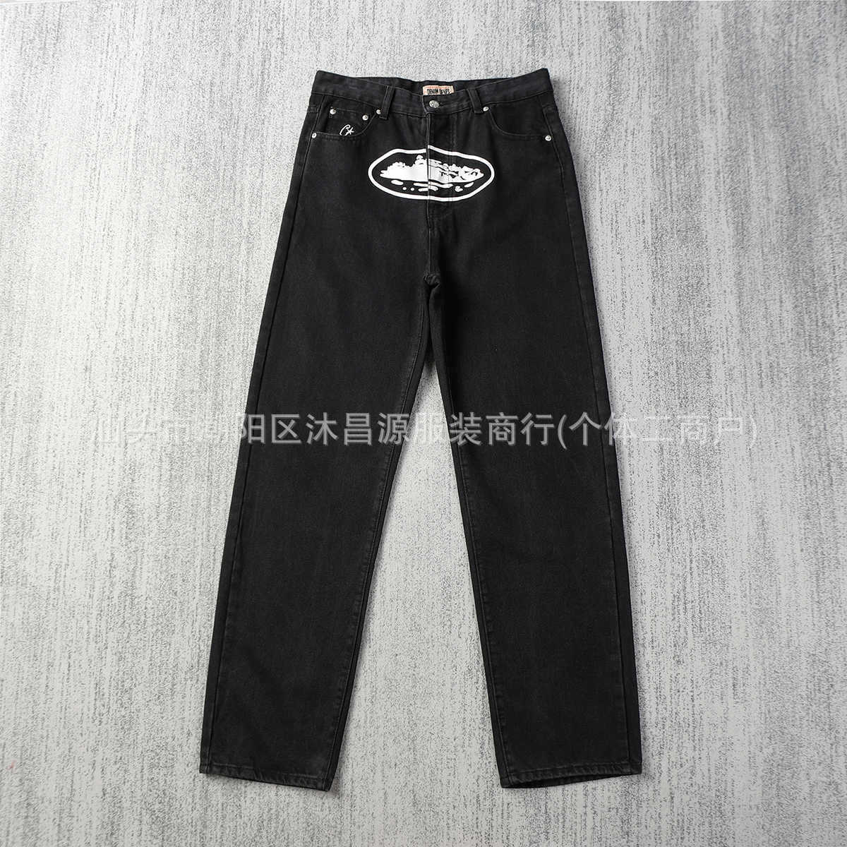 새로운 클래식 알카트라즈 아일랜드 인쇄 캐주얼 하이 스트리트 청바지 남자 루즈 트렌디 올매치 스트레이트 데님 바지