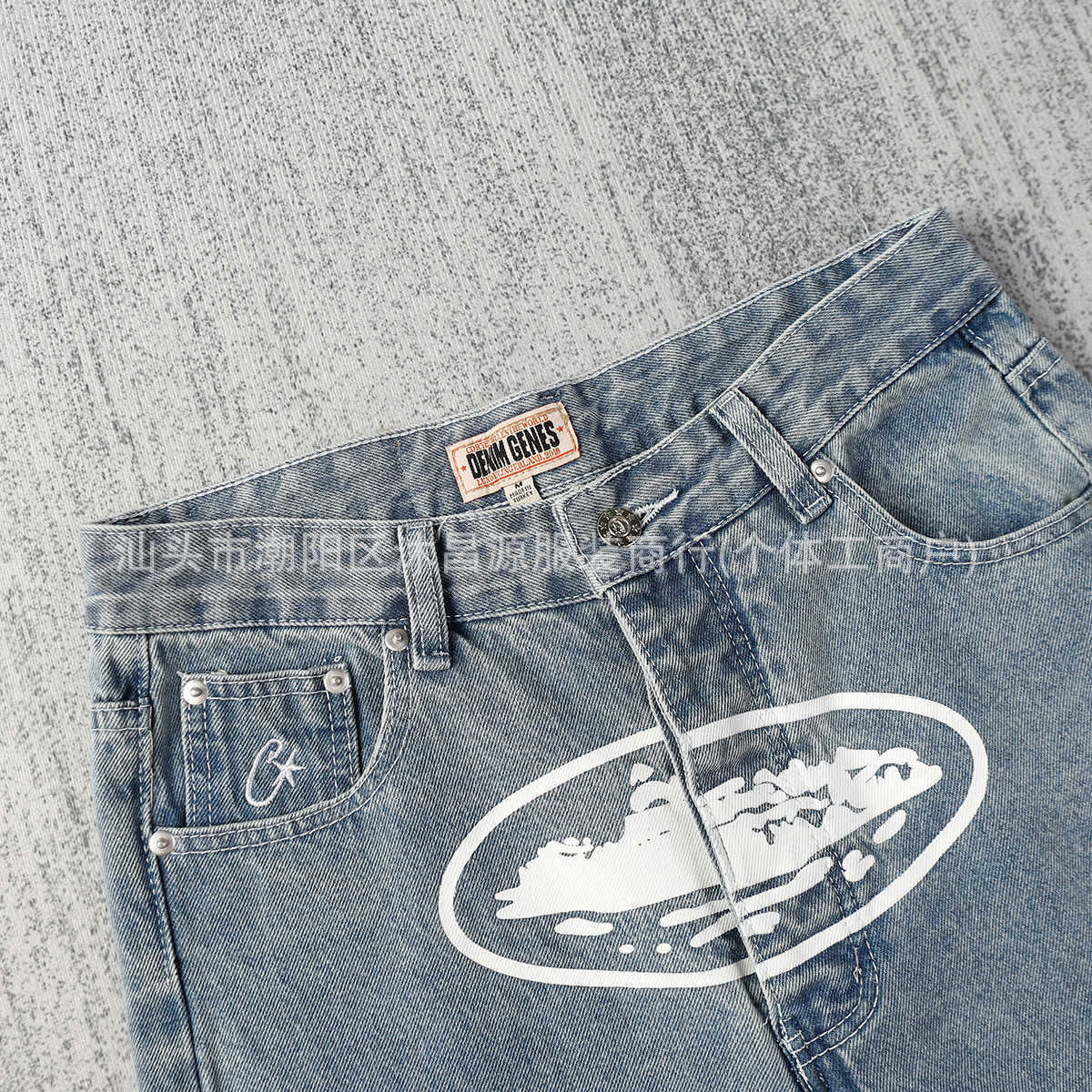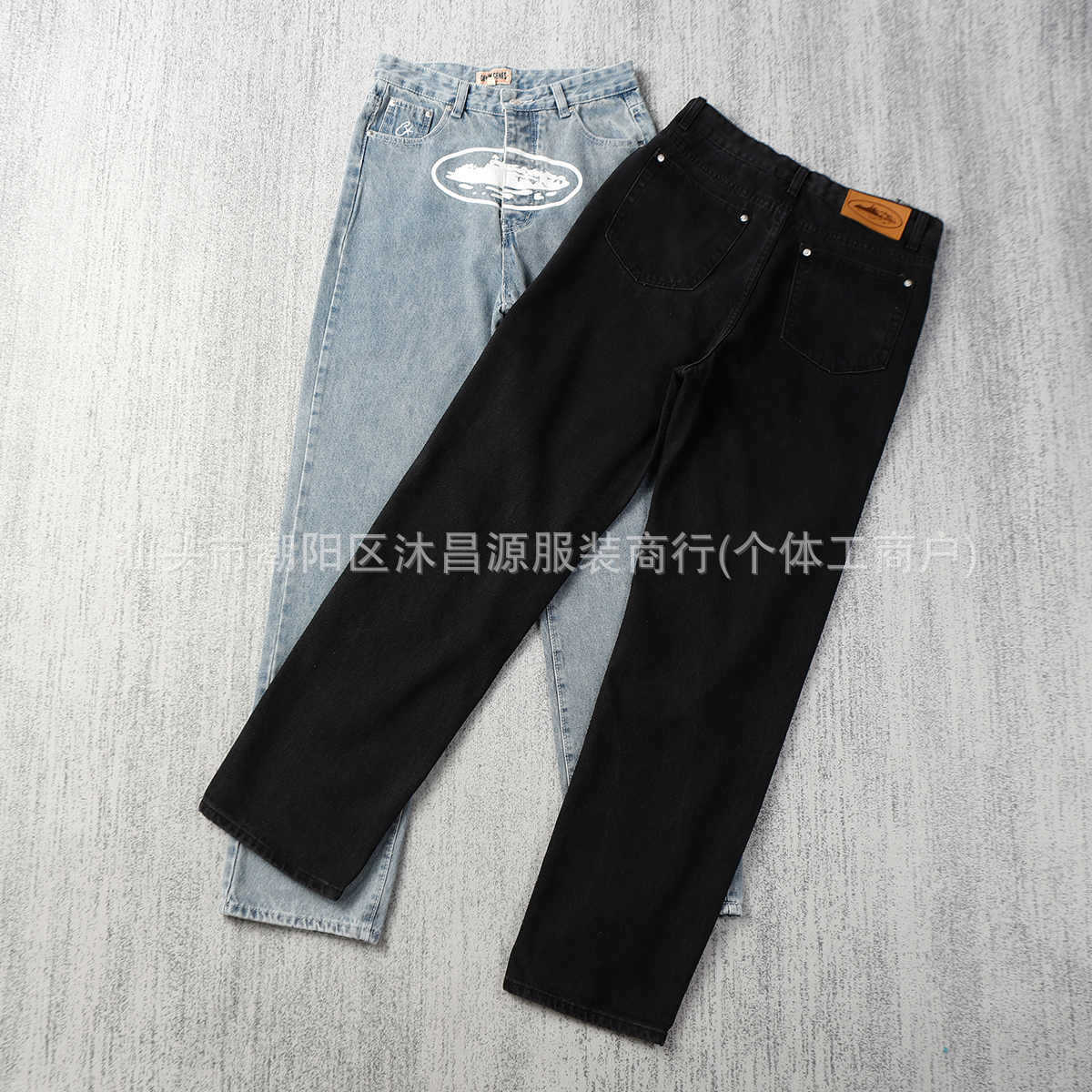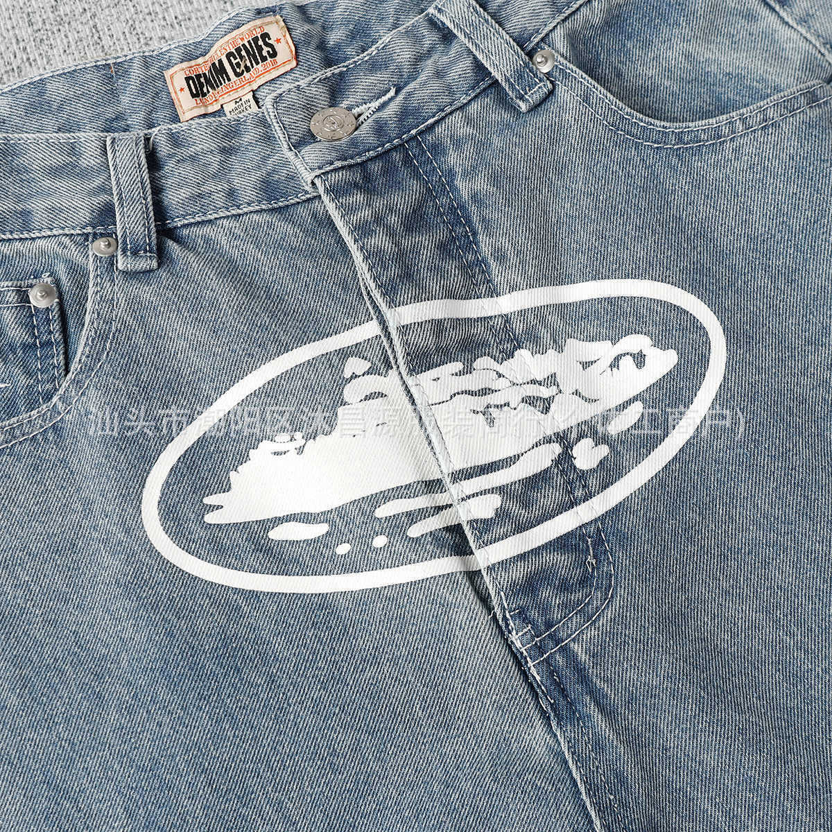 새로운 클래식 알카트라즈 아일랜드 인쇄 캐주얼 하이 스트리트 청바지 남자 루즈 트렌디 올매치 스트레이트 데님 바지