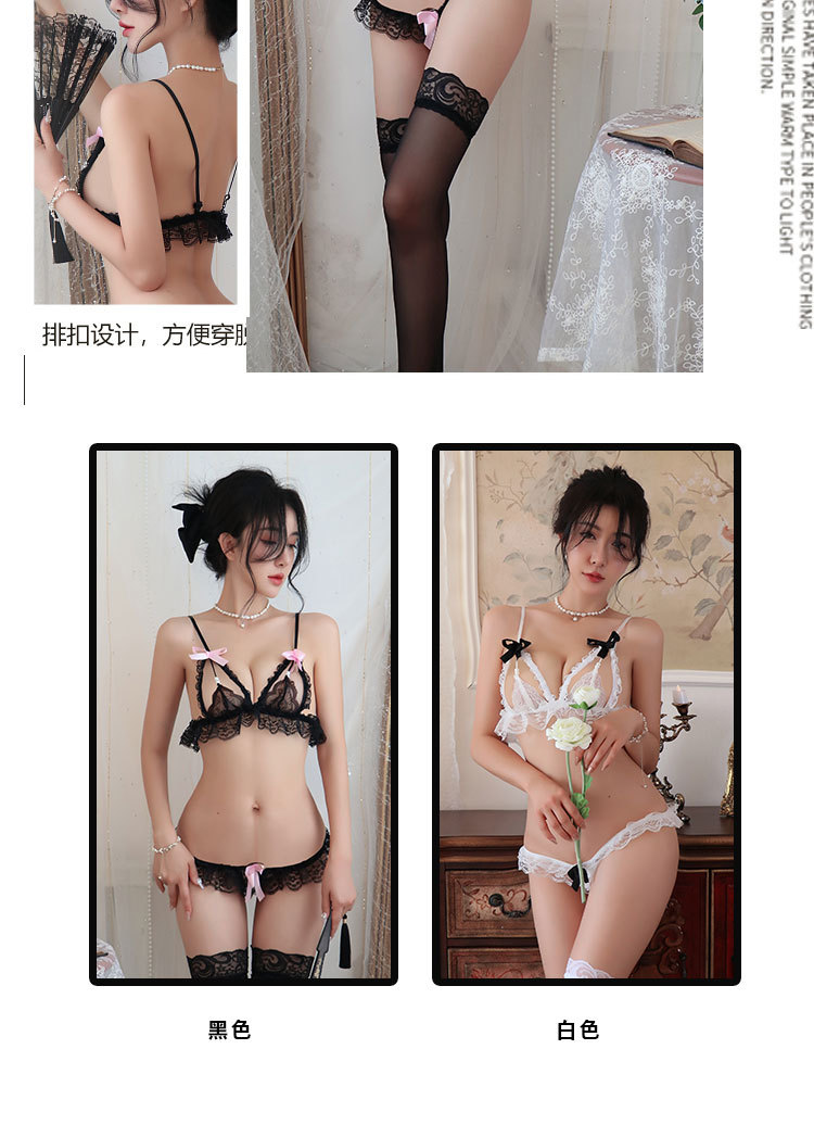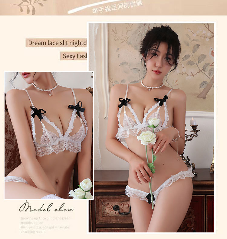 긴 밤 섹시한 속옷 섹시한 3 점 레이스 잠옷 순수한 욕망 스플릿 보우 잠옷 여성 2601