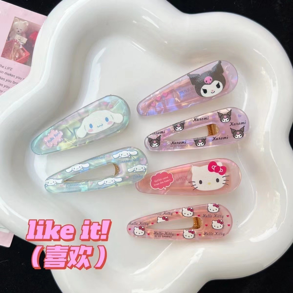 산리오 시리즈 쿨로미 개 메로디 귀여운 레이저 헤어핀 뱅 만화 소녀 덕빌 클립