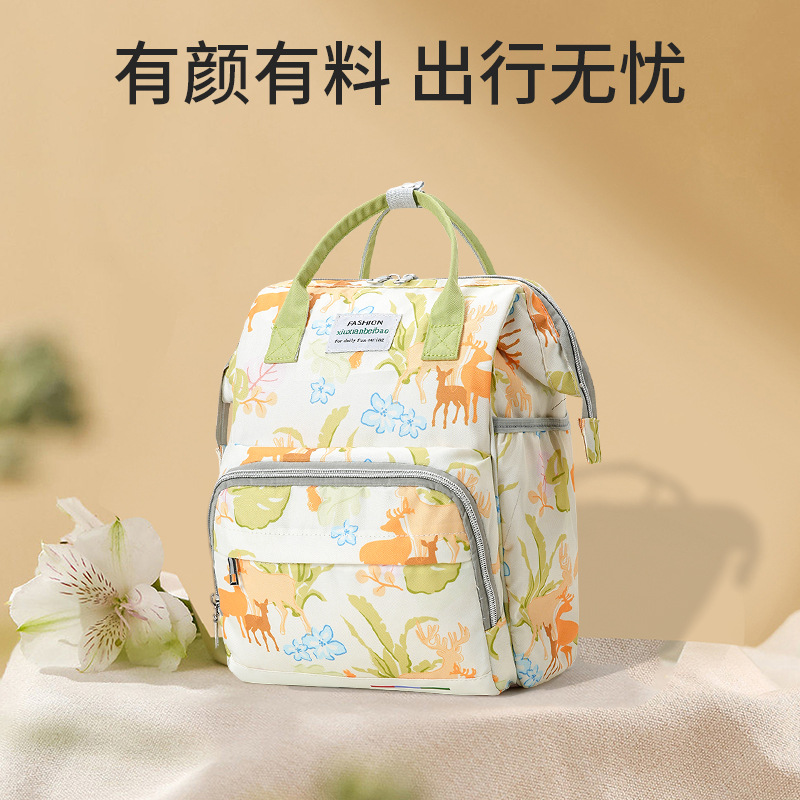 신제품 대용량 엄마 가방 프린트 외출용 여성 백팩 다기능 방수 아기 기저귀 가방