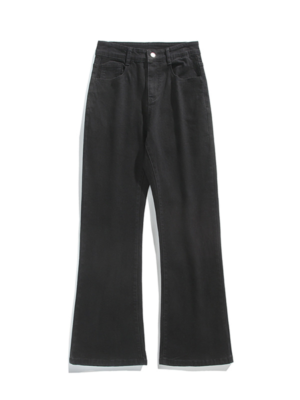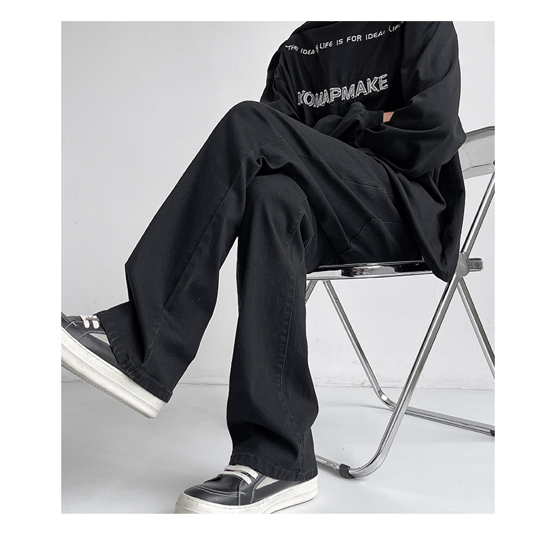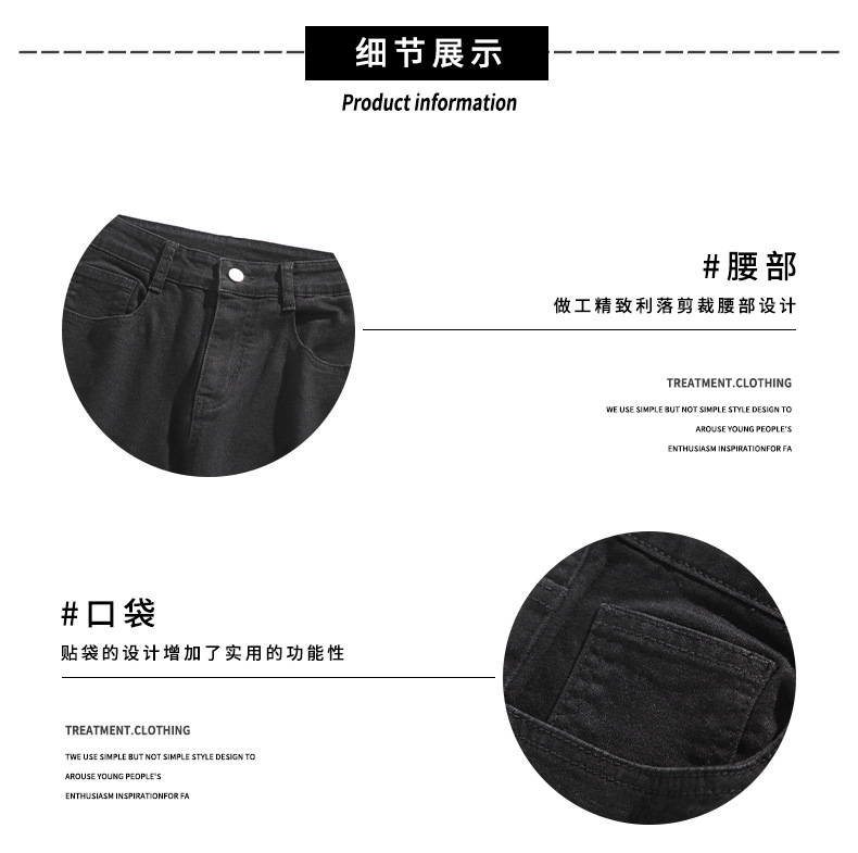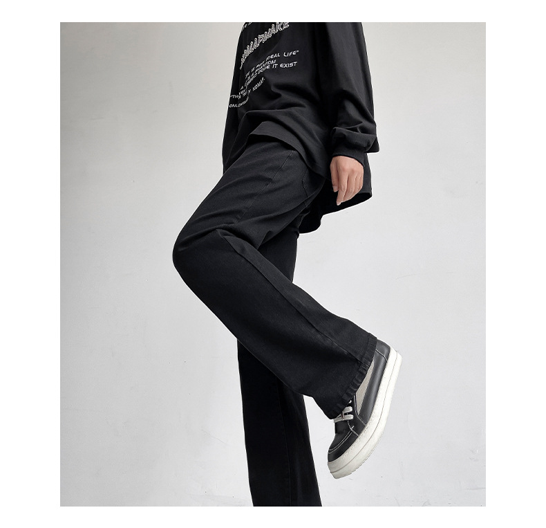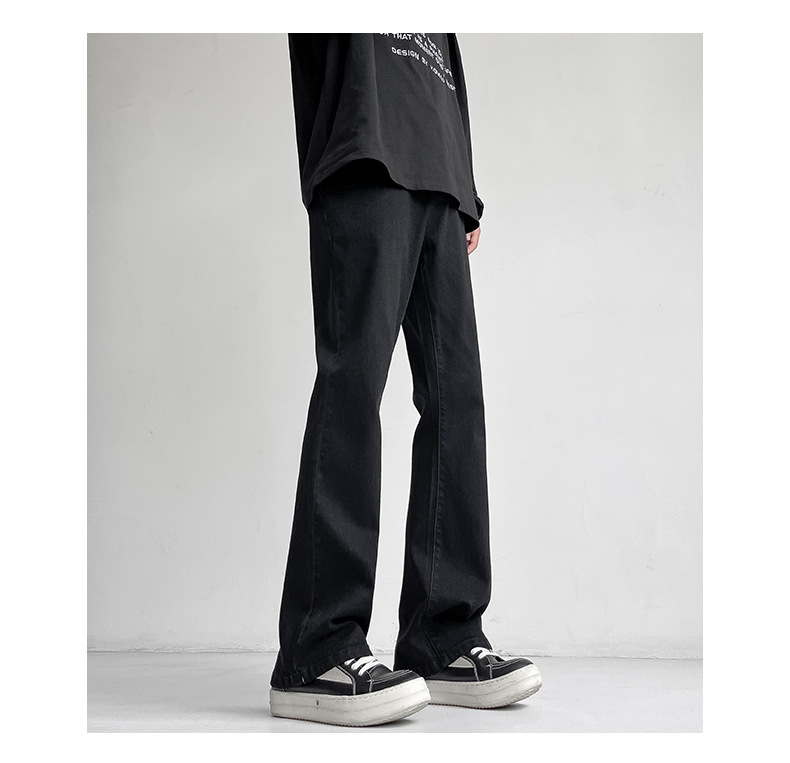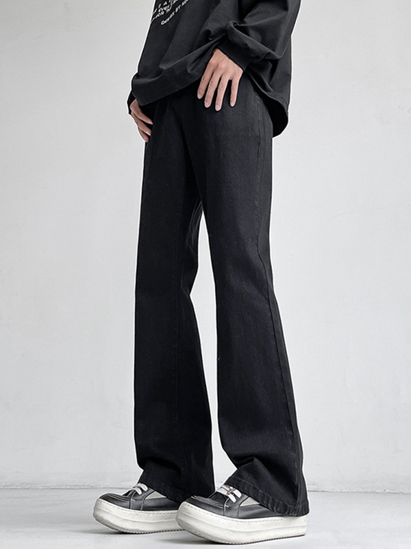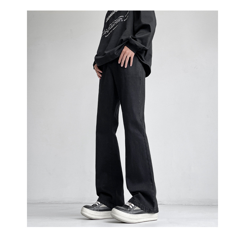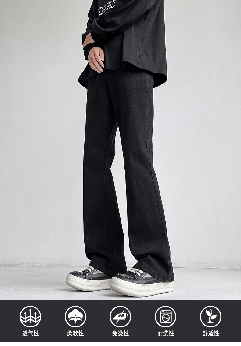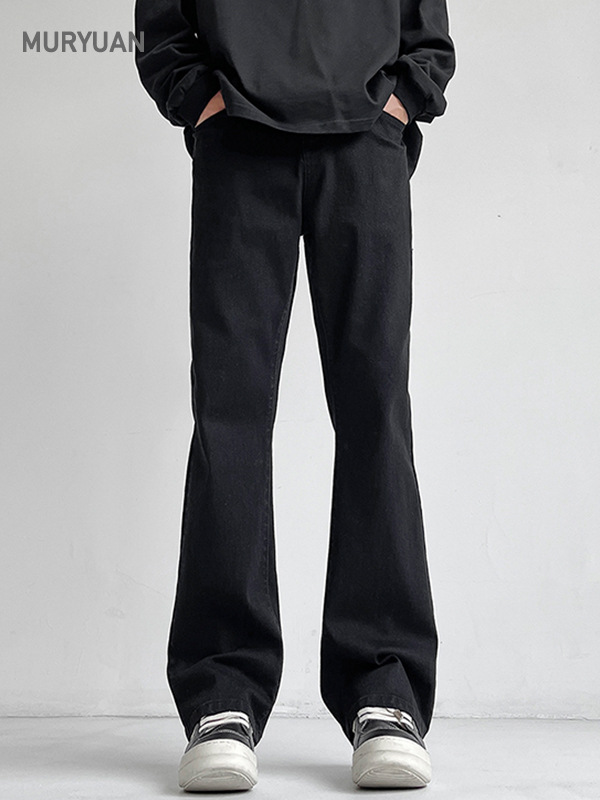Mu Yuan 남자 하이 스트리트 블랙 탄성 고층 마이크로 라마 바지 남성 슬림 핏 러피 안 핸섬 바이브 스타일 슬림 청바지