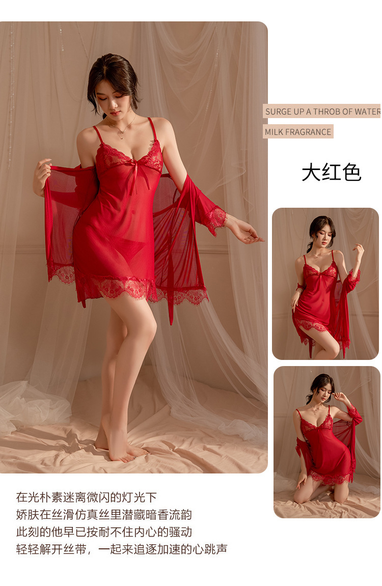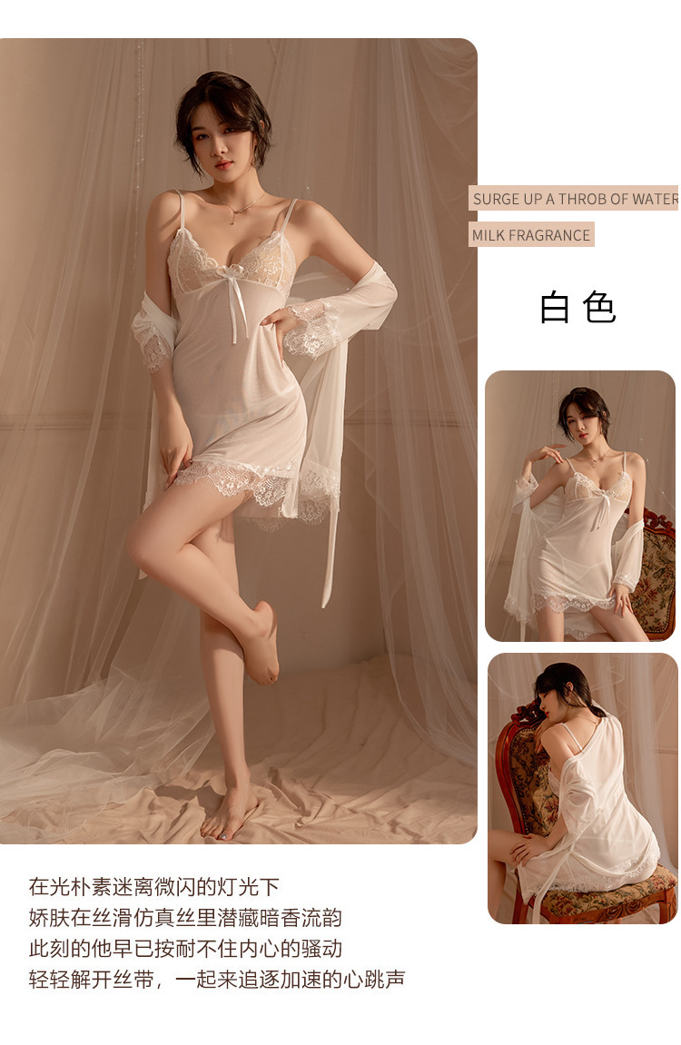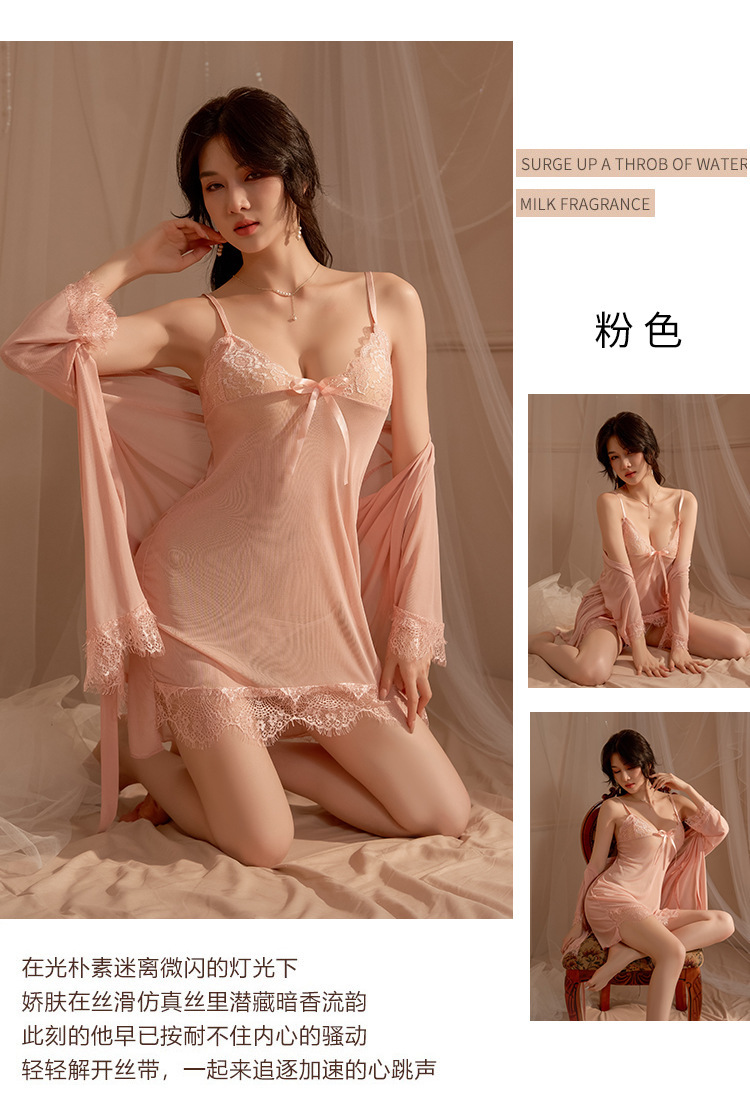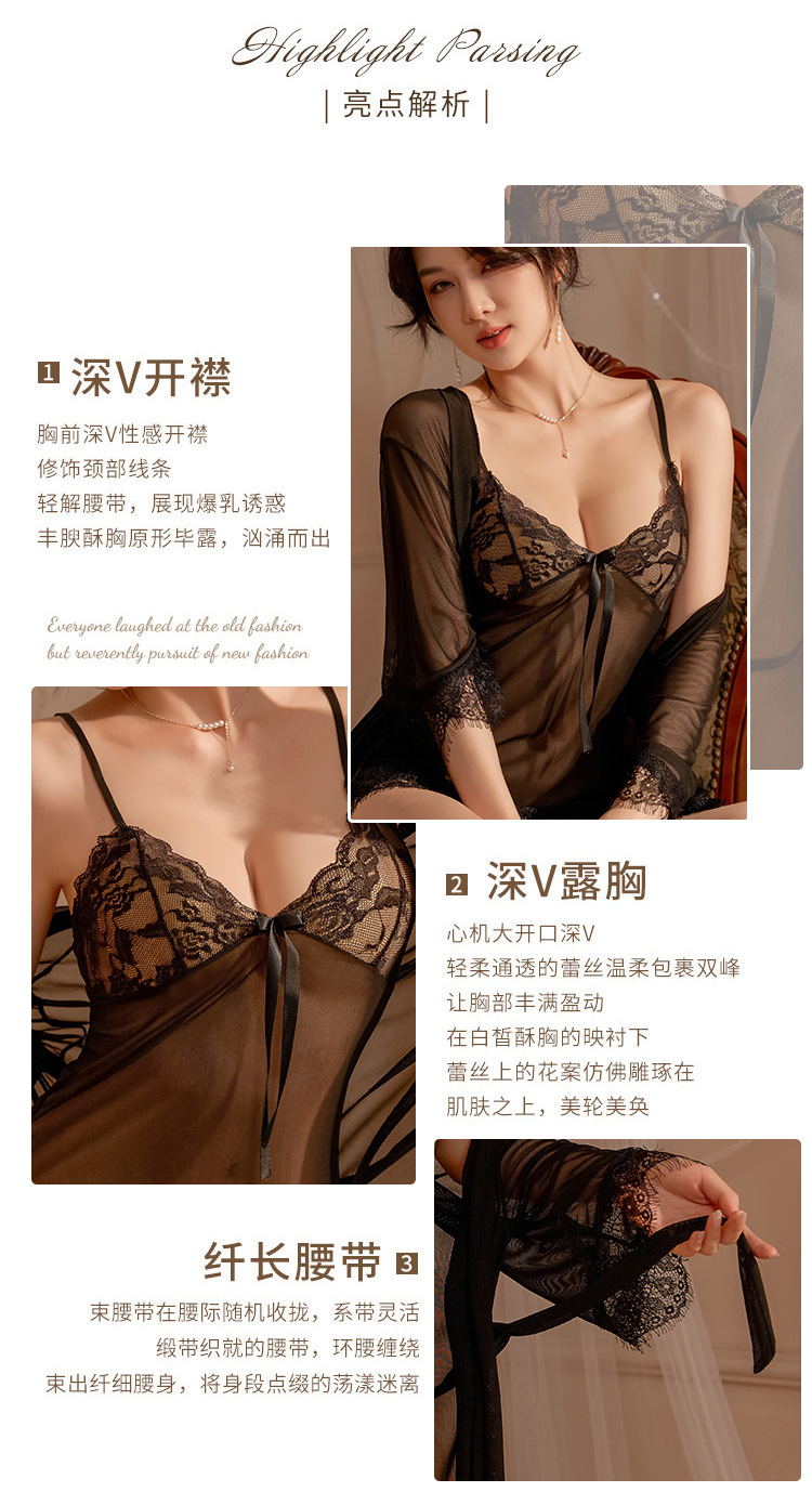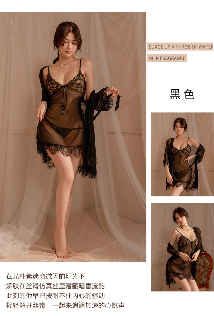 섹시한 잠옷 관점 레이스 슬링 나이트 가운 카디건 로브 열정적 인 세트 여성의 순수한 욕망 홈 옷 섹시한 속옷