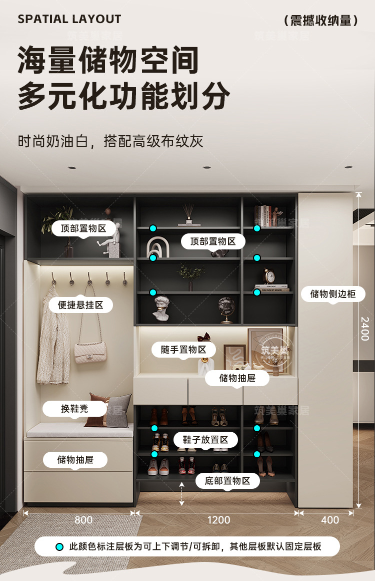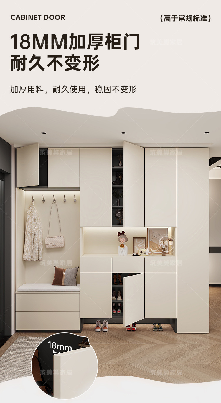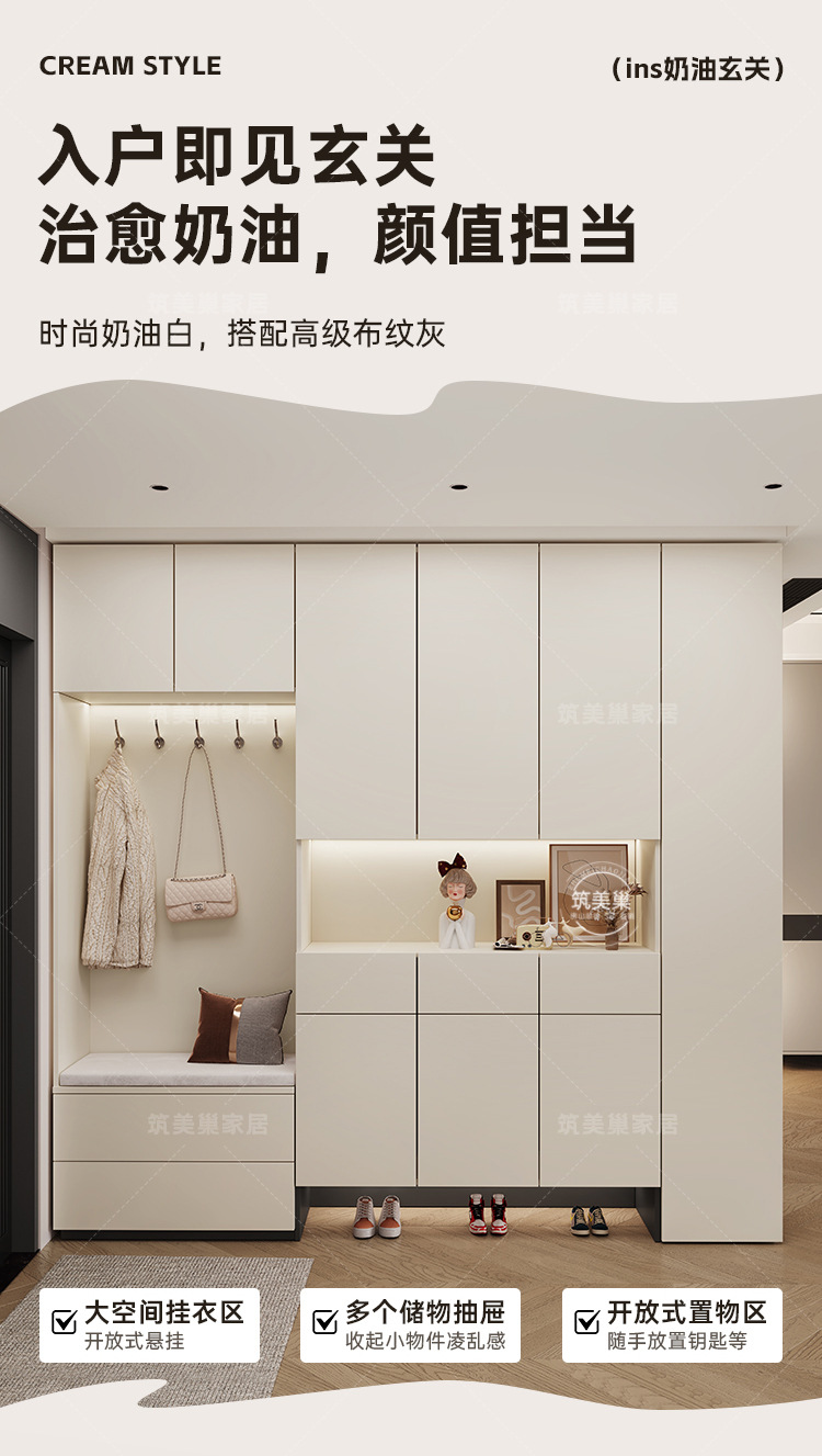 가정용 현관 수납장, 벽걸이형 현관 캐비닛, 크림 스타일 원목 유로판 수납 신발장