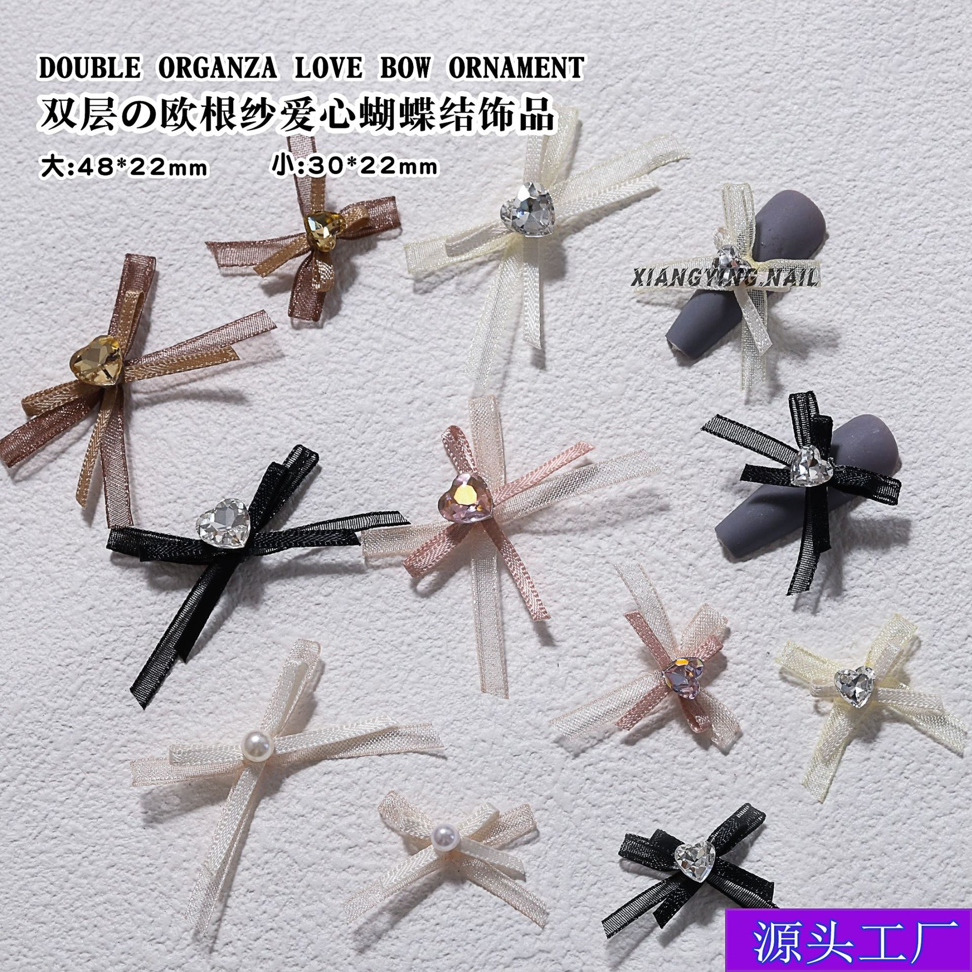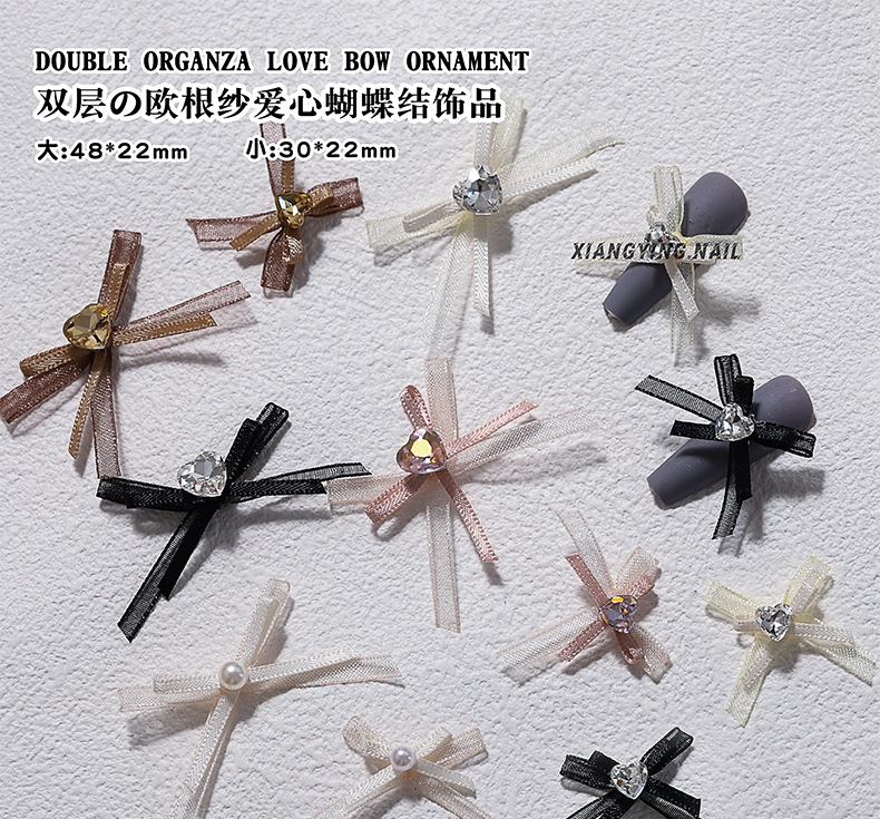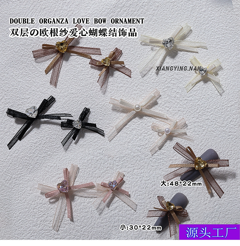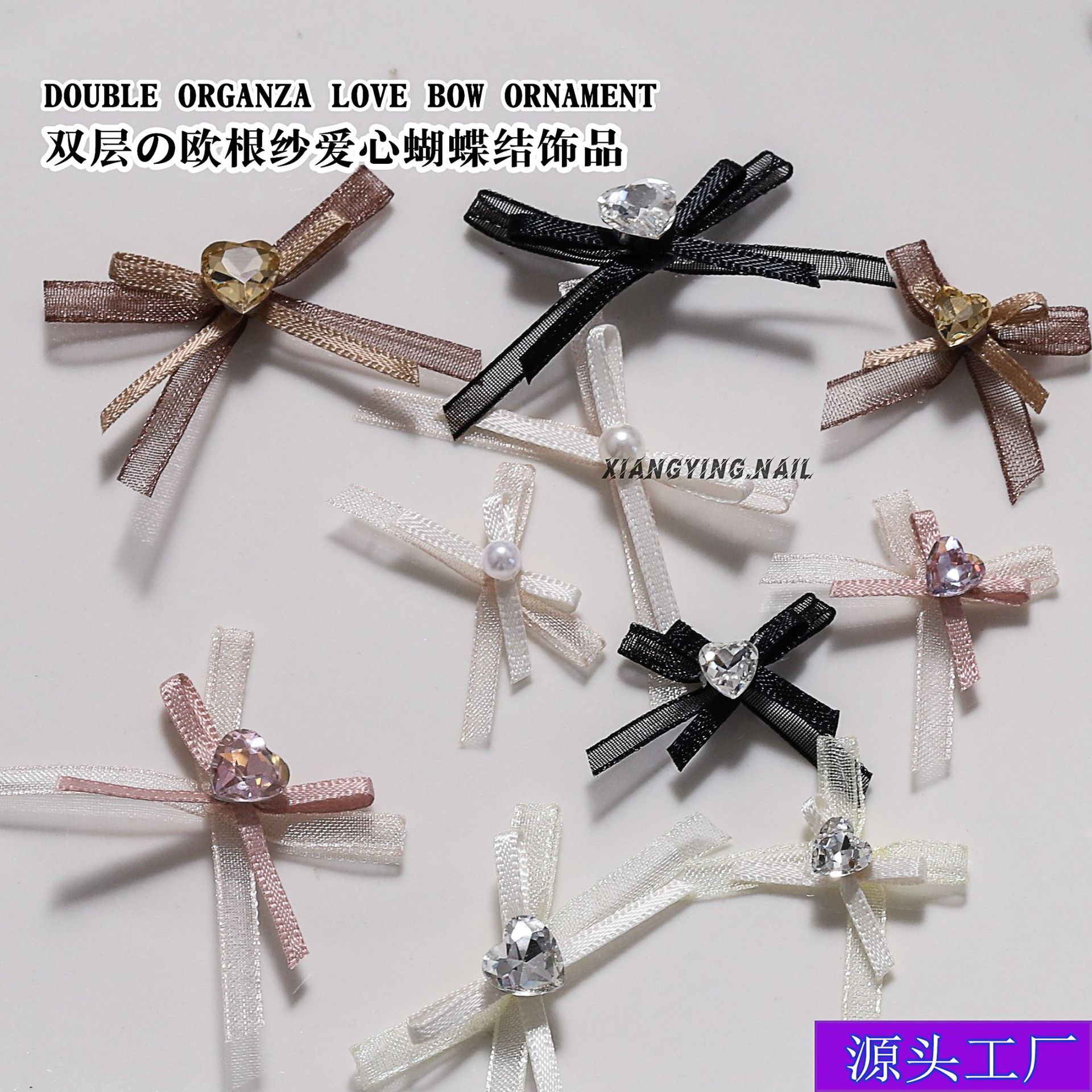 활 네일 아트 쥬얼리 한국 스타일 새로운 간단한 라인 달콤한 더블 레이어 오간자 사랑 활 라인스톤