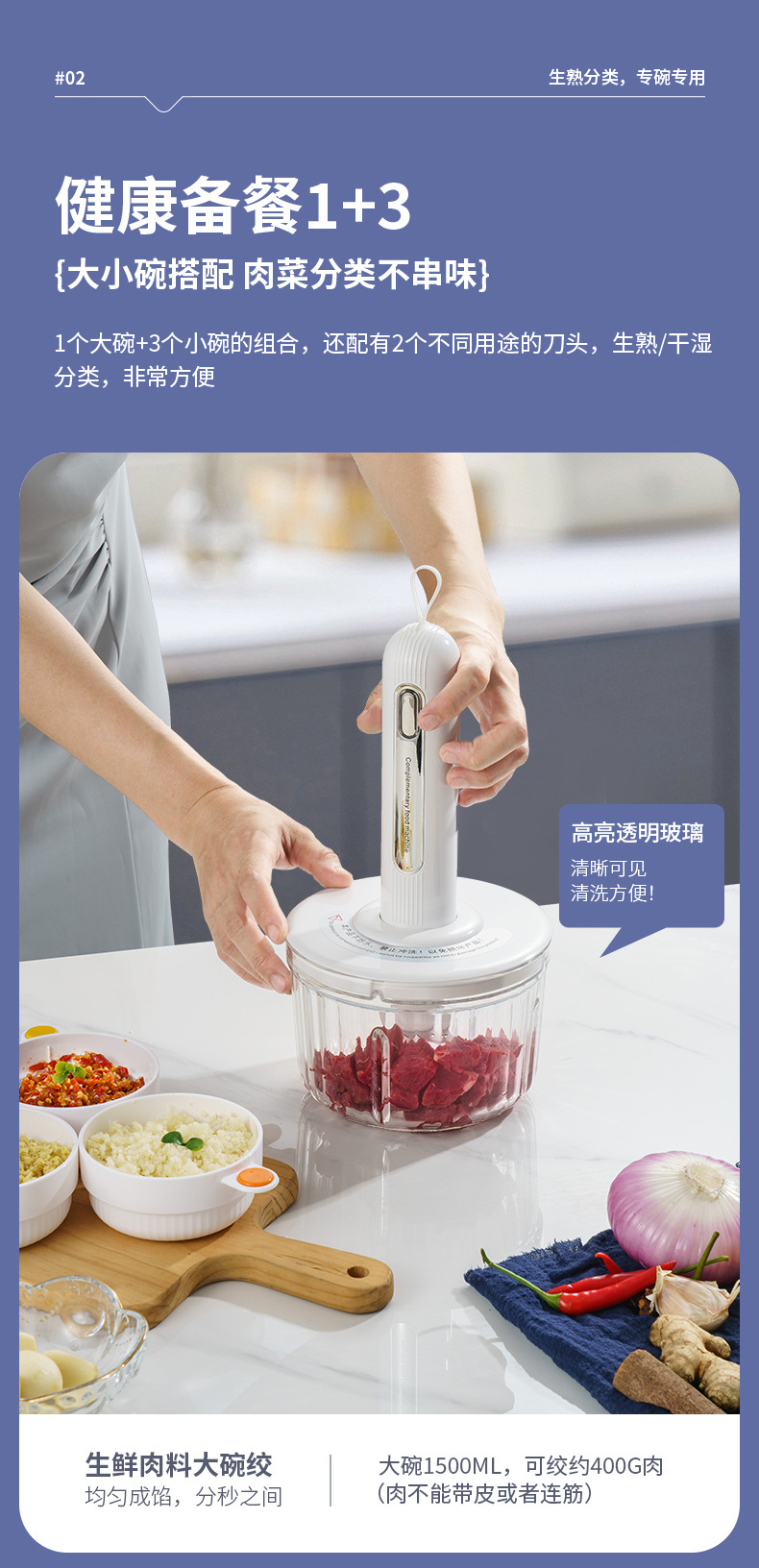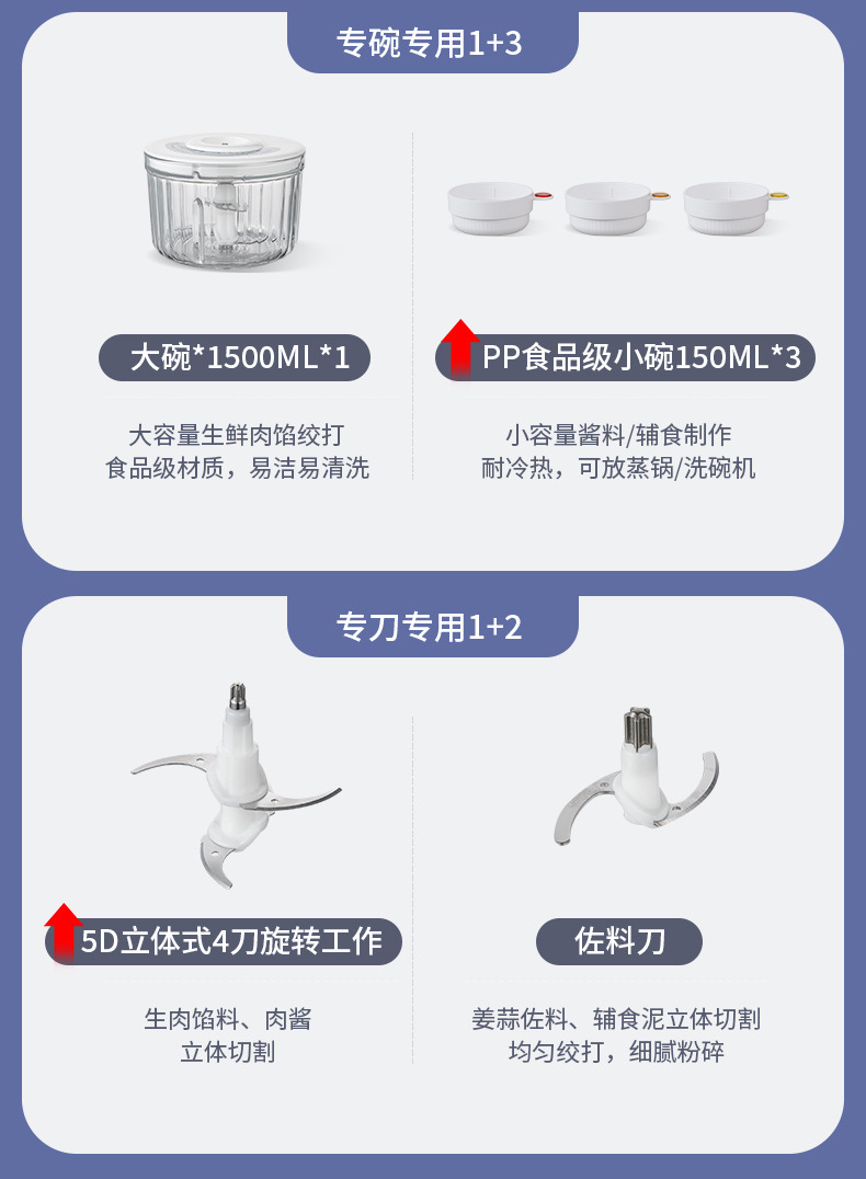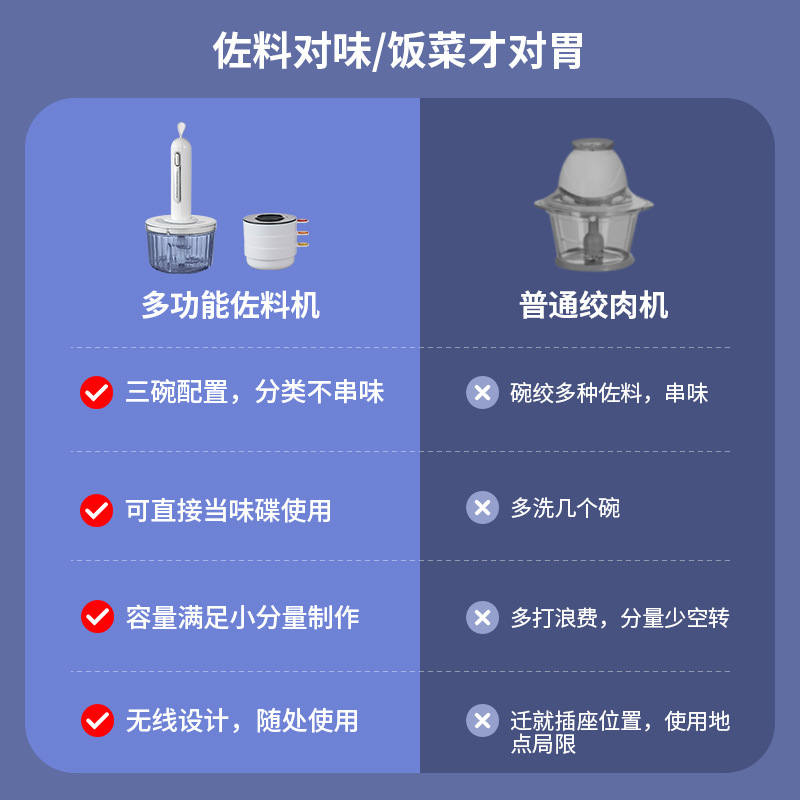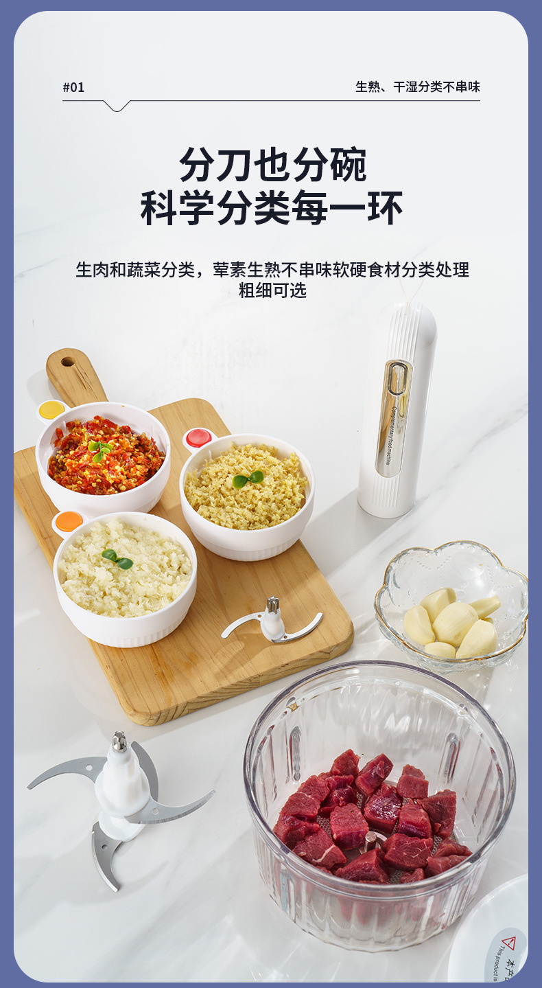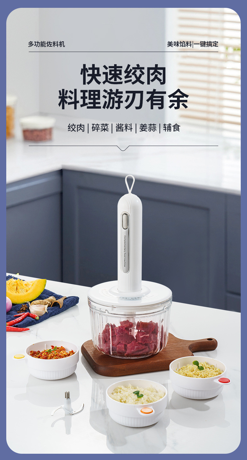 가정용 고기 분쇄기 작은 무선 전기 주방 다진 고기 마늘 후추 퓌레 음식 다기능 요리 기계