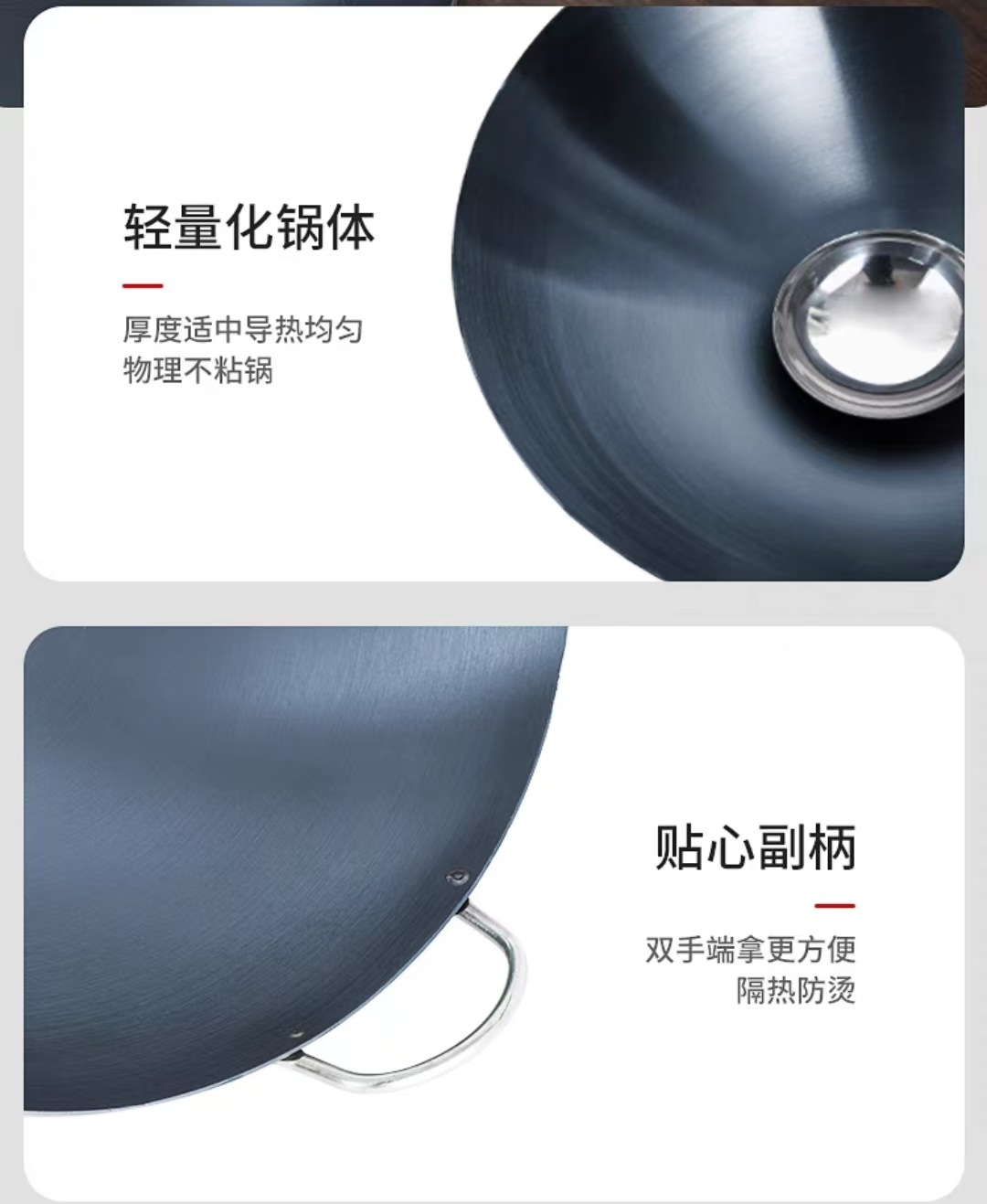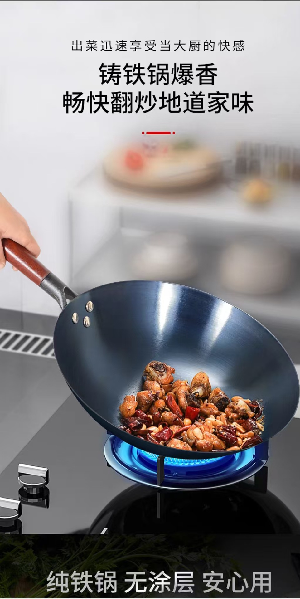 장추 철제 냄비 코팅 처리된 가정용 가스레인지 요리사용 냄비, 손으로 단조한 논스틱 냄비