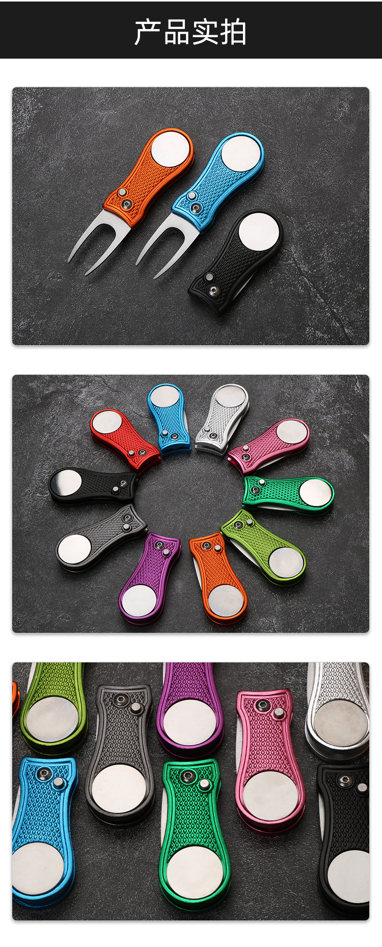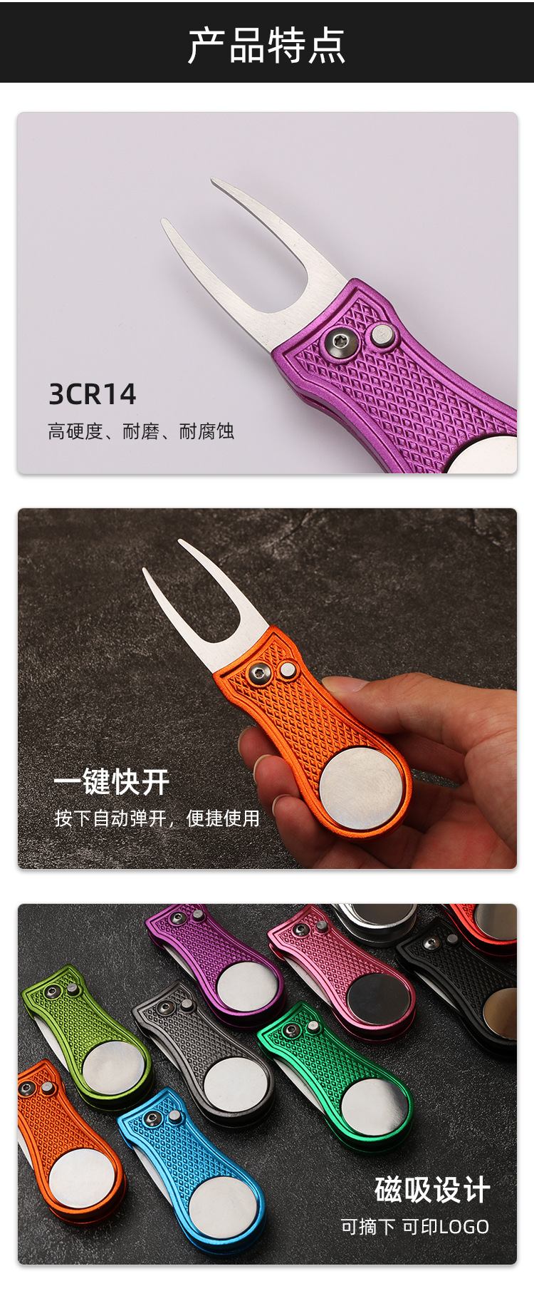 스테인레스 스틸 금속 접이식 골프 포크 연습기 맞춤형 녹색 포크 수리 잔디 도구 공장 도매
