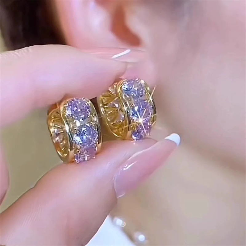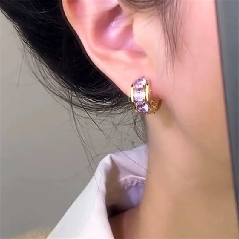 우아한 슈퍼 플래시 보라색 지르콘 서클 귀 버클 여성 틈새 디자인 절묘한 다목적 귀걸이 패션 양면 귀걸이