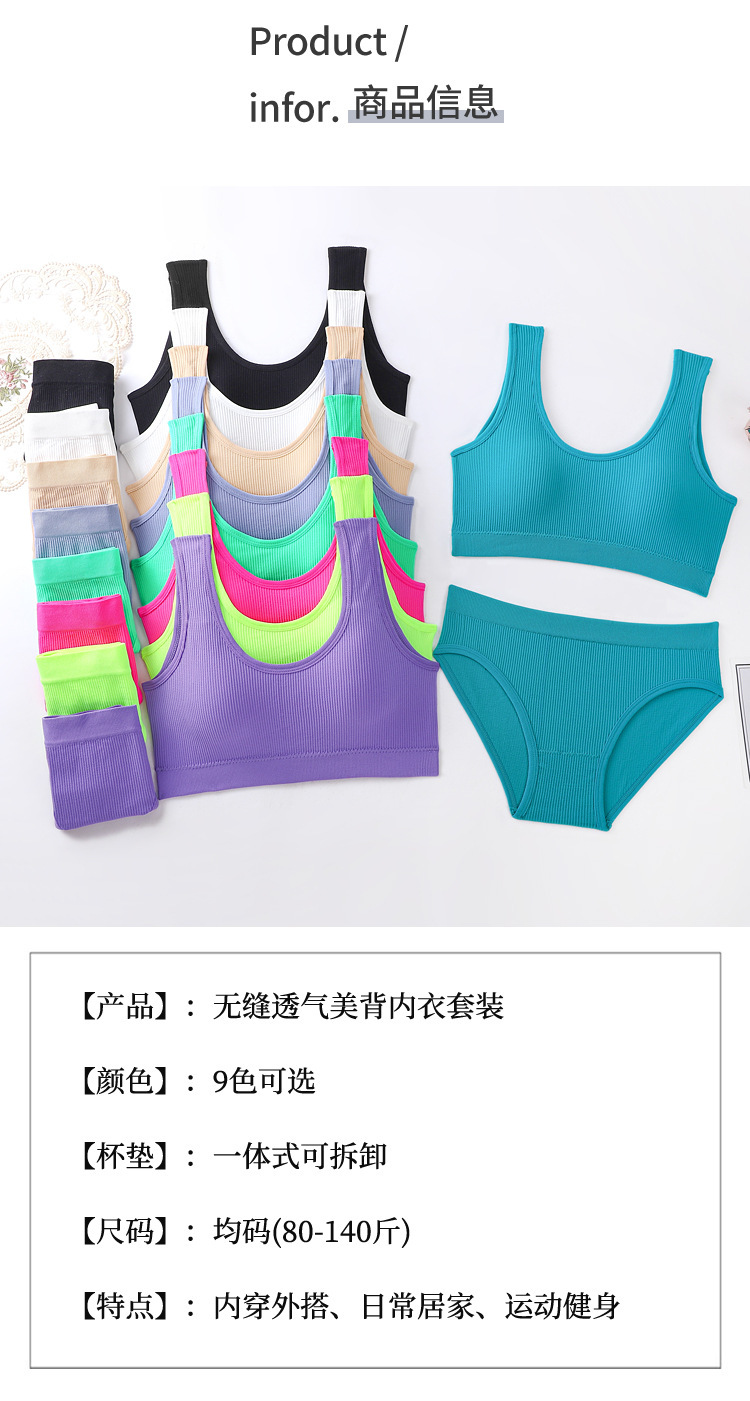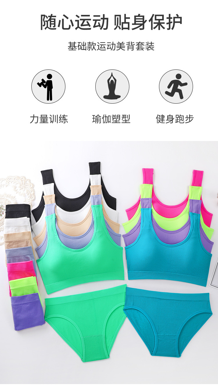 원활한 브래지어 세트 여성용 섹시한 와이드 숄더 푸시 업 아름다운 백 스포츠 요가 조끼 충격 방지 탑업 속옷 브리프