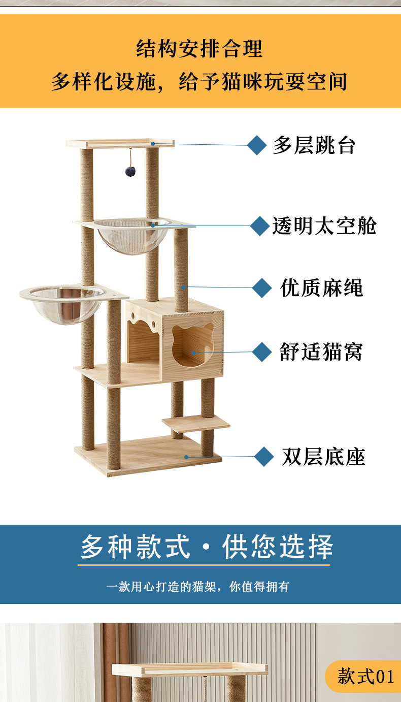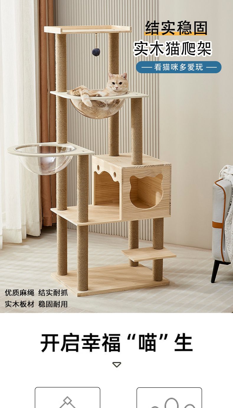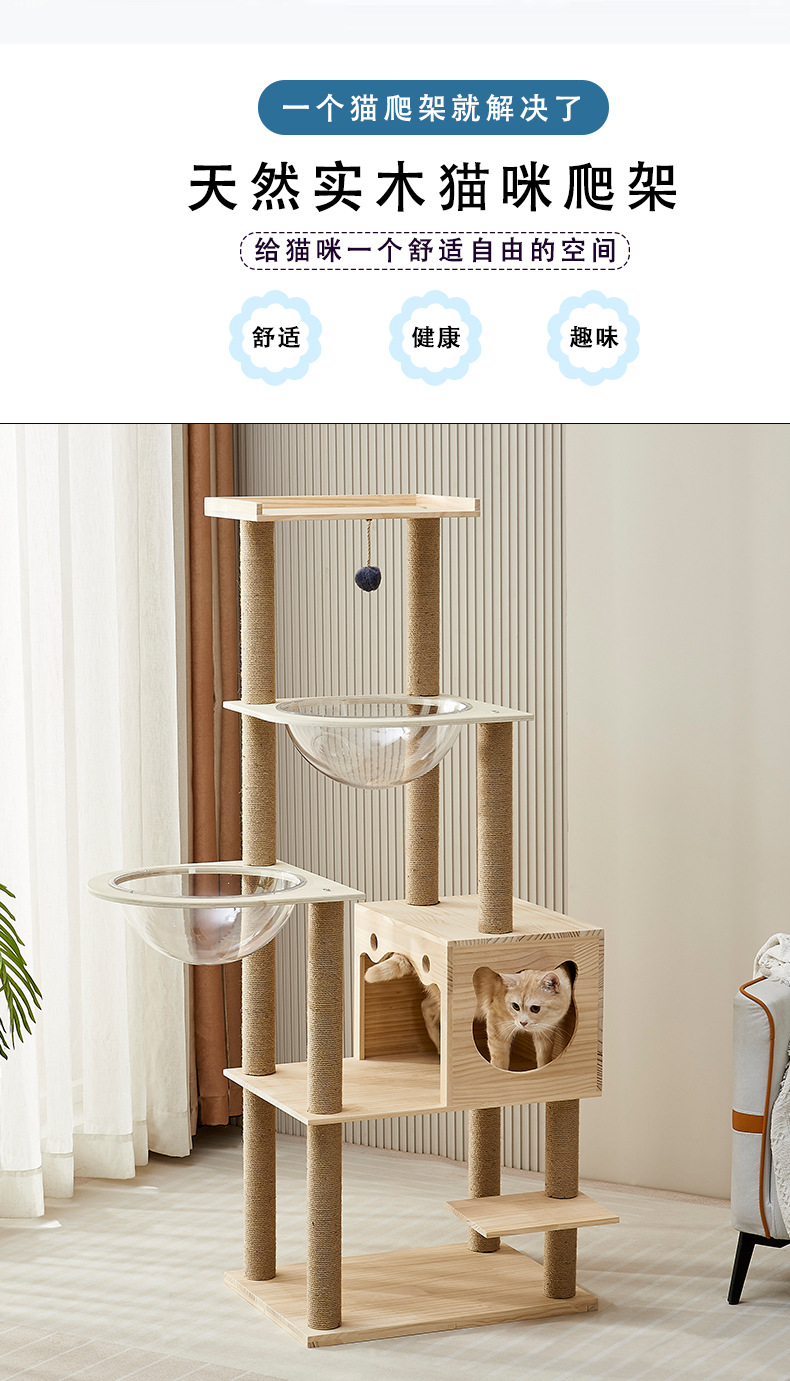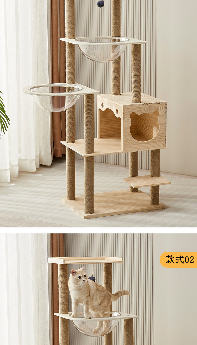 단단한 나무 고양이 등반 랙 사계절 유니버설 고양이 둥지 고양이 나무 통합 공간 캡슐 나무 고양이 랙 고양이 점프 플랫폼 고양이 스크래치 열 고양이 놀이