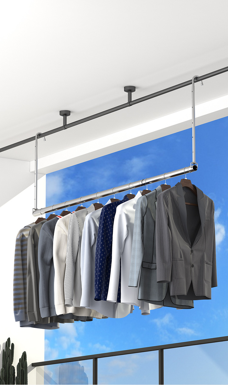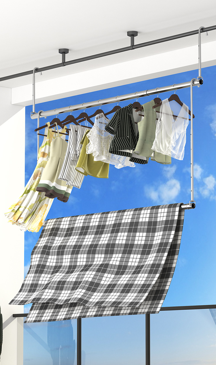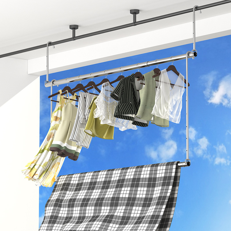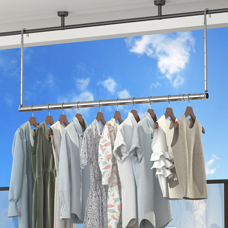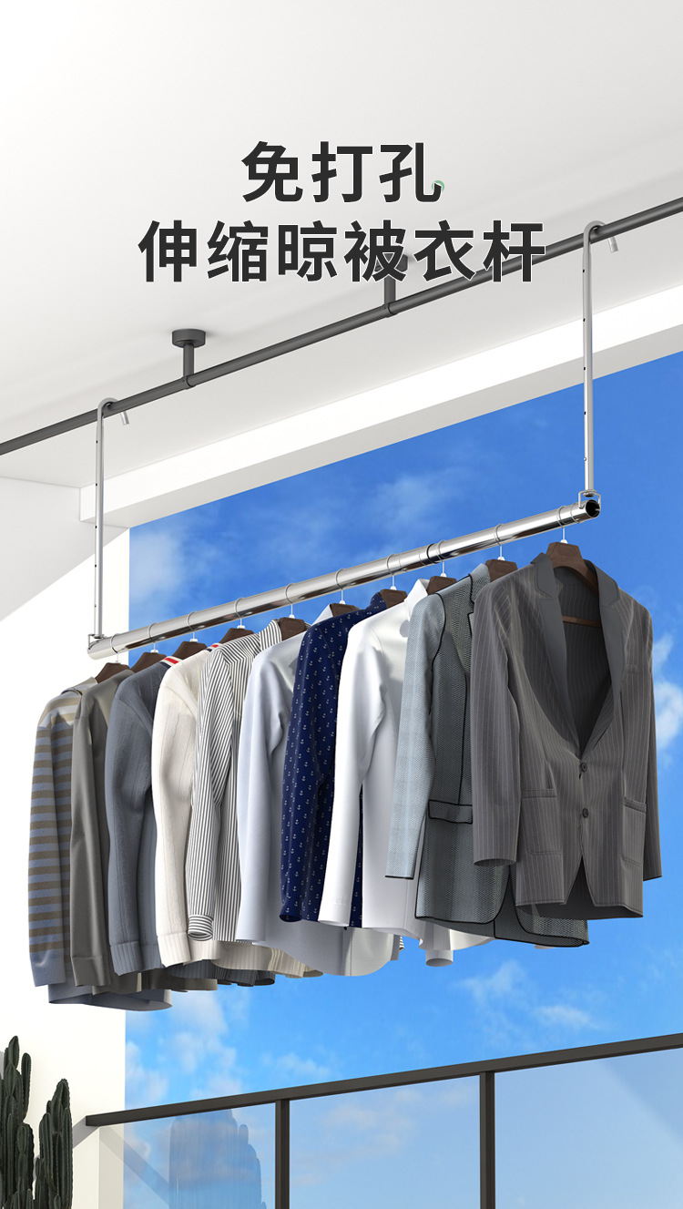 스테인레스 스틸 건조 랙 비 천공 망원경 의류 건조 랙 후크 형 발코니 보이지 않는 홈 건조 퀼트 의류 랙