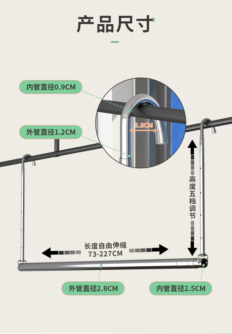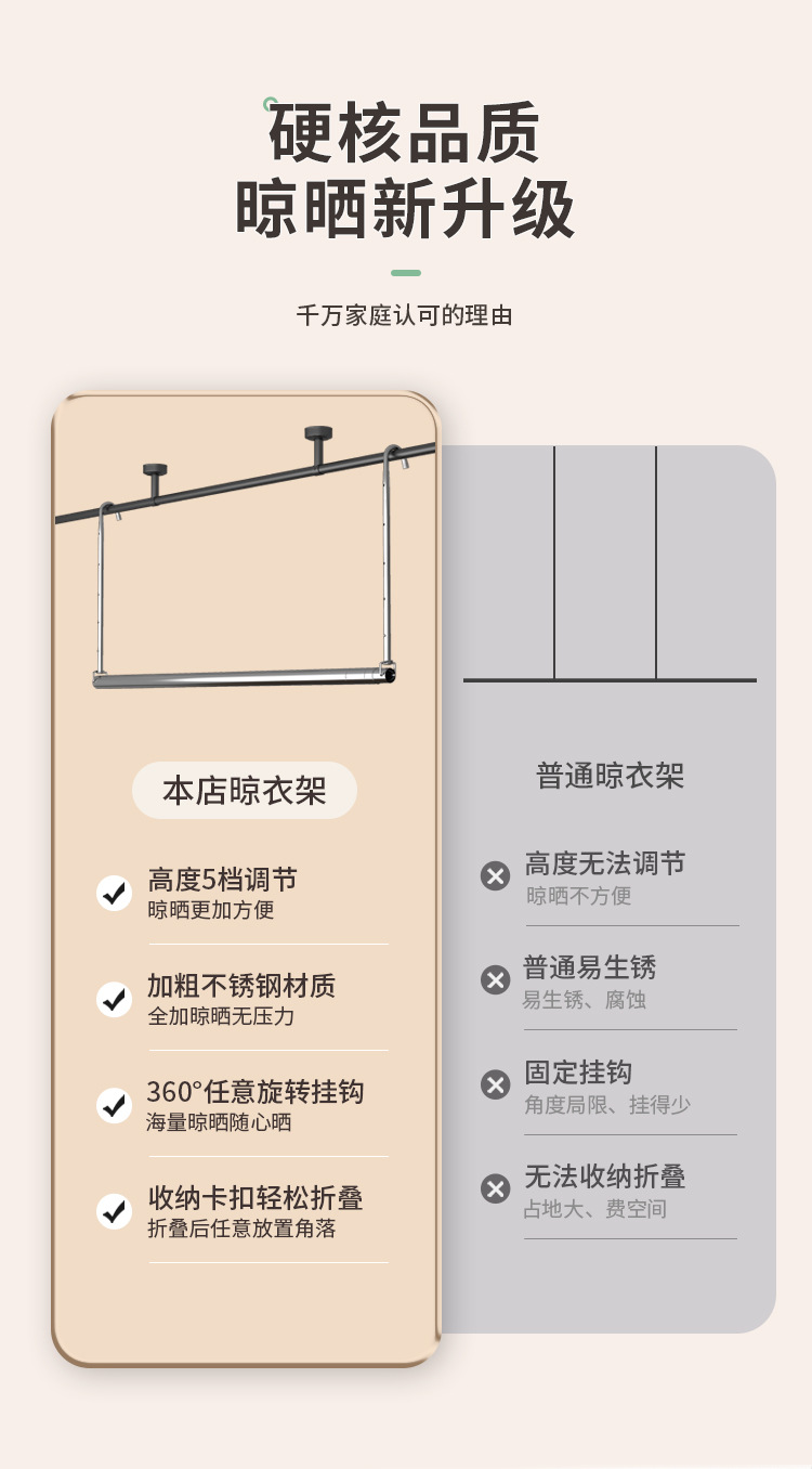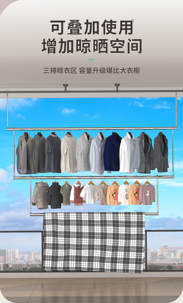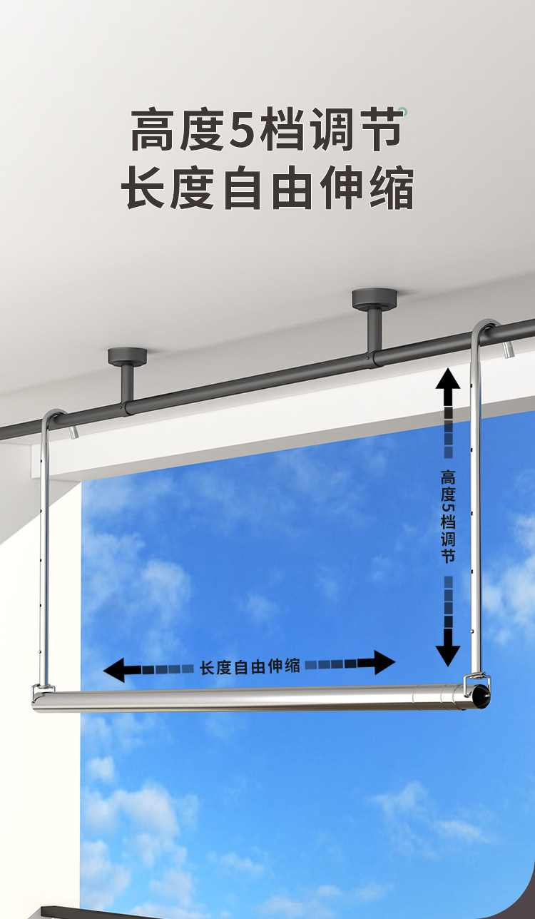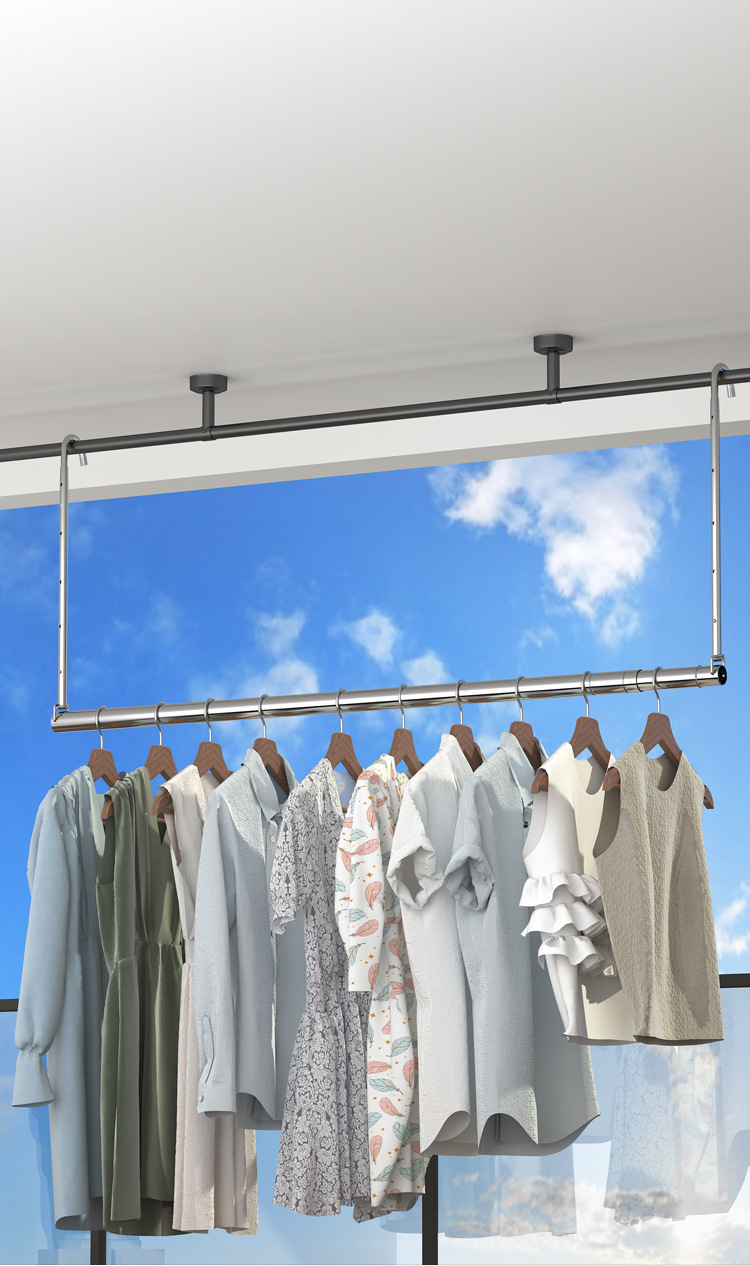 스테인레스 스틸 건조 랙 비 천공 망원경 의류 건조 랙 후크 형 발코니 보이지 않는 홈 건조 퀼트 의류 랙