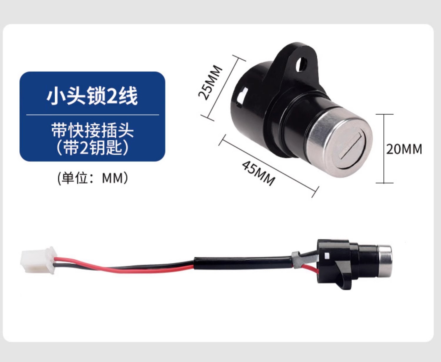 소형 헤드 잠금 장치 2선(플러그 슬리브가 있는 순수 구리 와이어) + 키 2개