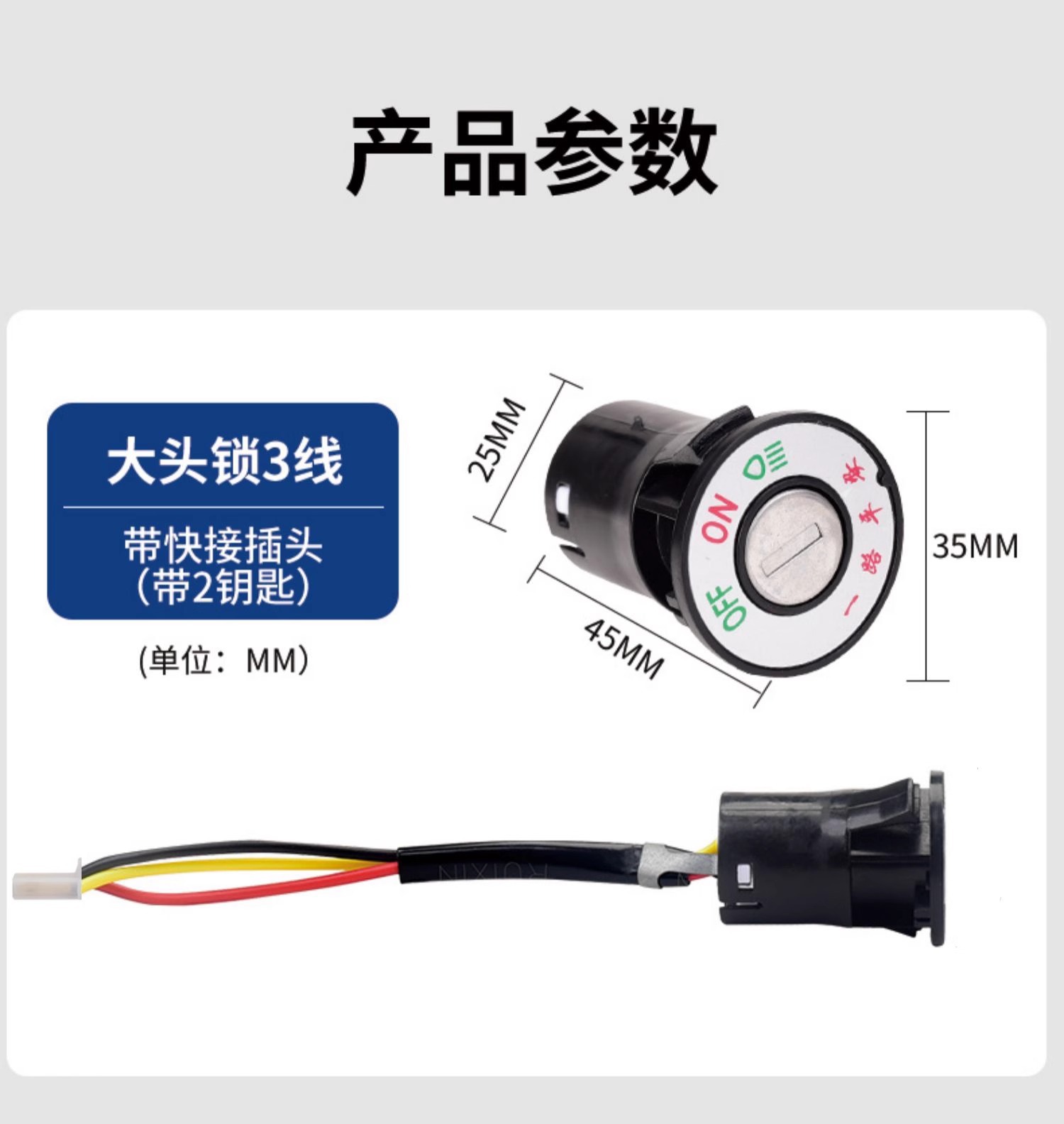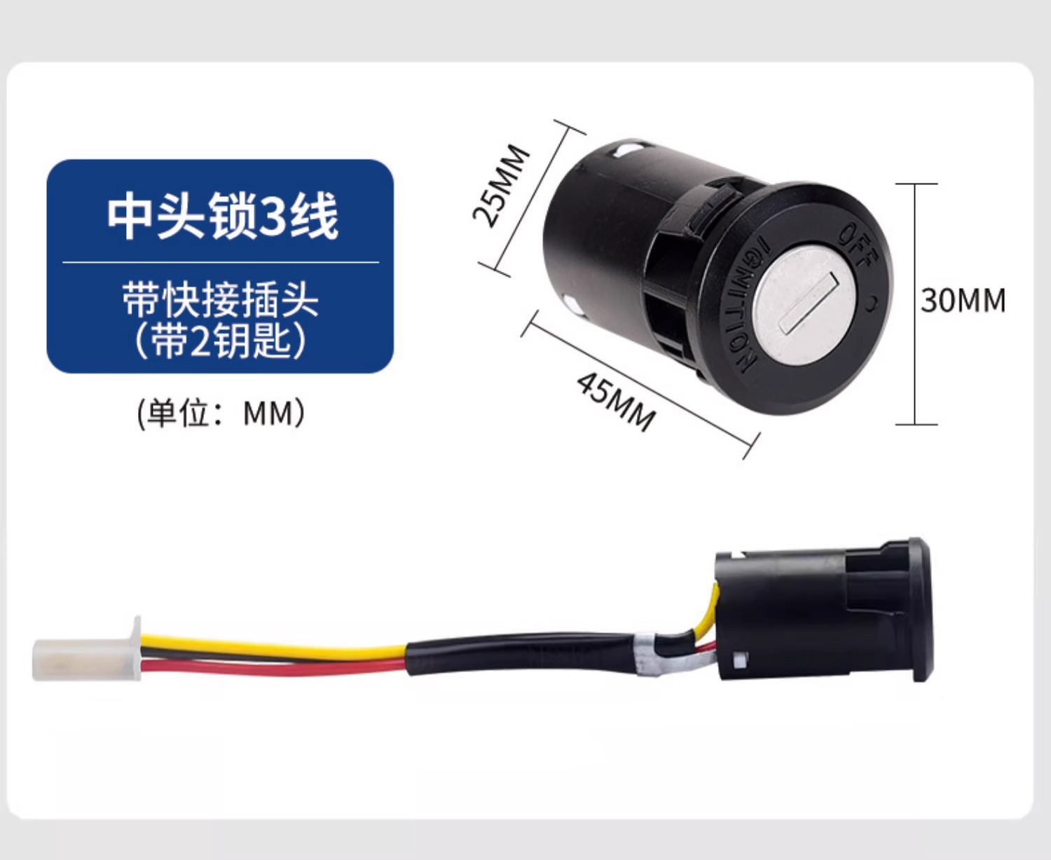 중간 헤드 잠금 장치 3선(플러그 슬리브가 있는 순수 구리 와이어) + 키 2개