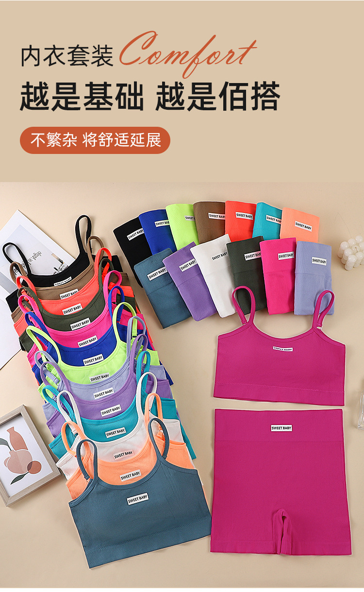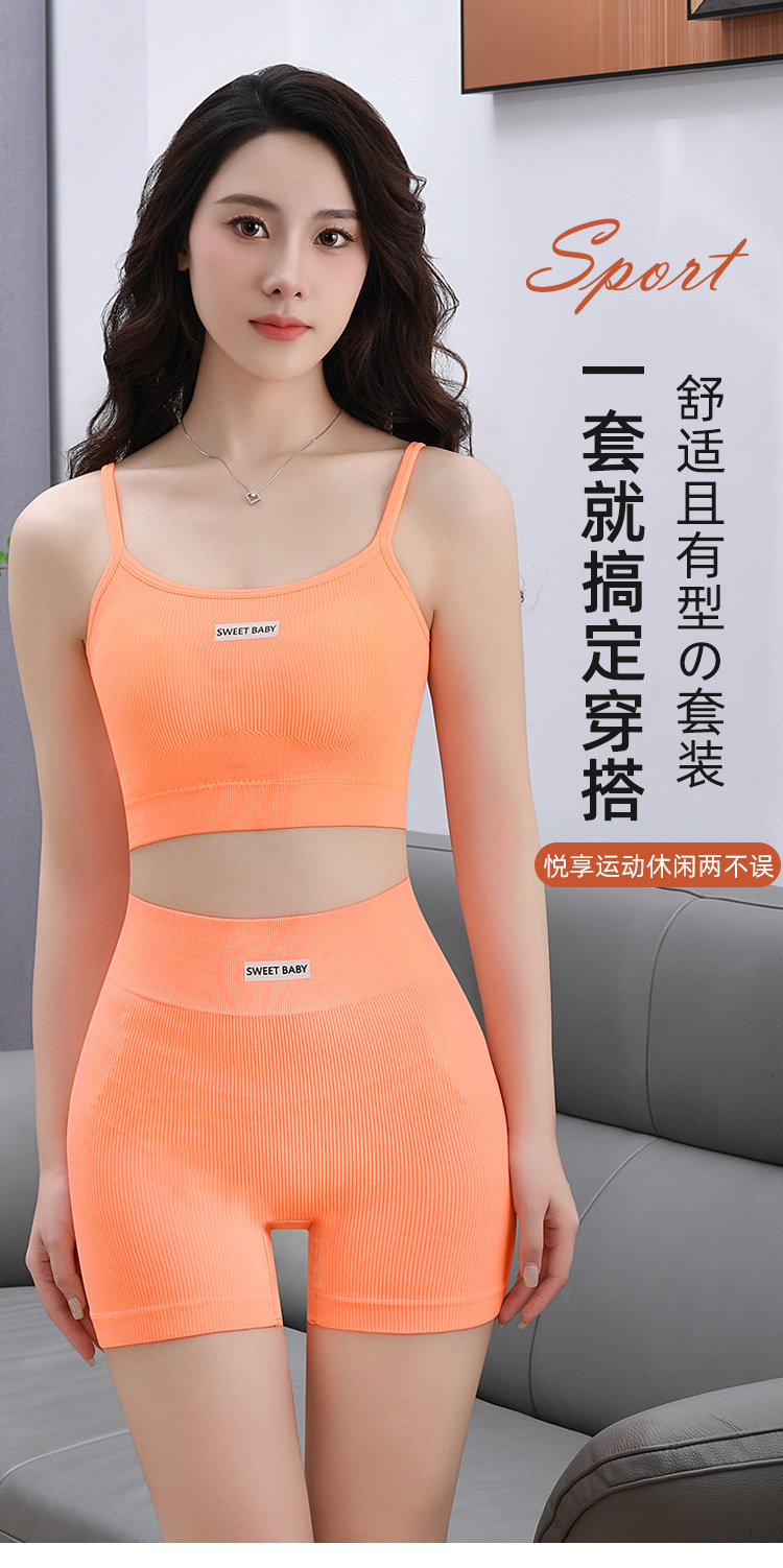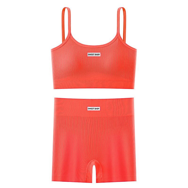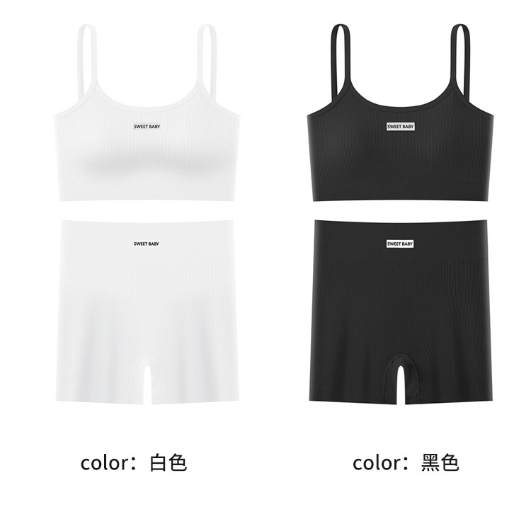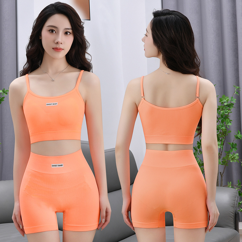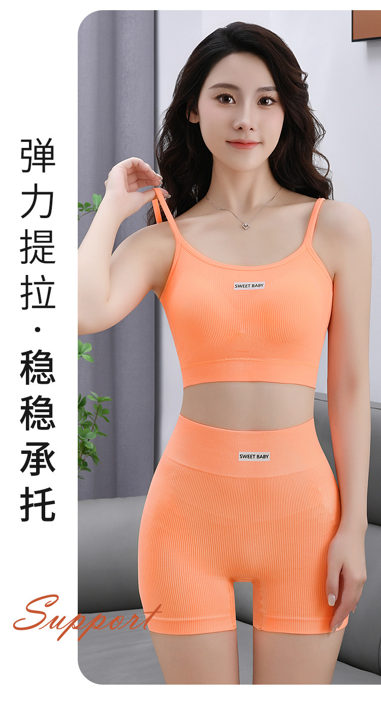 슬링 브래지어 세트 여성용 섹시한 가죽 백 스포츠 피트니스 충격 방지 조끼 속옷 크로스 보더 반바지