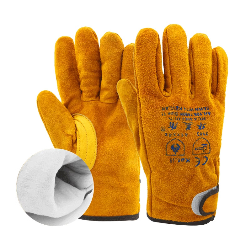 FN113-R 노란색 소가죽 방한장갑(보온면+벨크로)