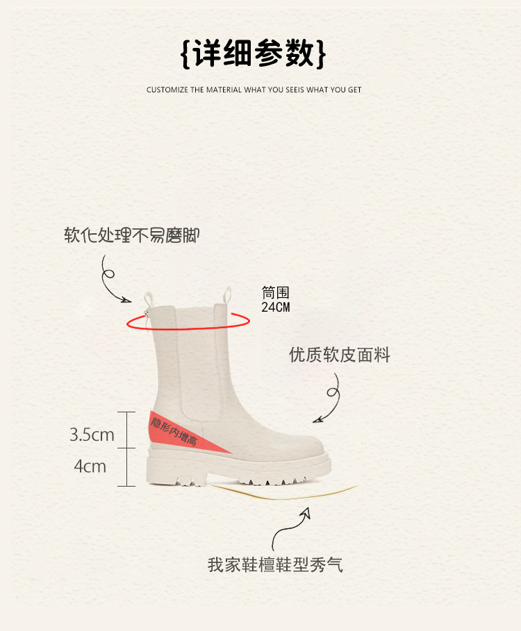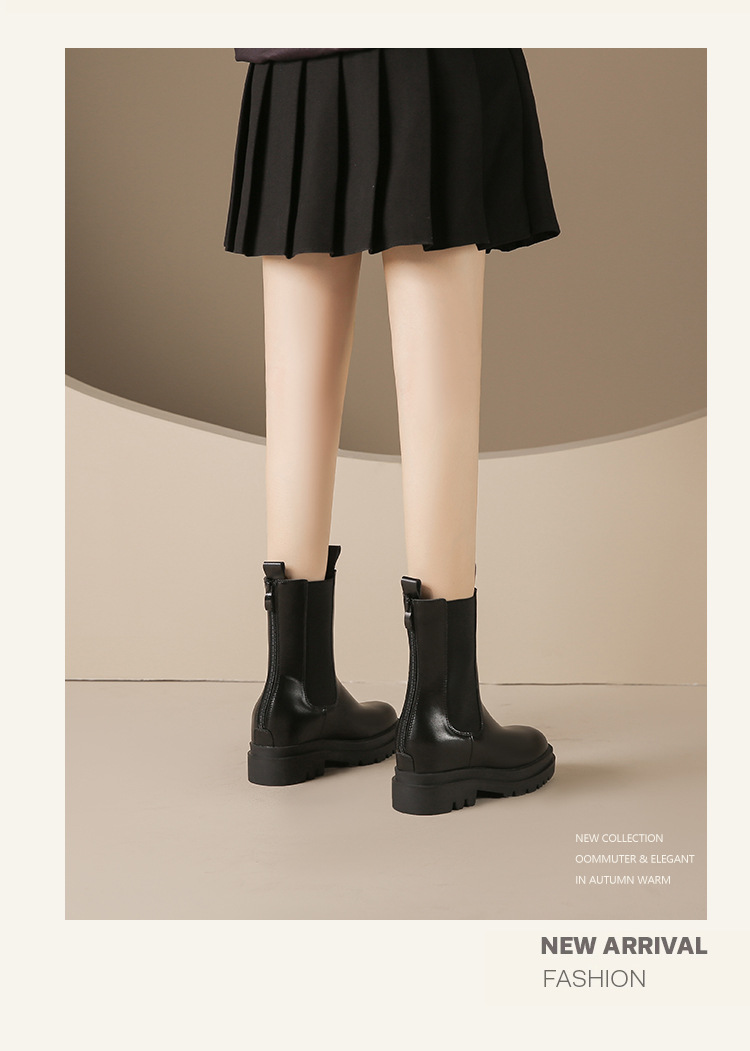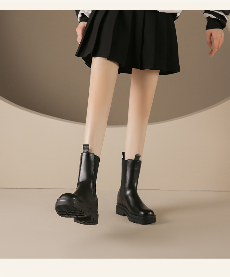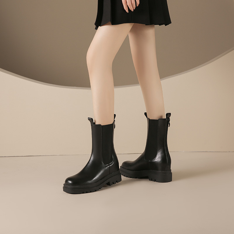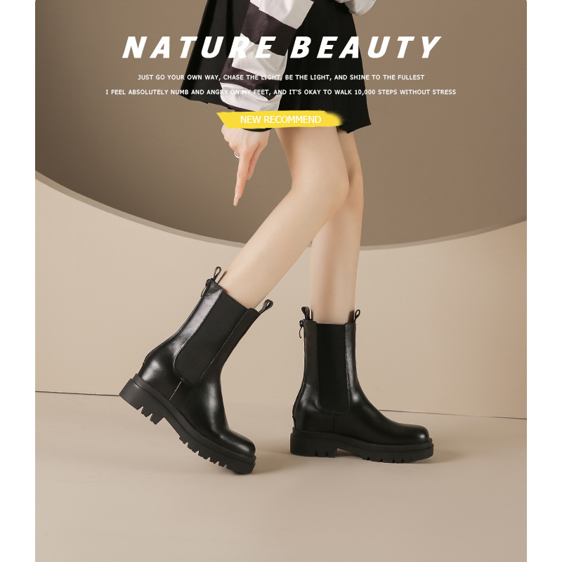 재고 있음, 작은 사이즈 31-40, 부드러운 가죽 첼시 숏부츠 여성용, 2024년 신상, 두꺼운 밑창, 키높이 마틴 부츠