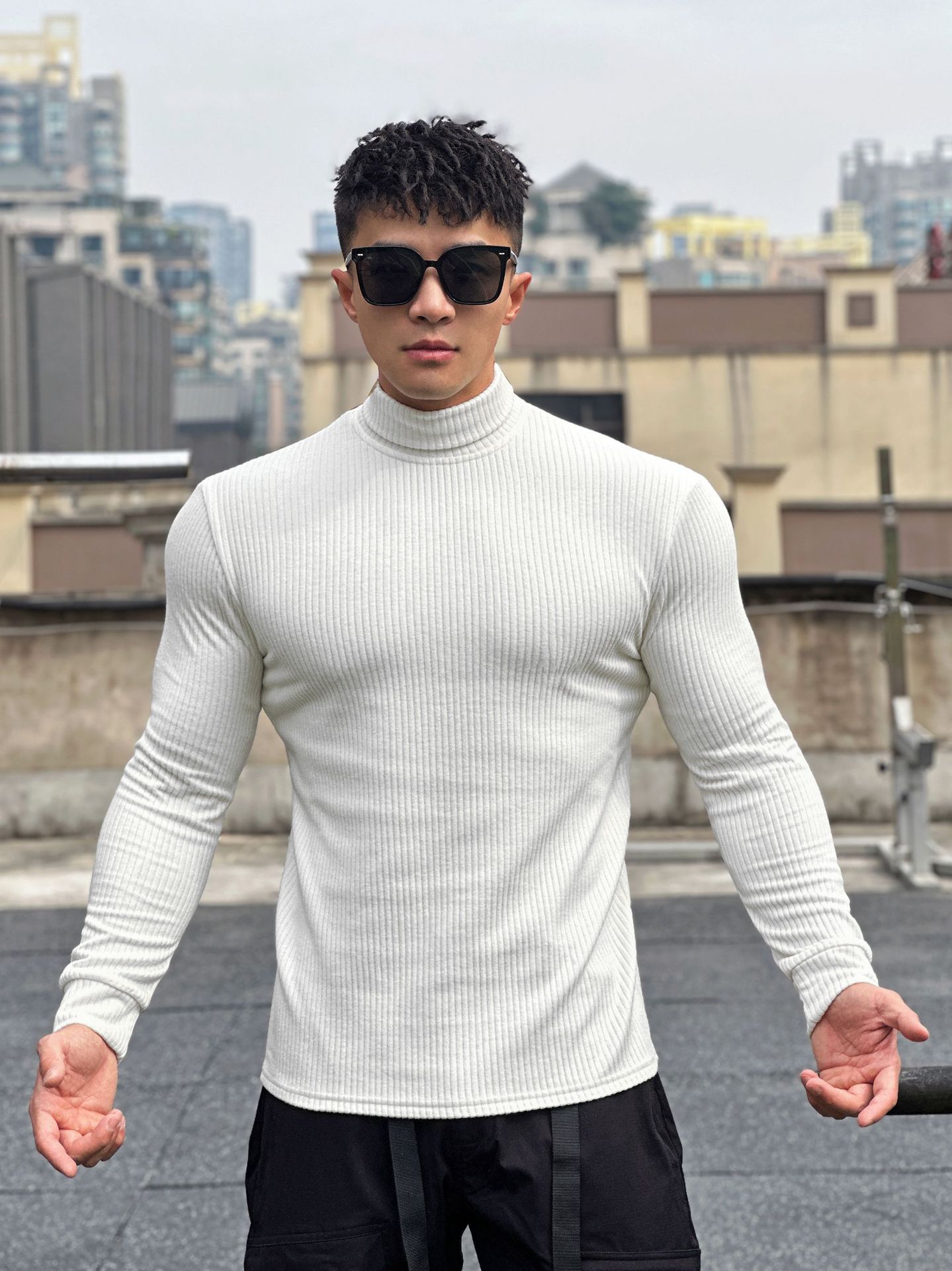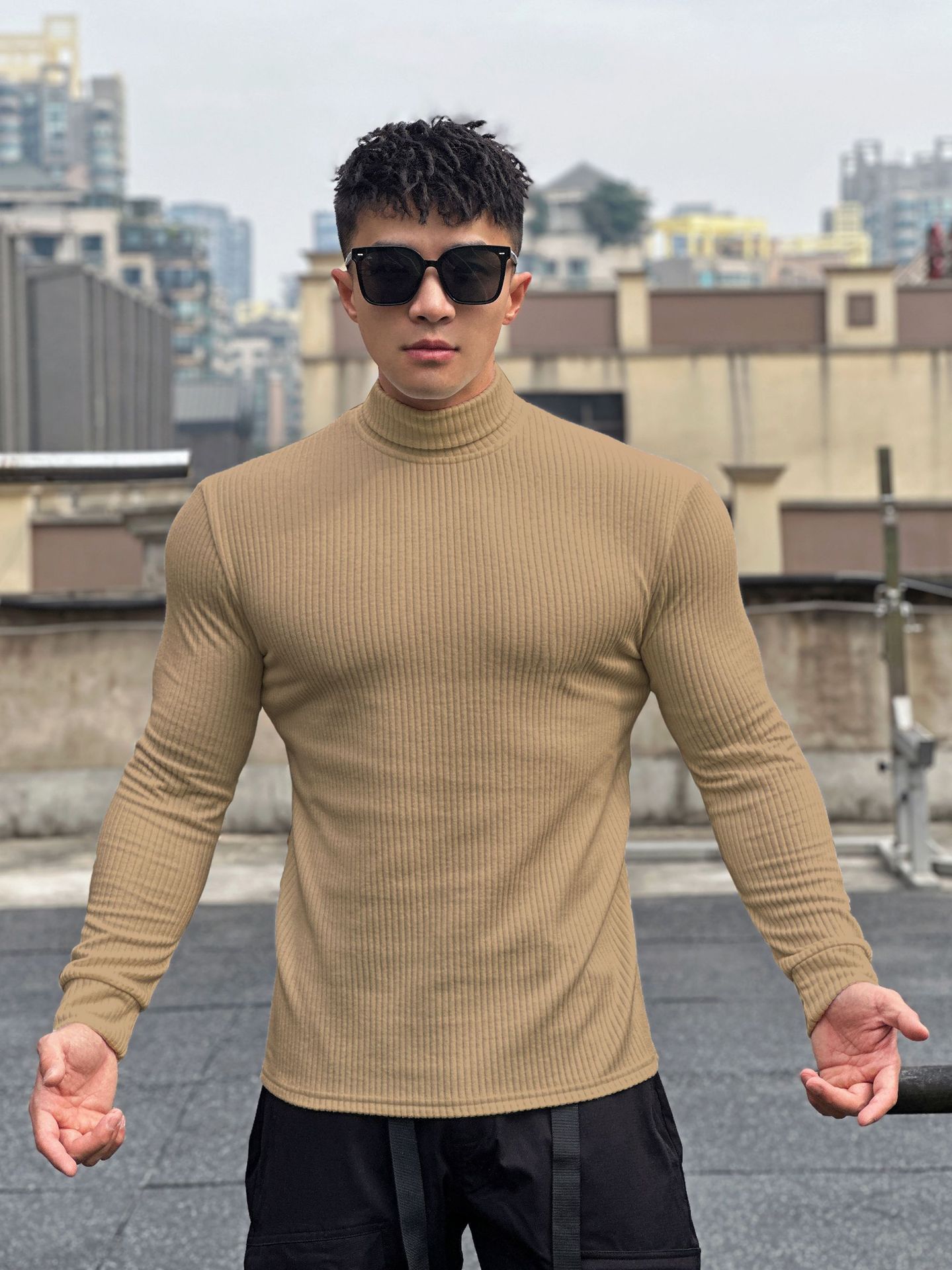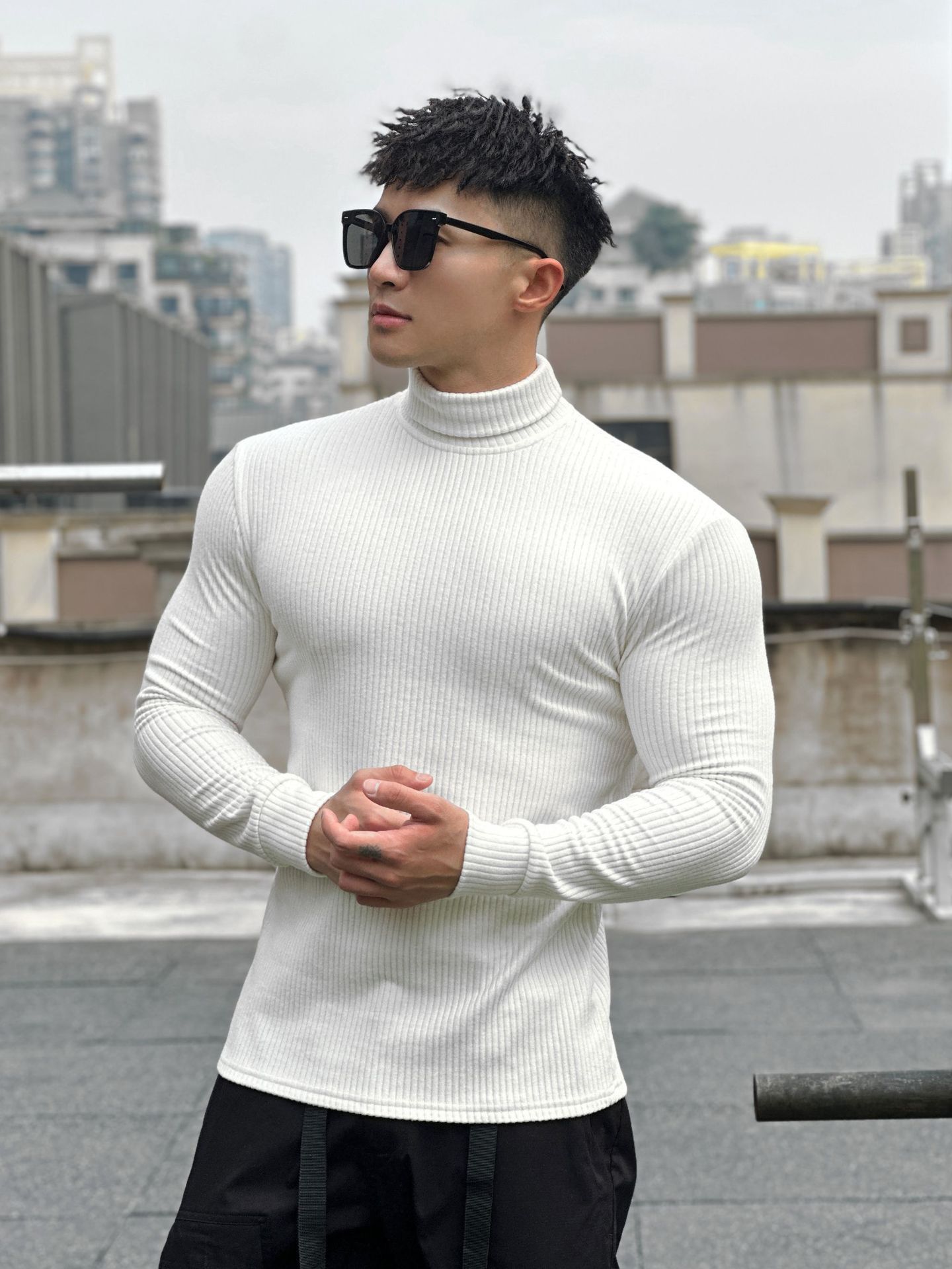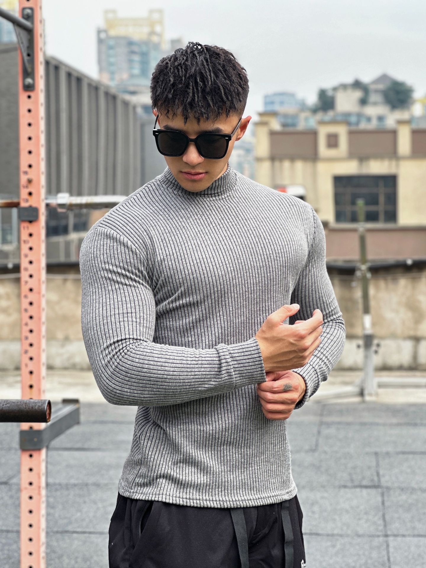남자 피트니스 운동 타이트한 반팔 스트라이프 긴팔 티셔츠 농구 훈련 스포츠 세미 하이 칼라 보텀 가을과 겨울