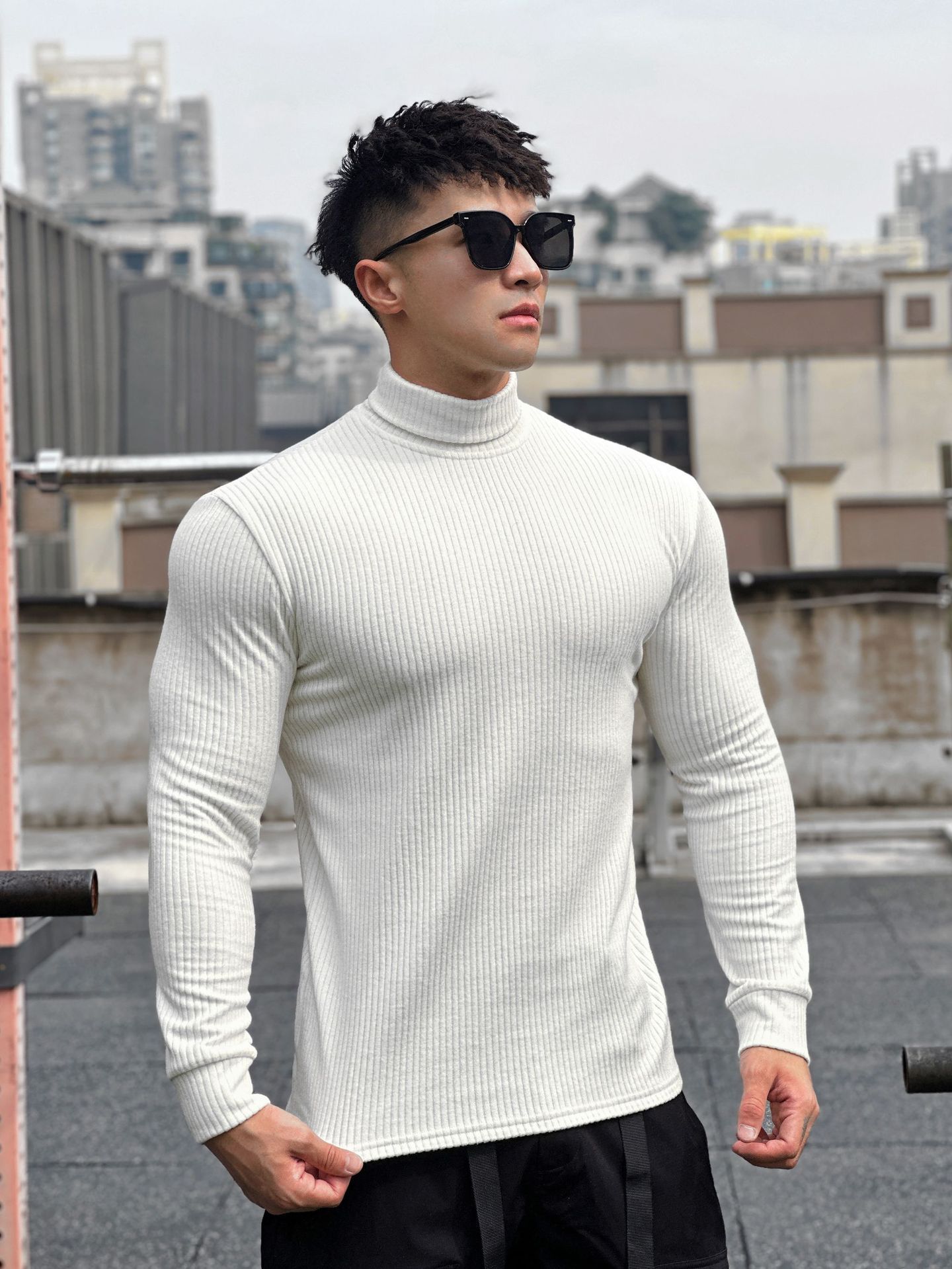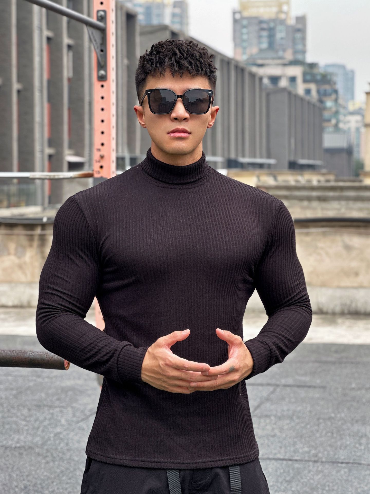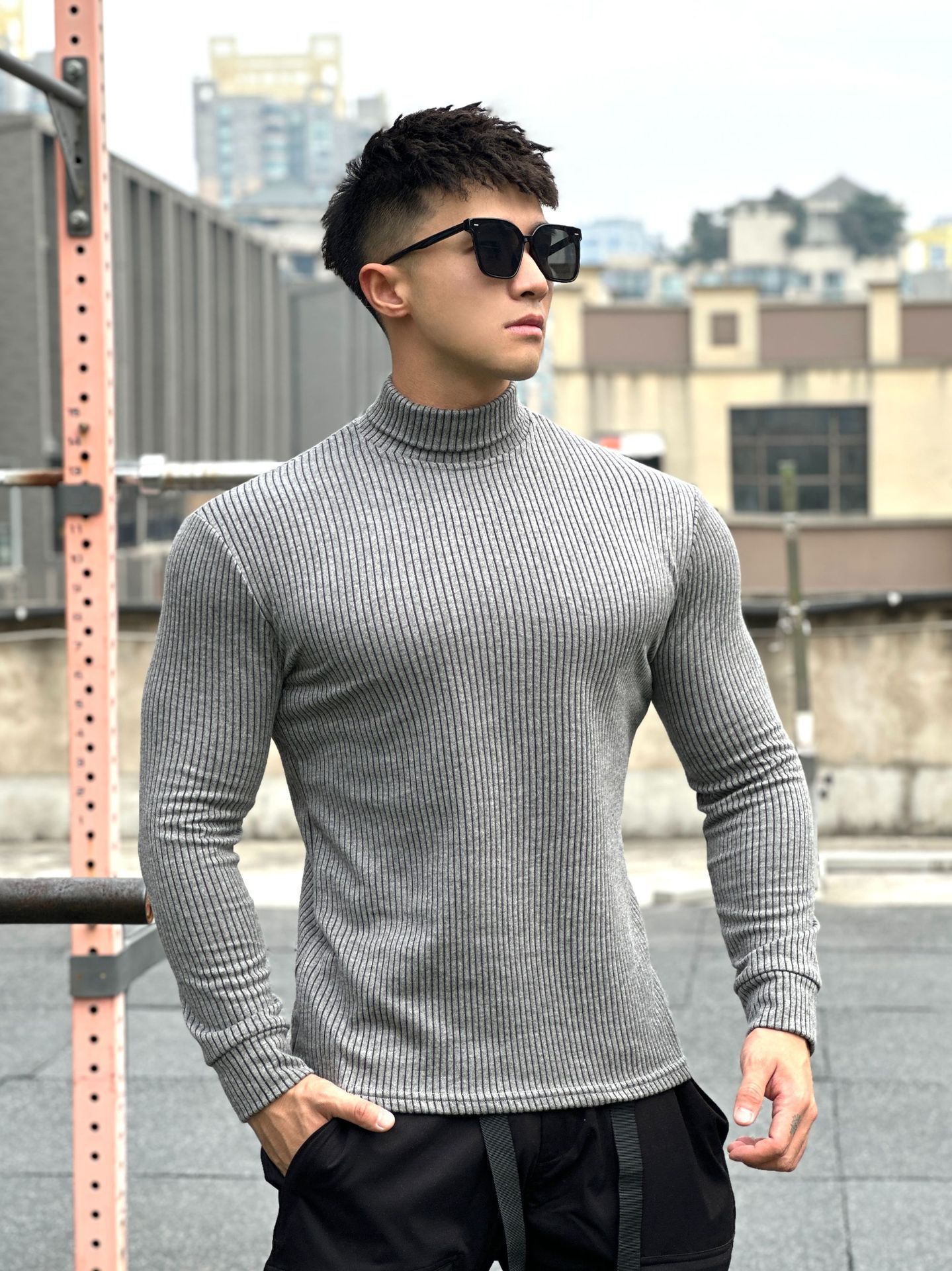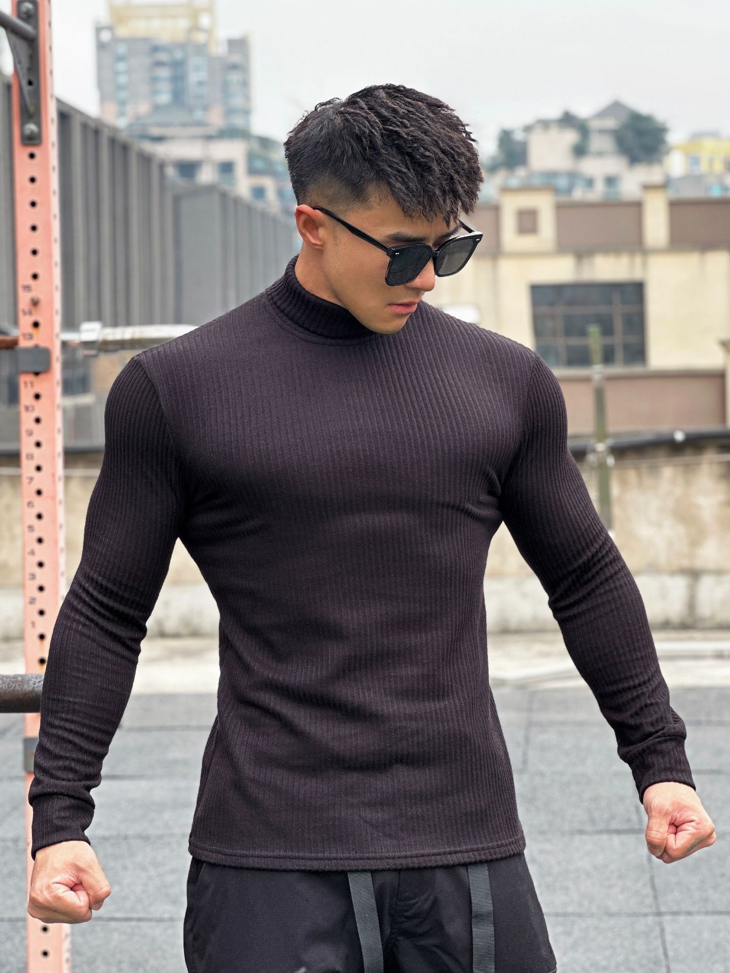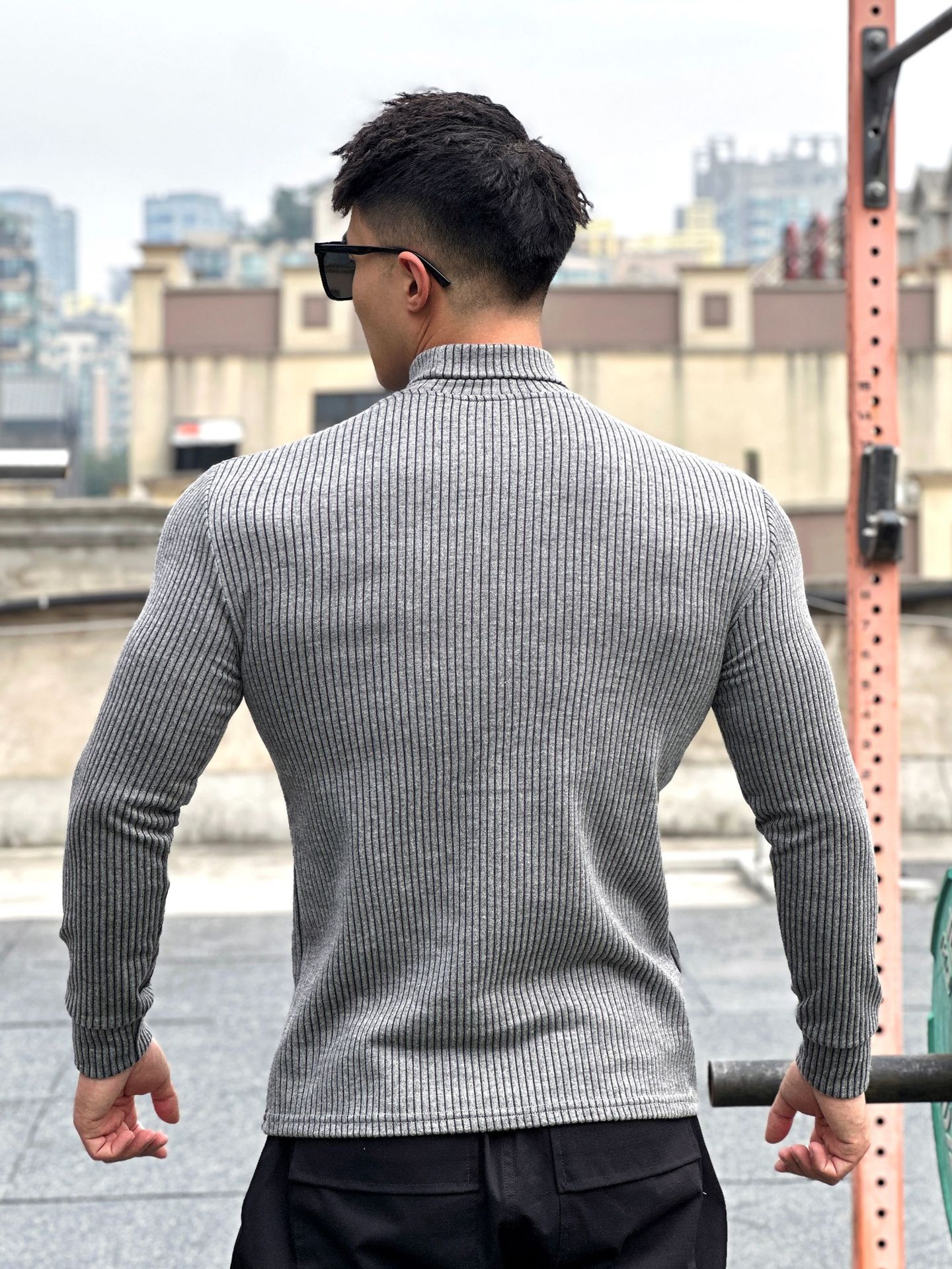 남자 피트니스 운동 타이트한 반팔 스트라이프 긴팔 티셔츠 농구 훈련 스포츠 세미 하이 칼라 보텀 가을과 겨울