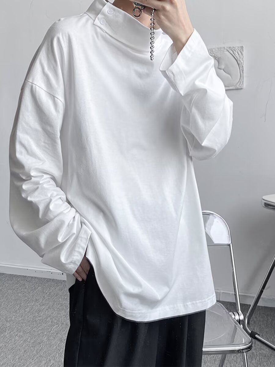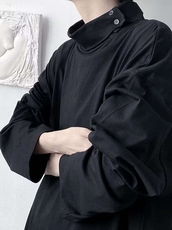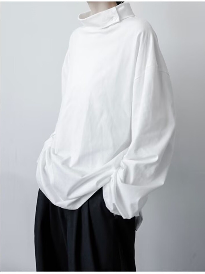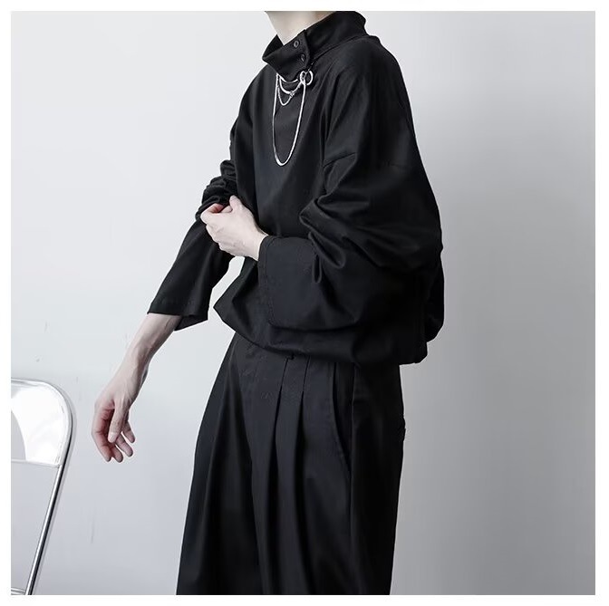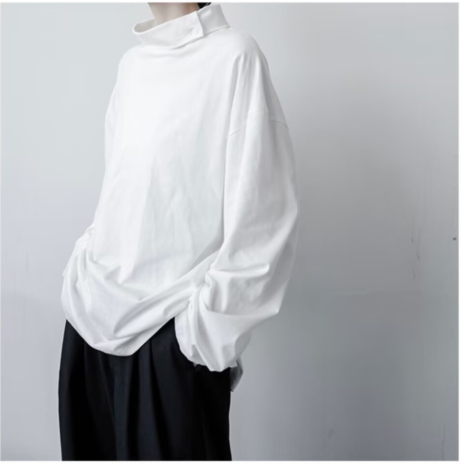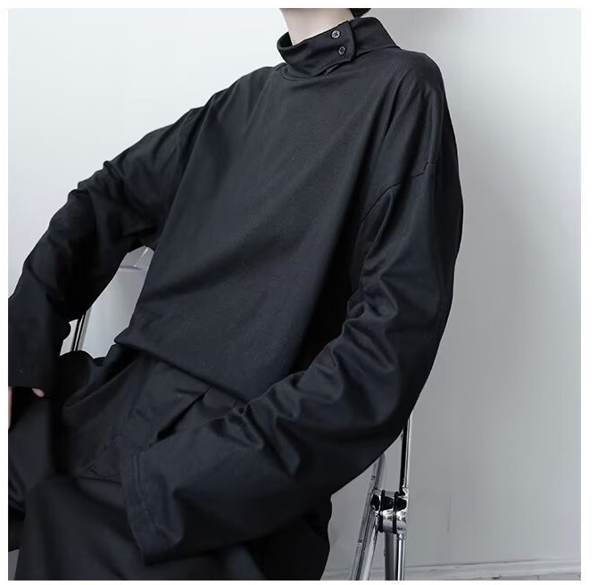 한펑 샤오 중 야마모토 스타일 캐주얼 스웨터 남자 일본 스타일 작은 높은 칼라 중립 긴 소매 비대칭 기본 셔츠 티셔츠 남성용