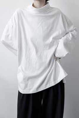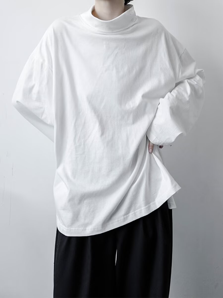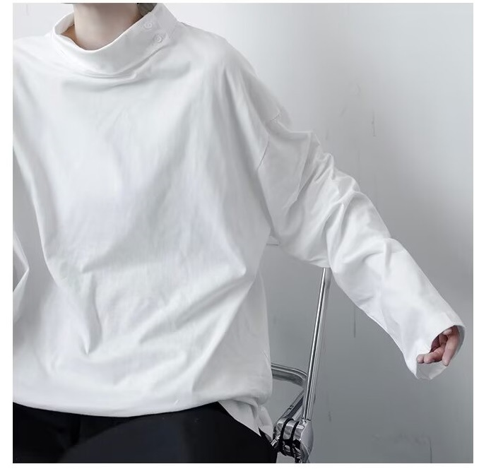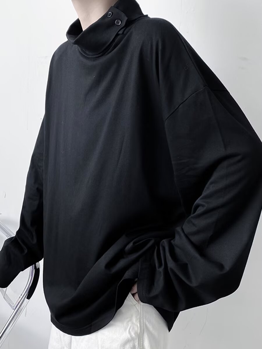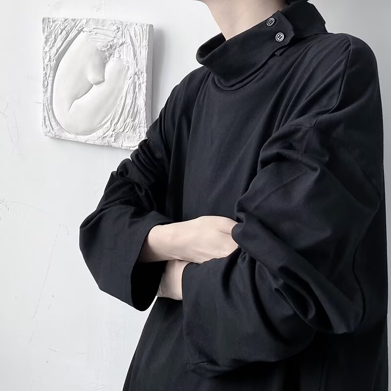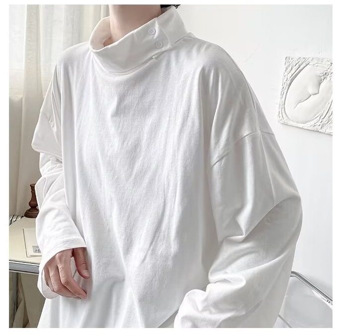 한펑 샤오 중 야마모토 스타일 캐주얼 스웨터 남자 일본 스타일 작은 높은 칼라 중립 긴 소매 비대칭 기본 셔츠 티셔츠 남성용