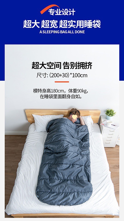 휴대용 침낭 성인이 길어지고 넓어진 야외 실내 봄, 여름, 가을, 겨울은 추위와 따뜻한 여름 프로모션을 두껍게 만들었습니다.