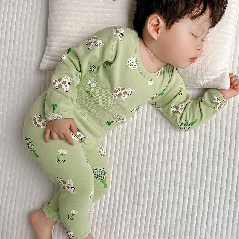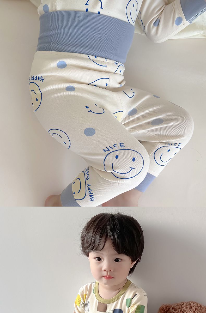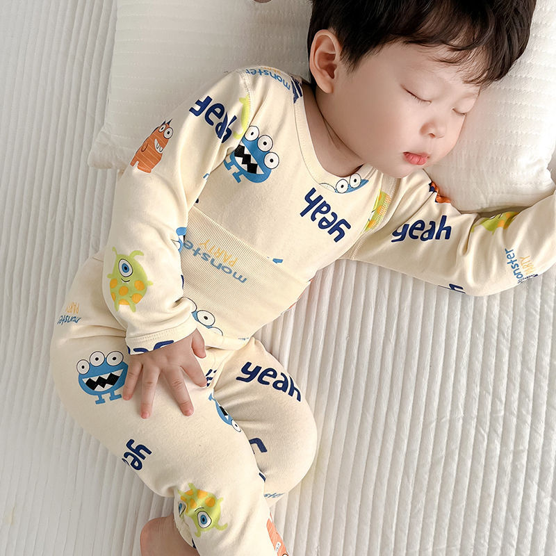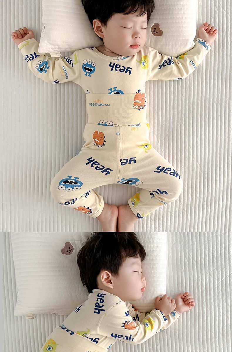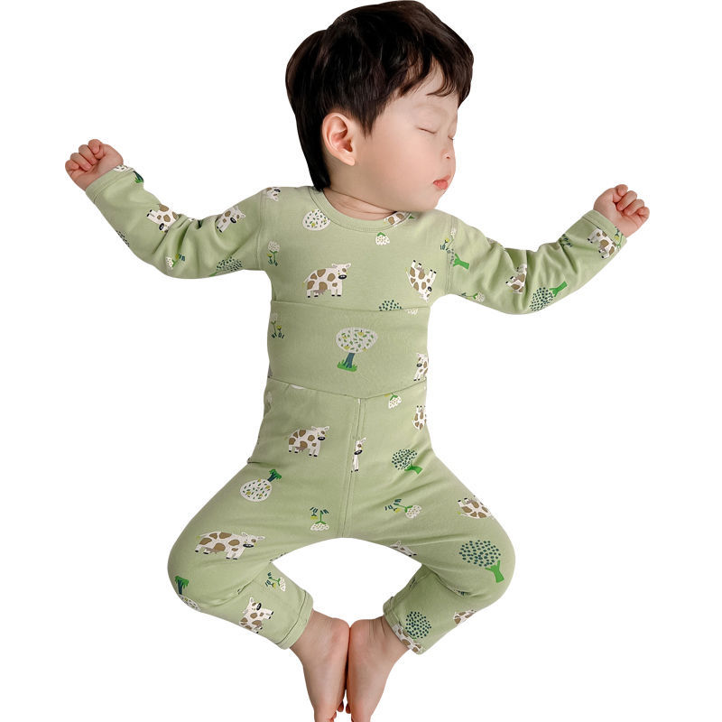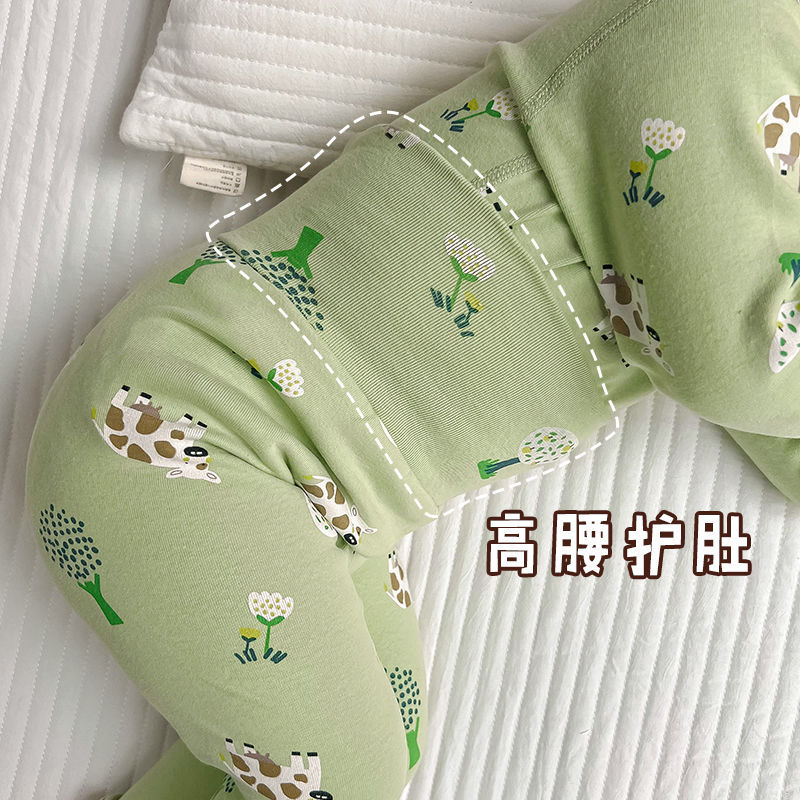 소년 아기의 가을 옷과 바지 세트 면 높은 허리 배꼽 보호자 두꺼운 아기 열 속옷 어린이 잠옷 가을과 겨울
