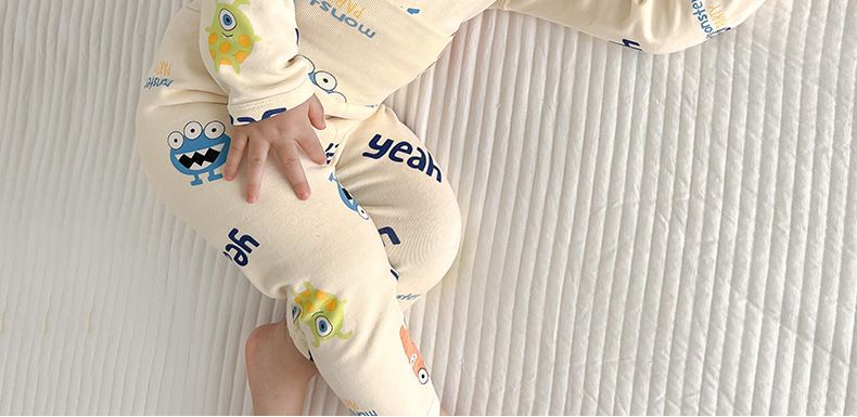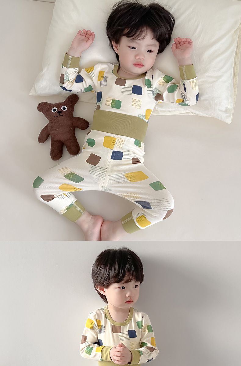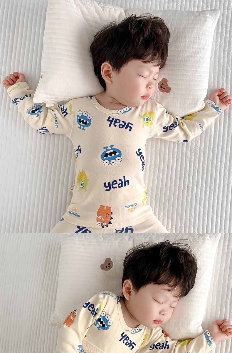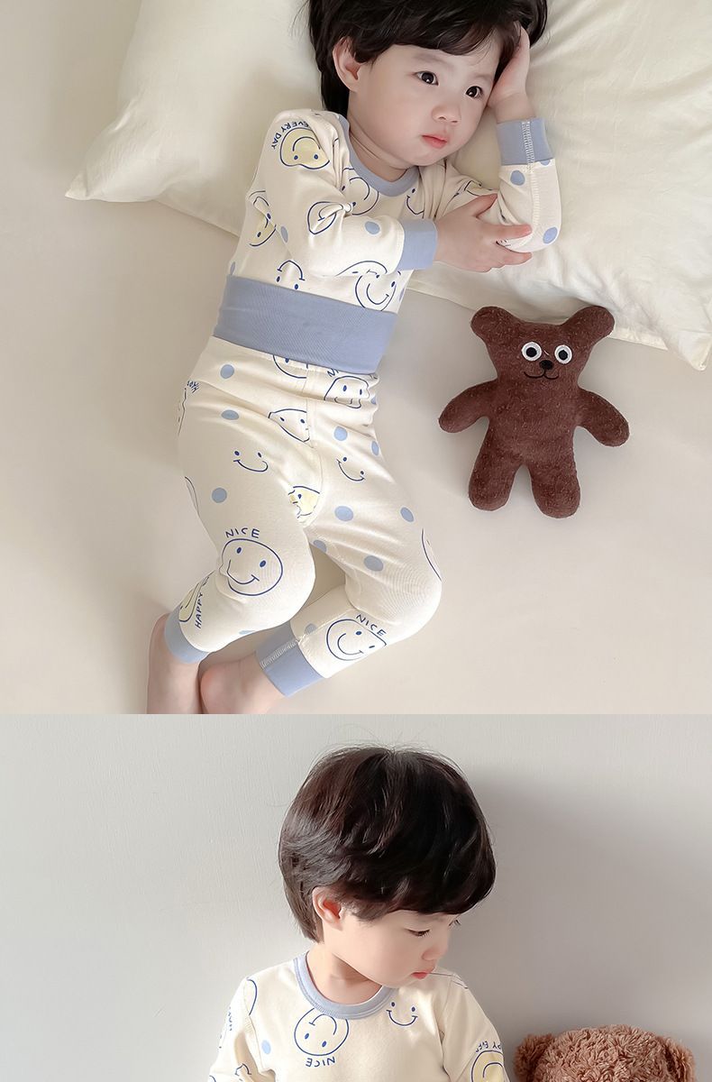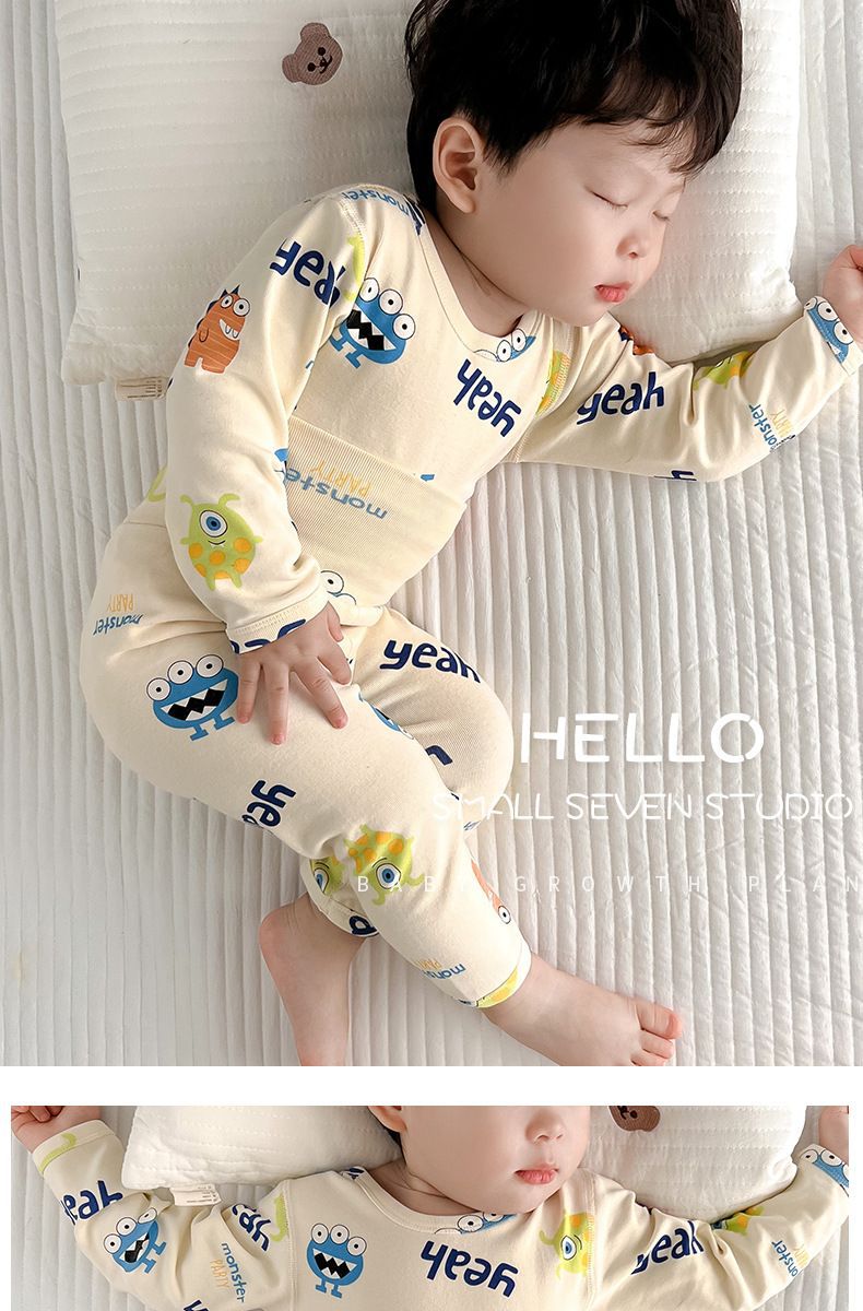 소년 아기의 가을 옷과 바지 세트 면 높은 허리 배꼽 보호자 두꺼운 아기 열 속옷 어린이 잠옷 가을과 겨울