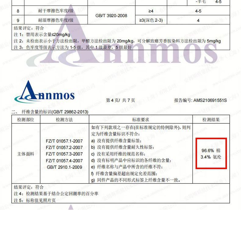 주요 원단 성분 함량