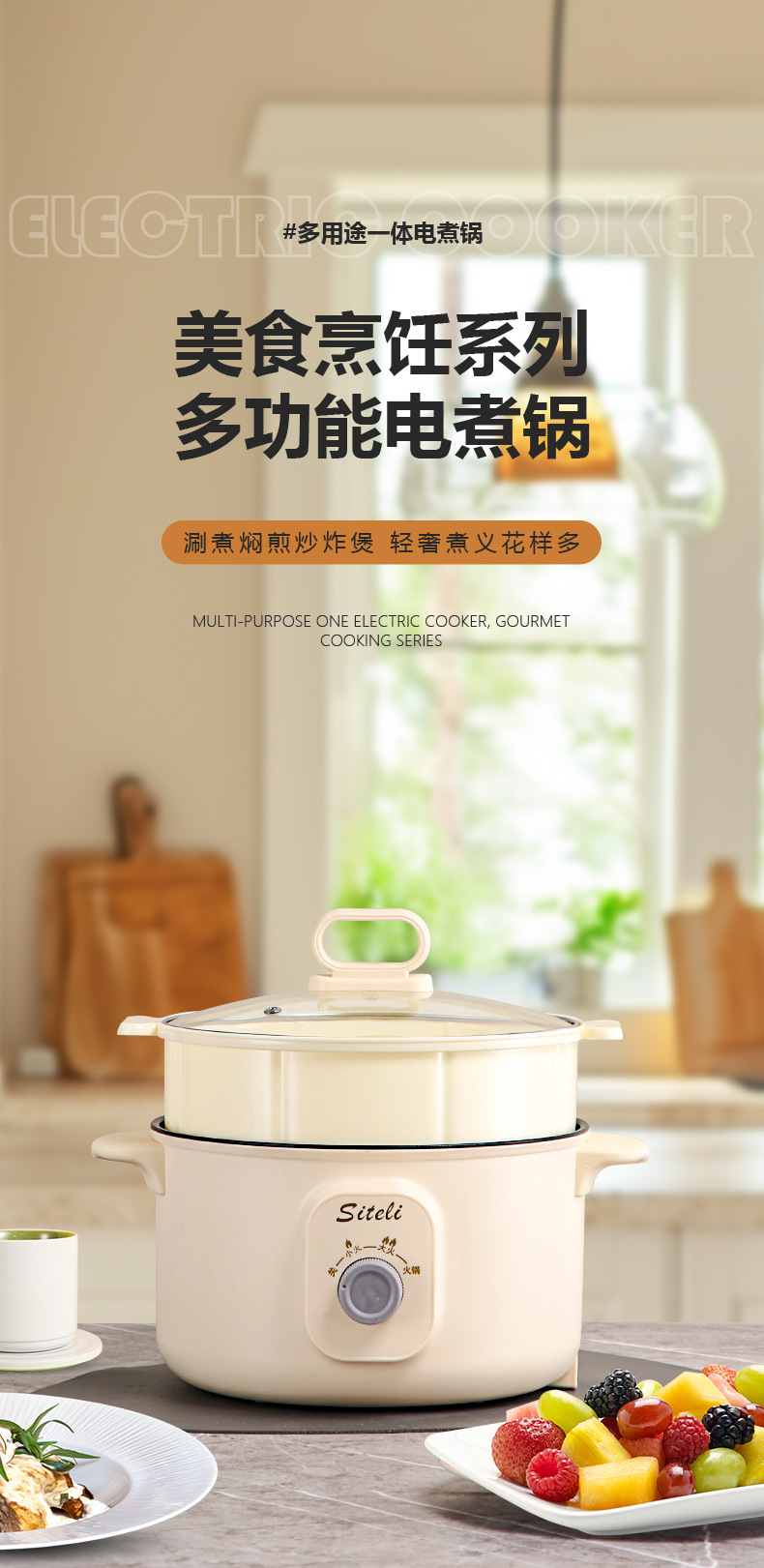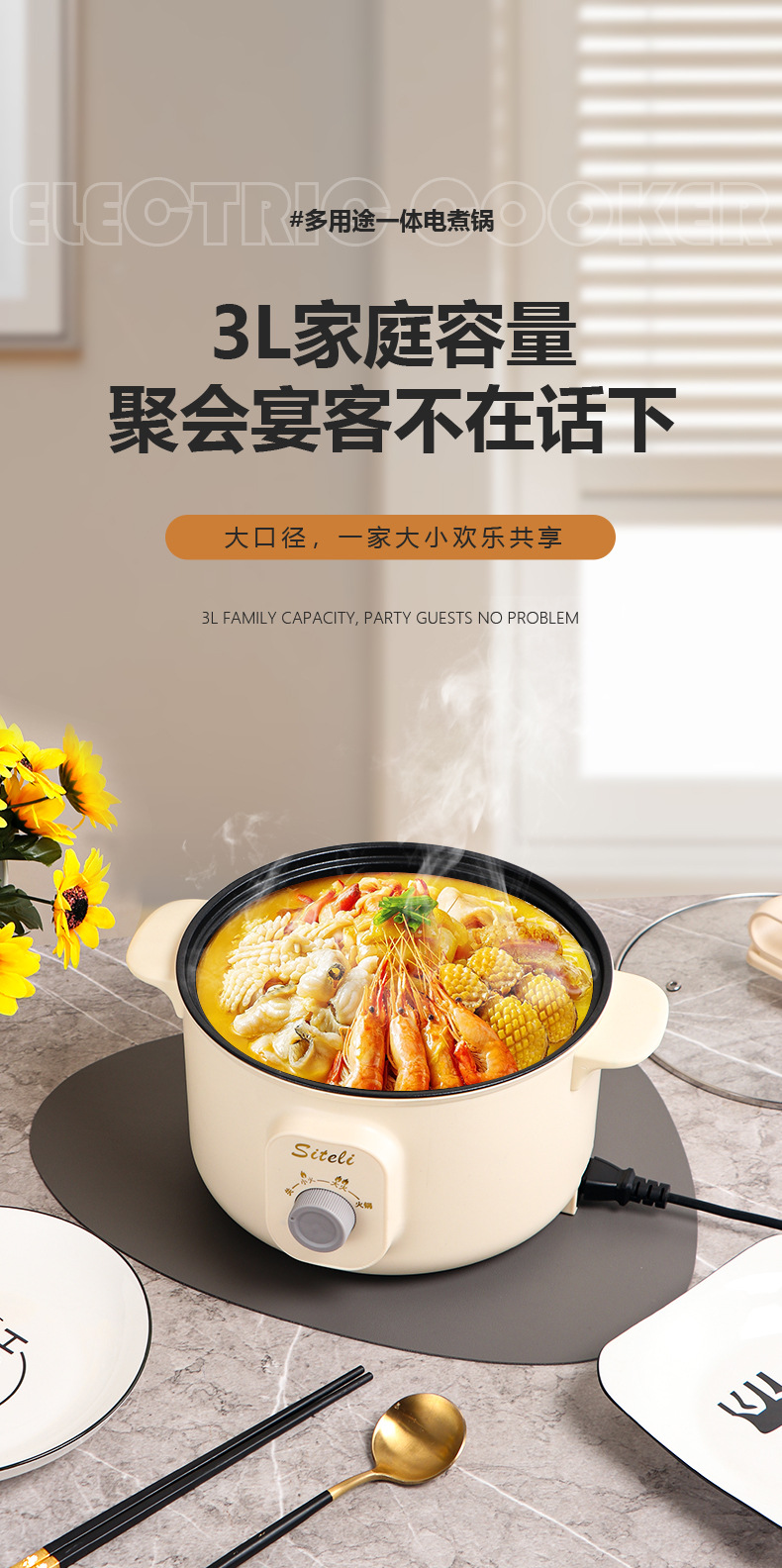 노브 스틱 내부 냄비 심화 두꺼운 다기능 전기 냄비 통합 냄비 전기 뜨거운 냄비 다목적 냄비