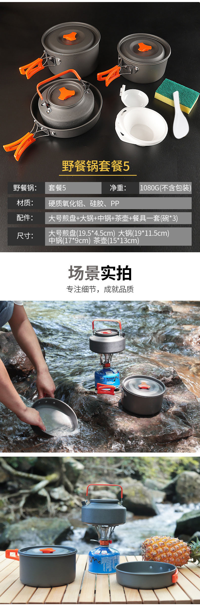 A2 패키지 : 2~3인용 냄비세트 [소형 냄비+중 냄비+중 프라이팬+식기+수납가방]