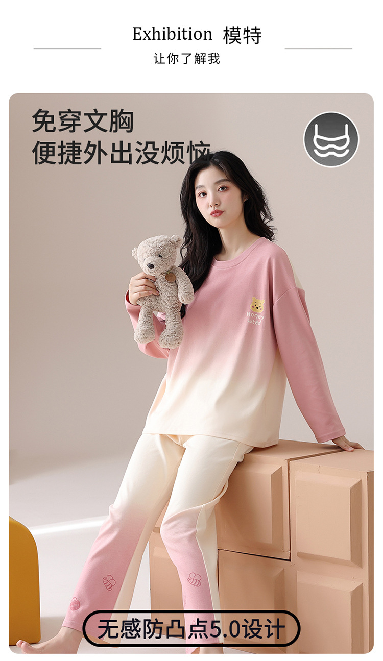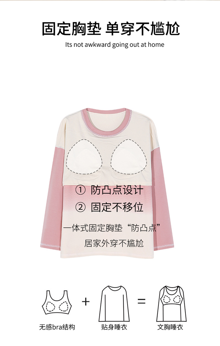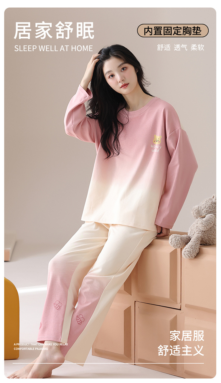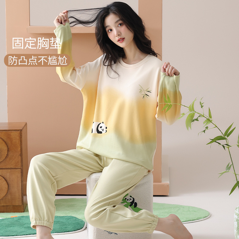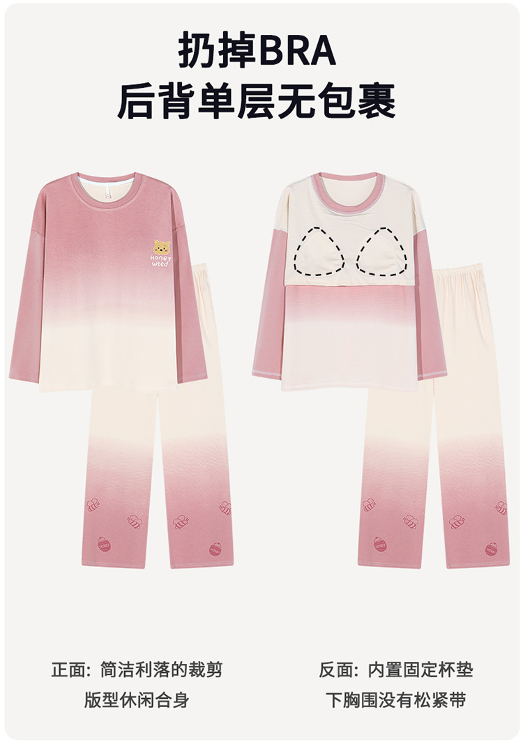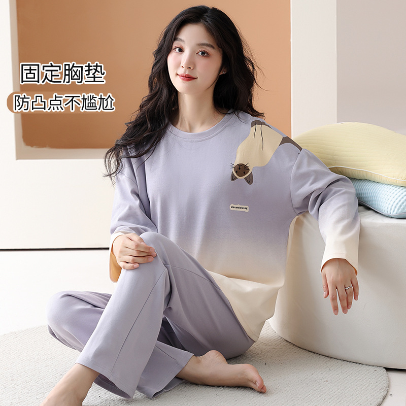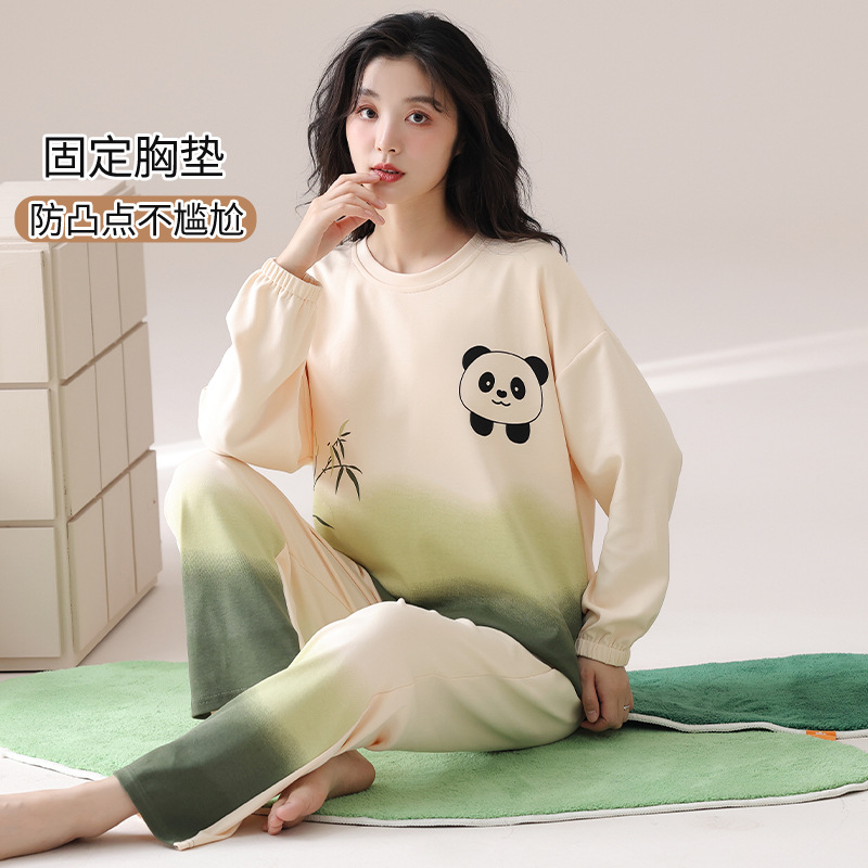 잠옷 여성의 봄과 가을 100 면 긴 소매 가을 귀여운 여성 홈 옷 가슴 패드면 세트