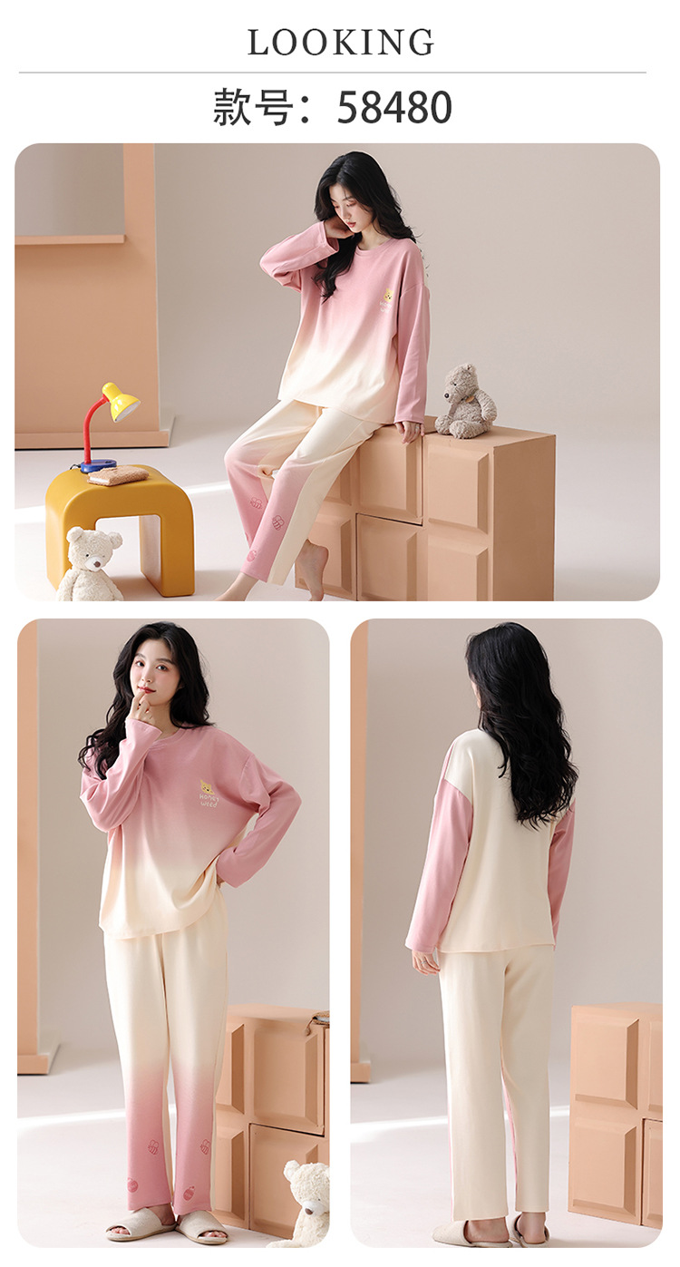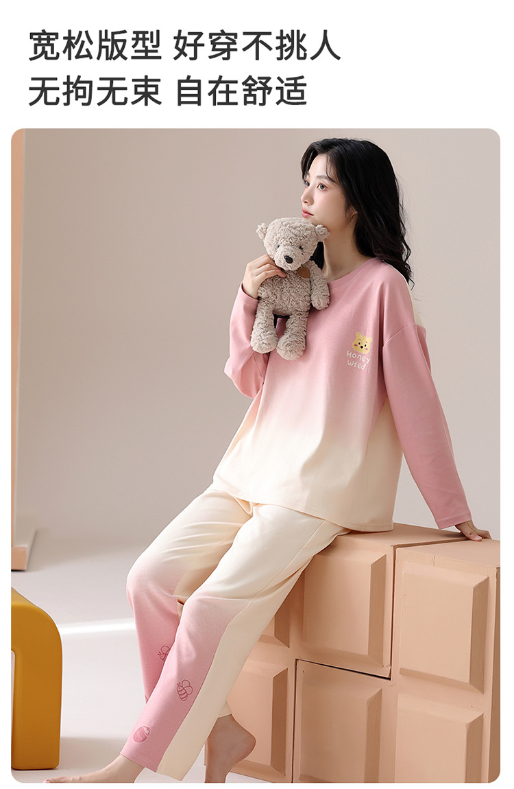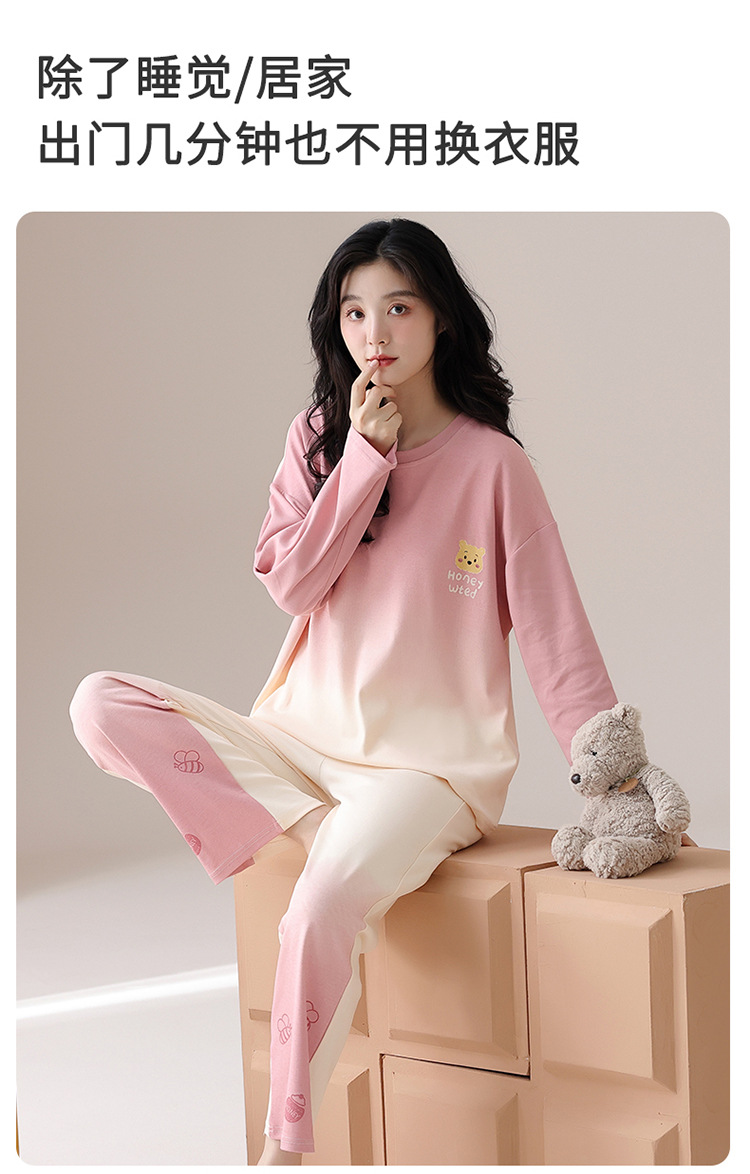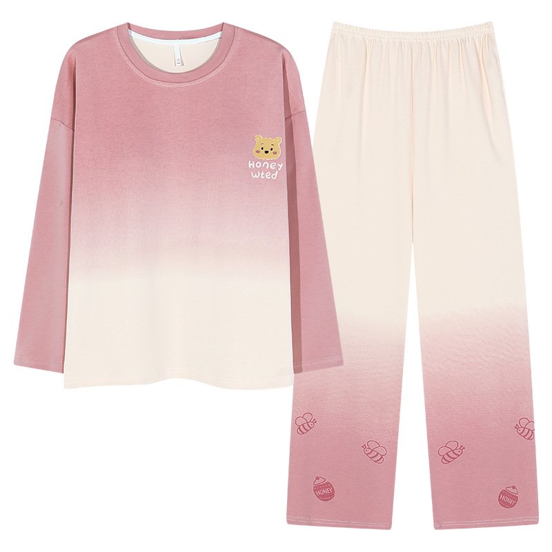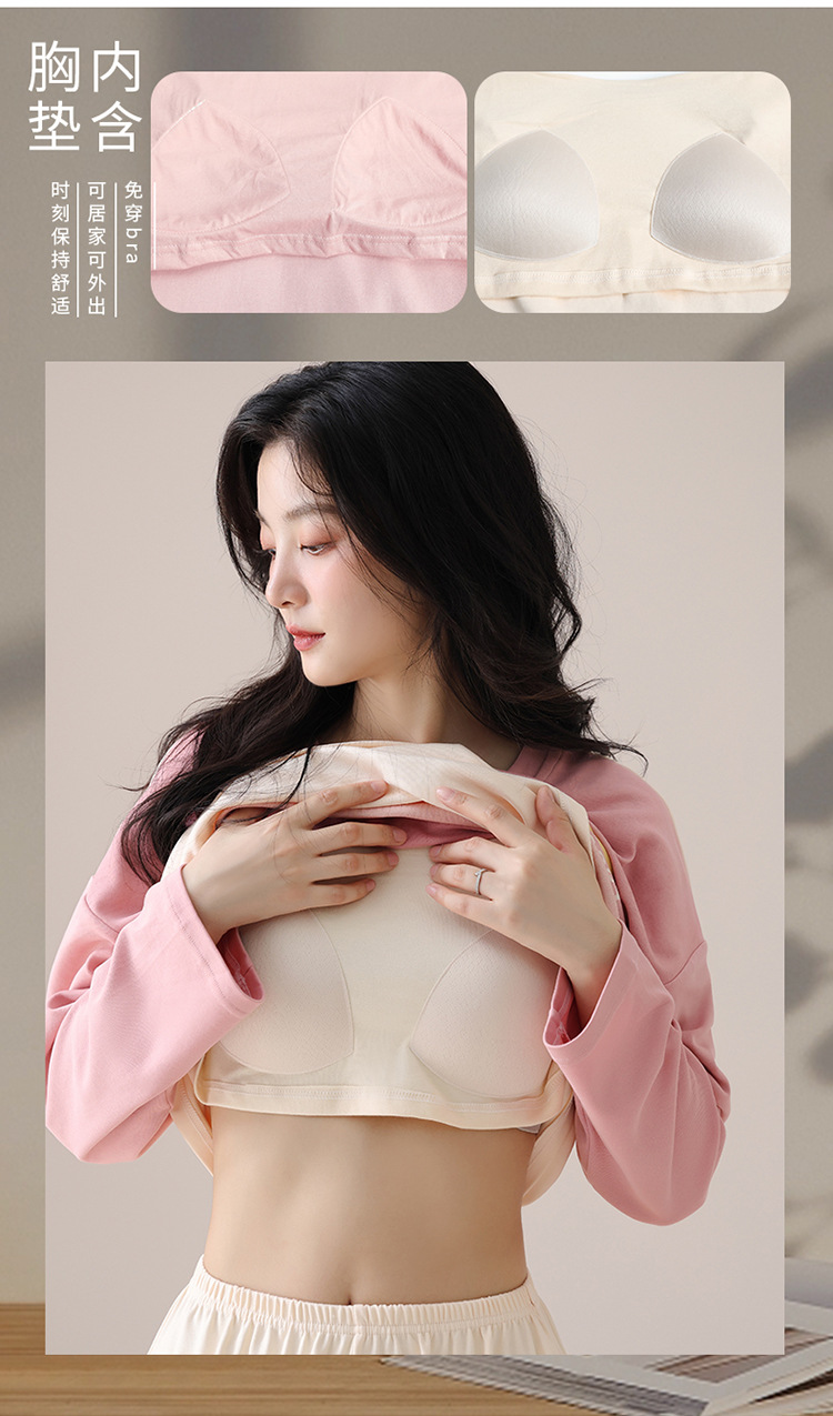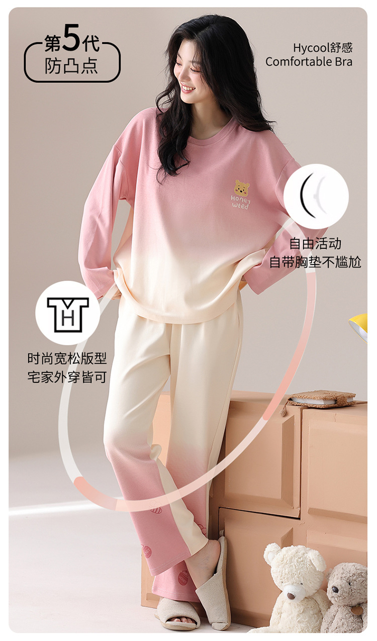 잠옷 여성의 봄과 가을 100 면 긴 소매 가을 귀여운 여성 홈 옷 가슴 패드면 세트