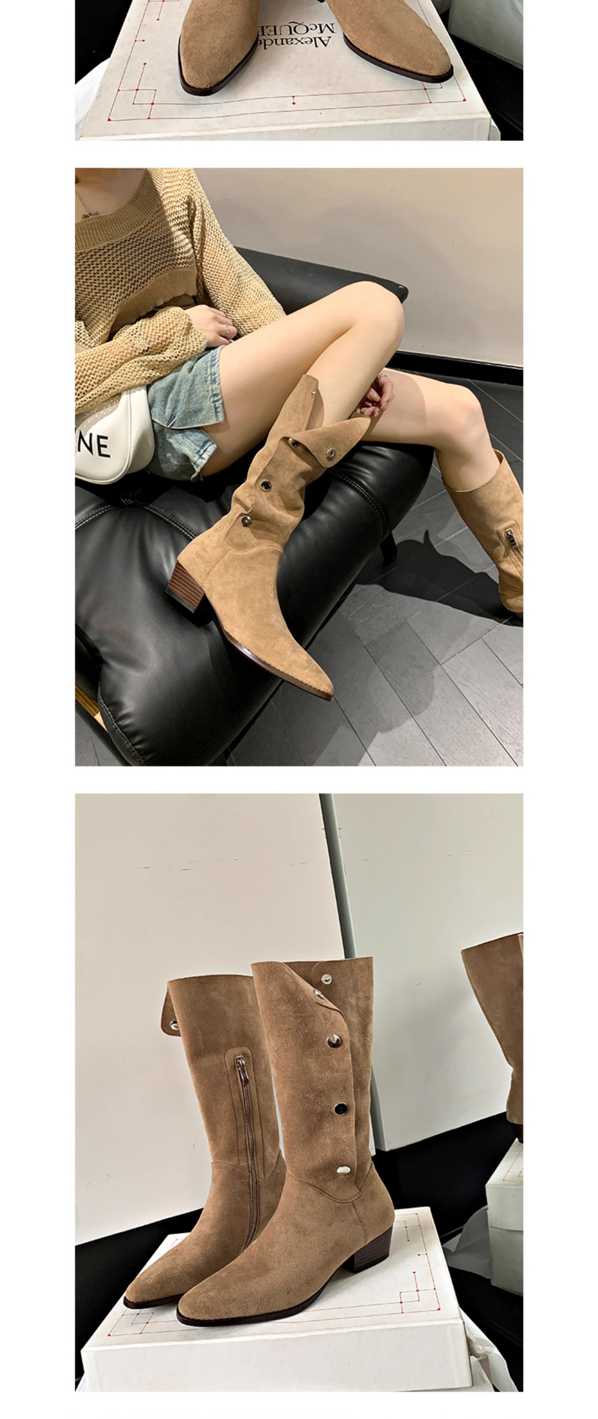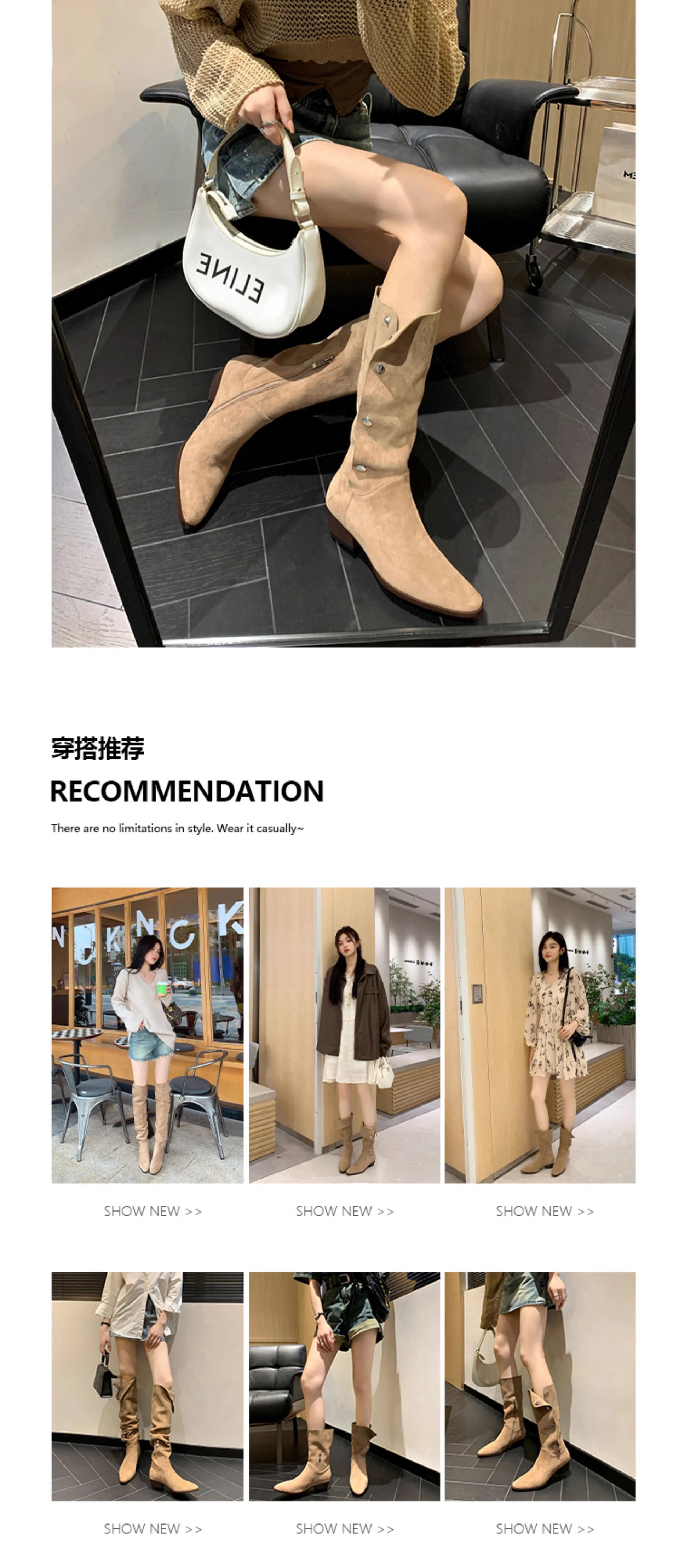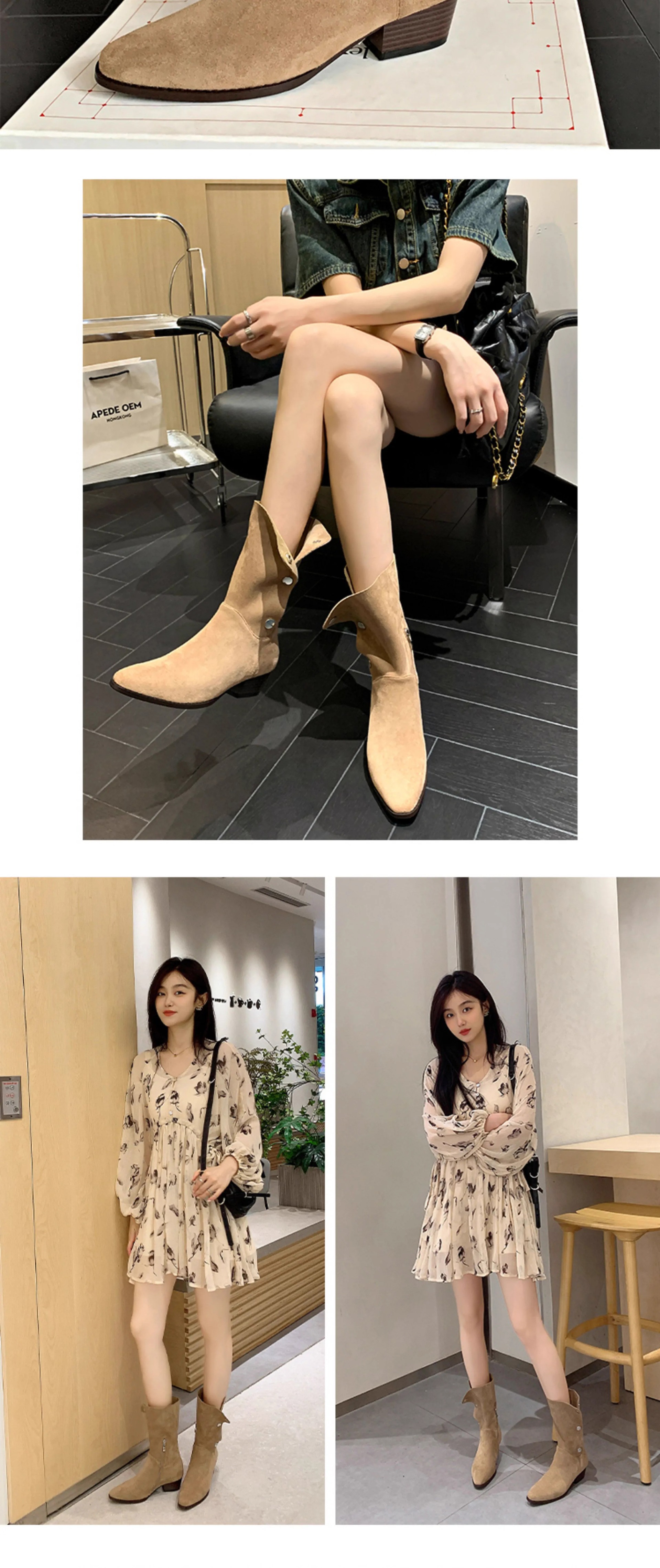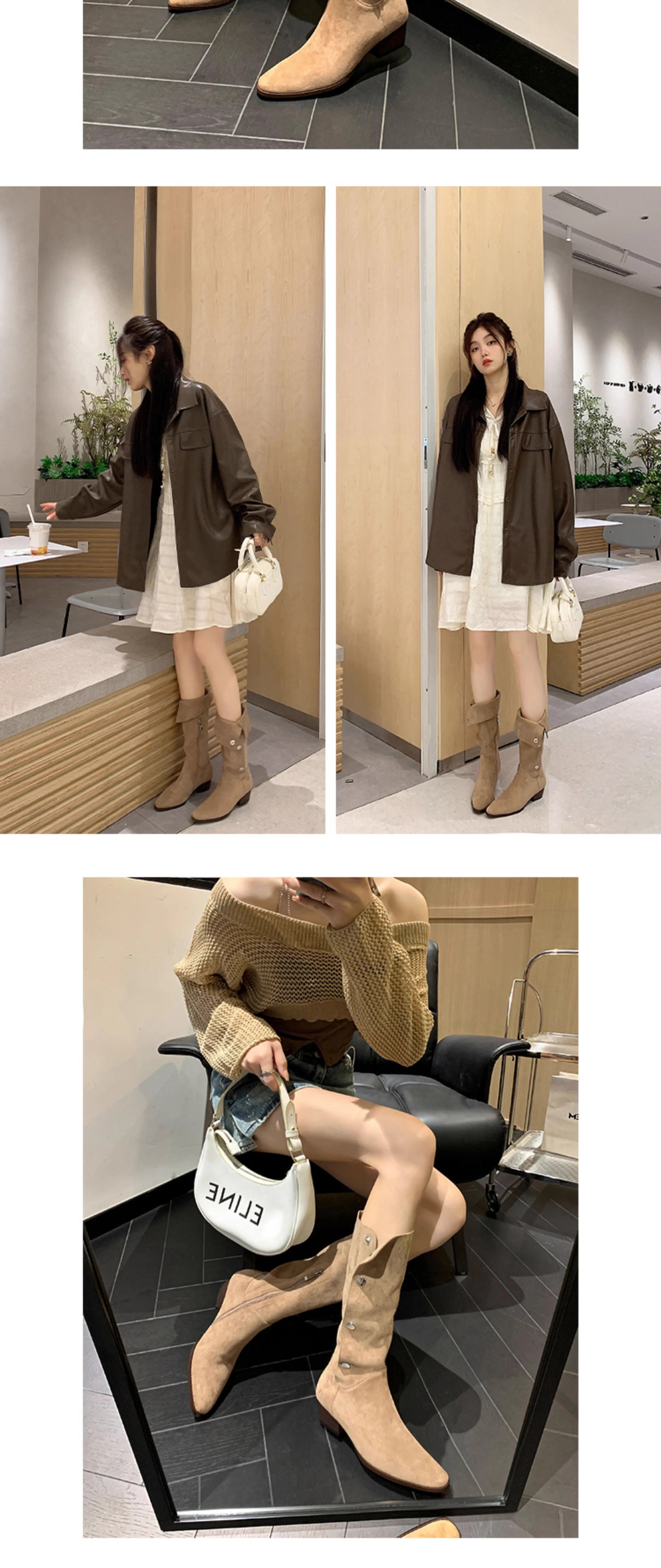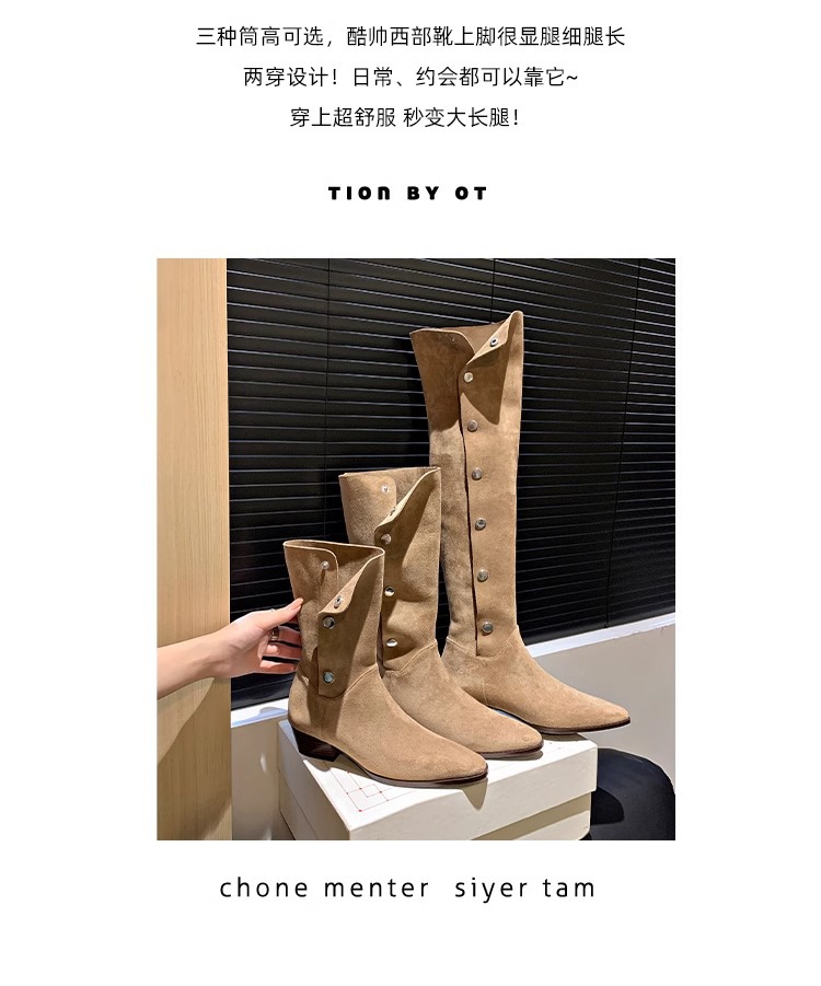 여성용 푸시업 부츠 2025 신상 두꺼운 굽 하이힐 미드카프 웨스턴 카우보이 부츠 무릎 위 라이더 부츠