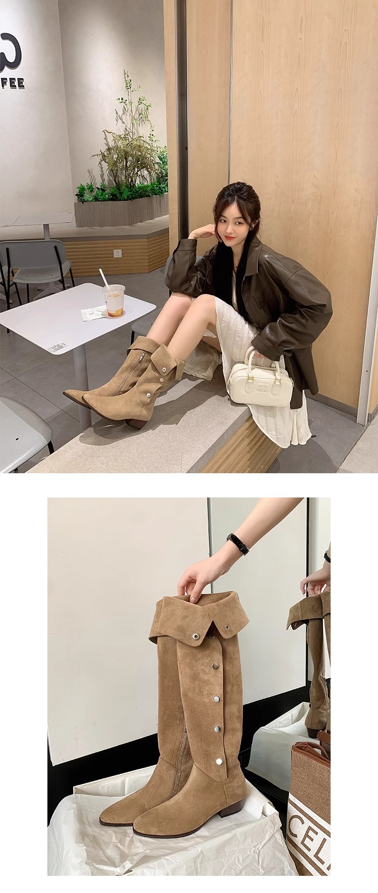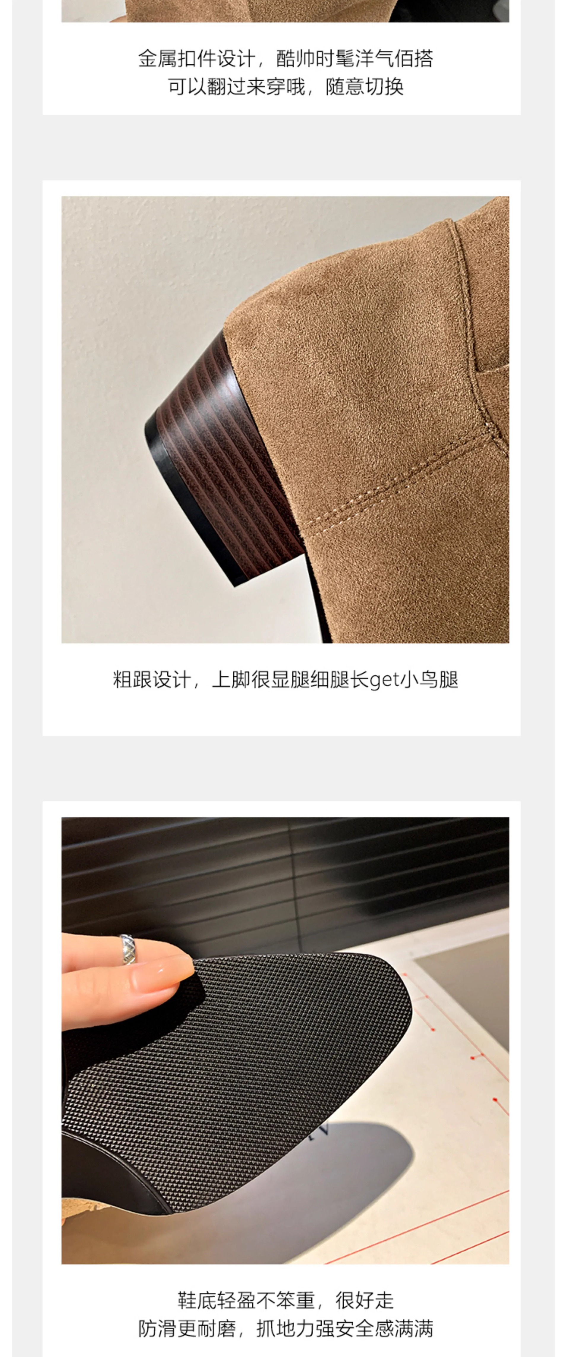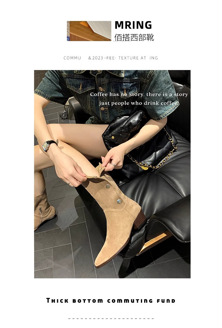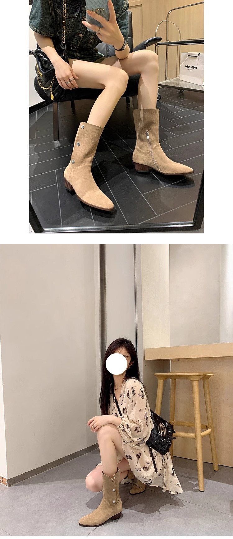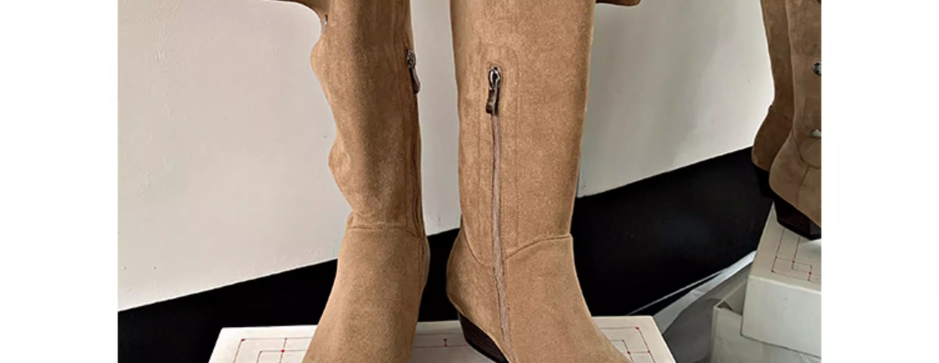 여성용 푸시업 부츠 2025 신상 두꺼운 굽 하이힐 미드카프 웨스턴 카우보이 부츠 무릎 위 라이더 부츠