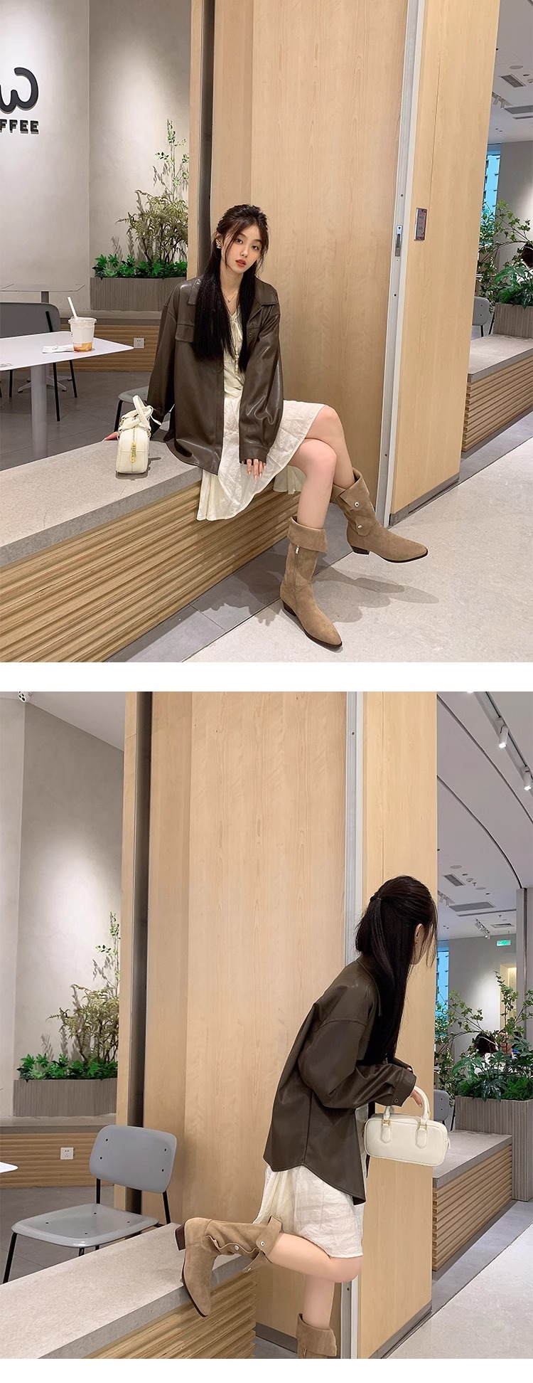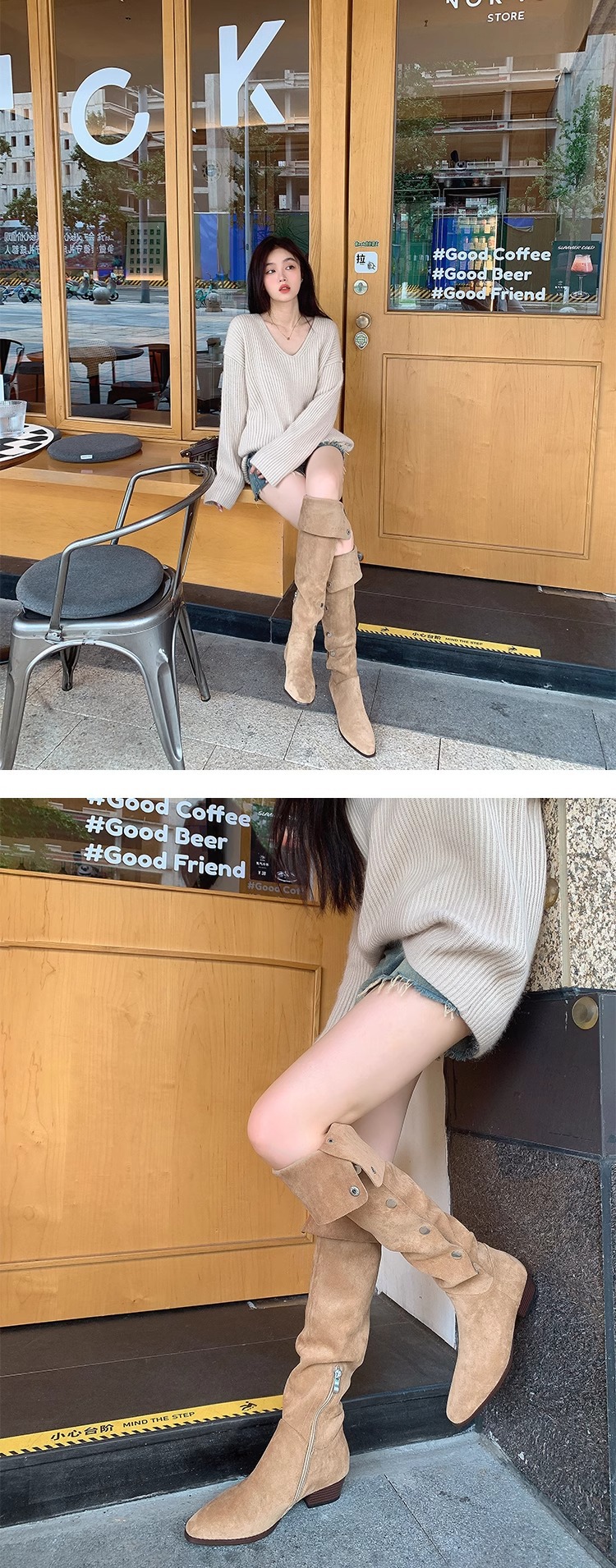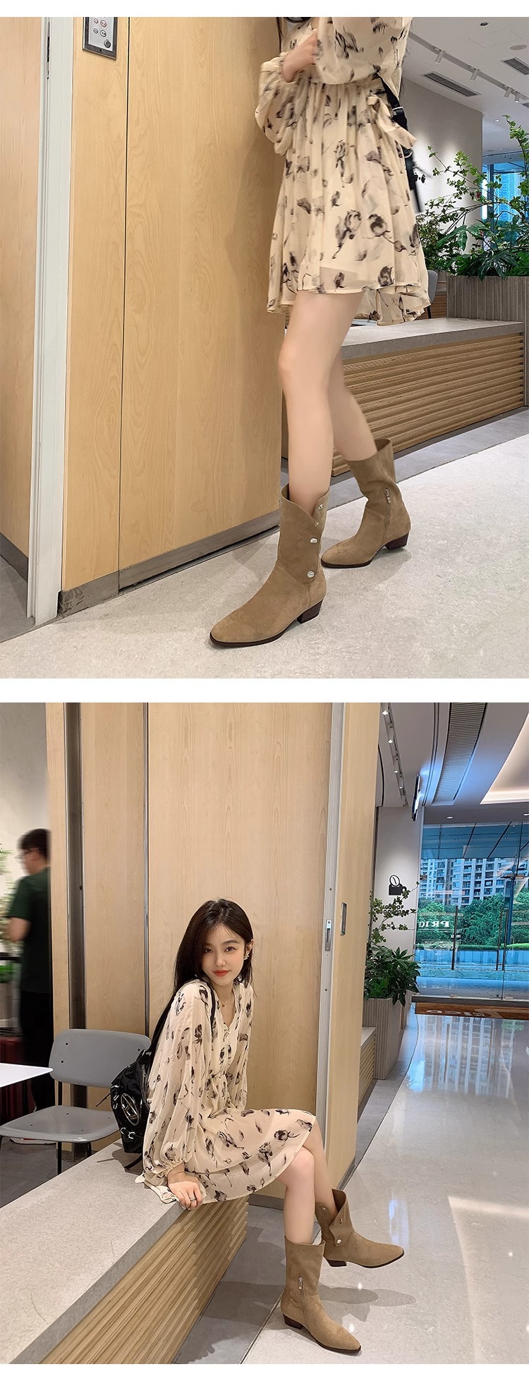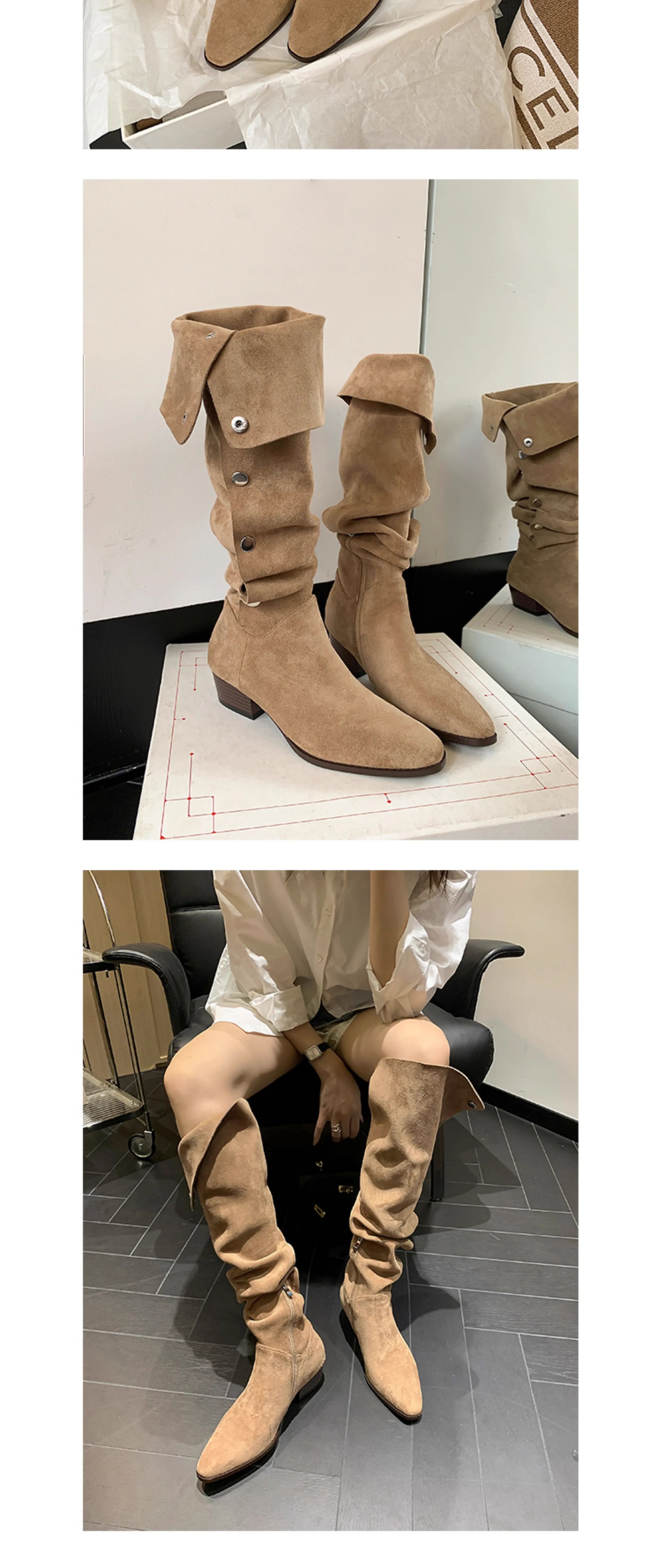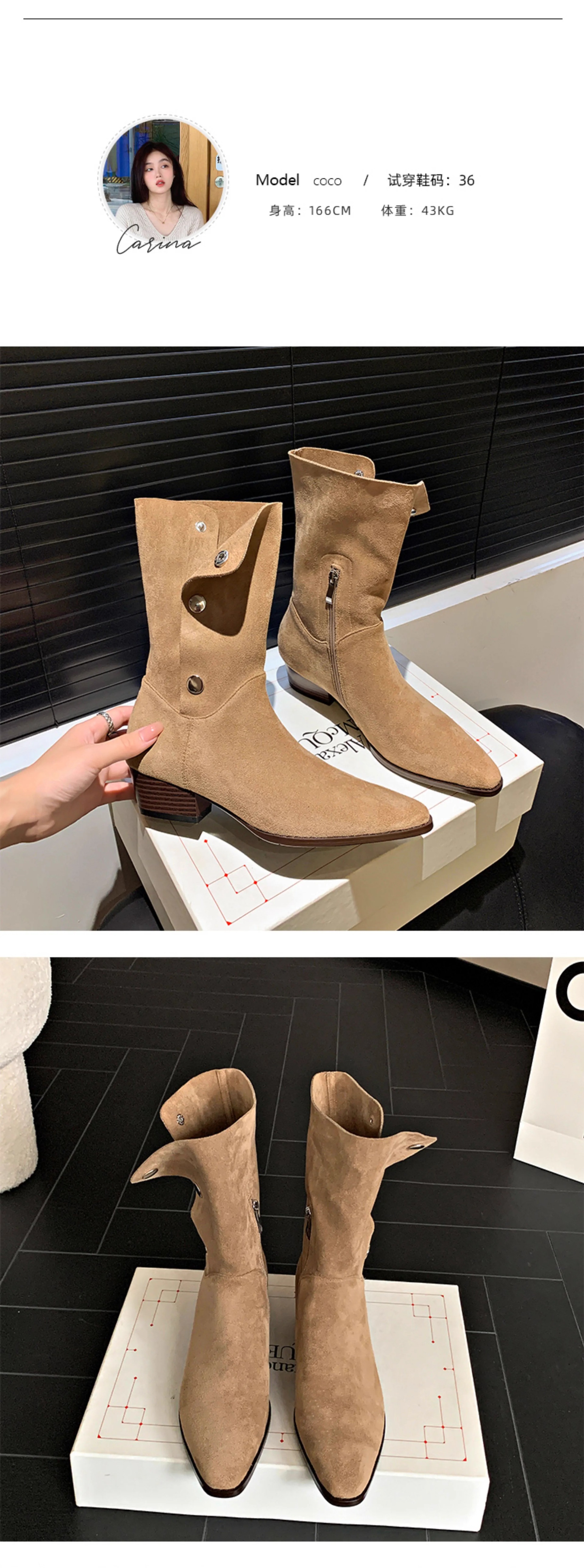 여성용 푸시업 부츠 2025 신상 두꺼운 굽 하이힐 미드카프 웨스턴 카우보이 부츠 무릎 위 라이더 부츠