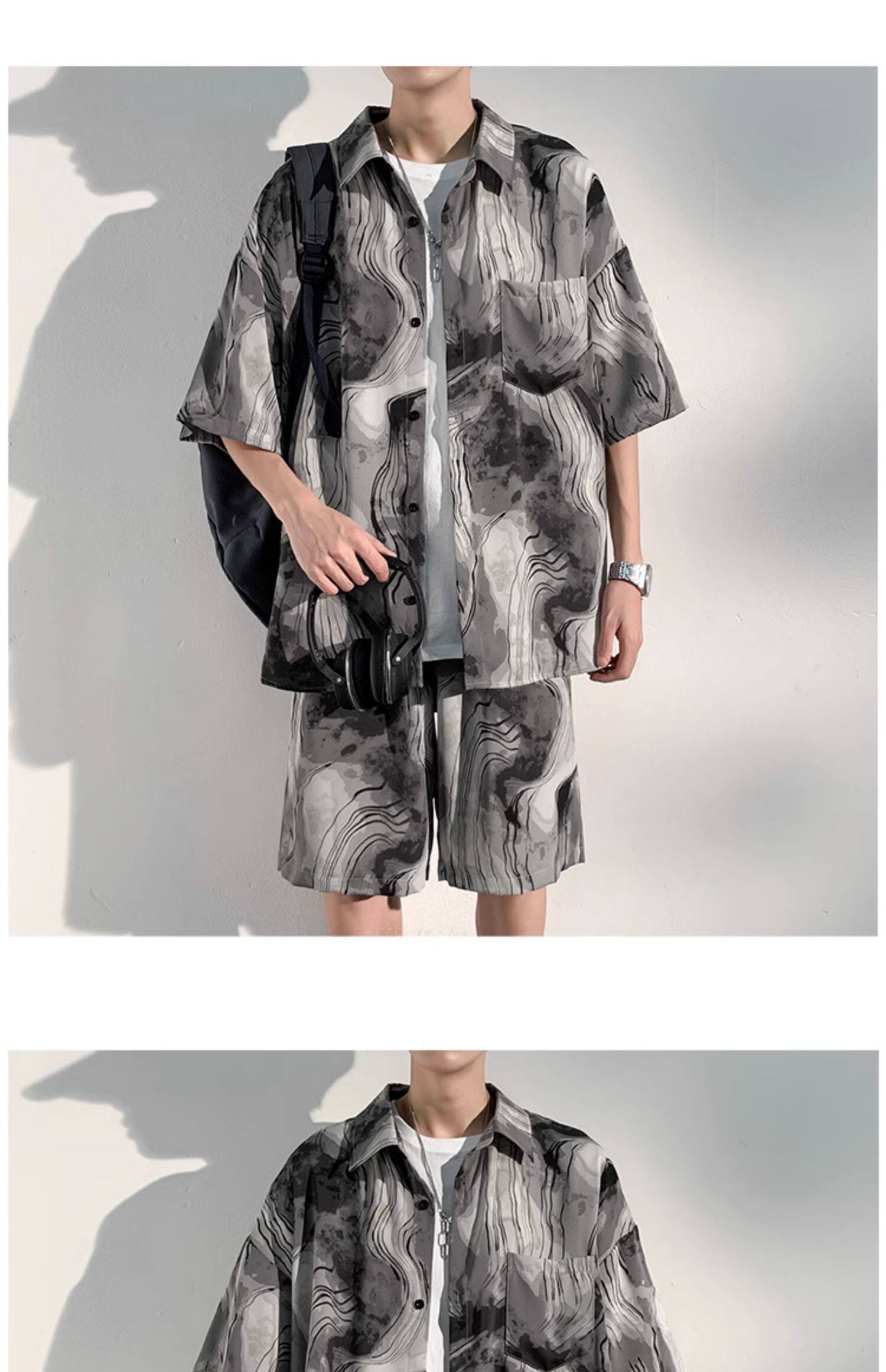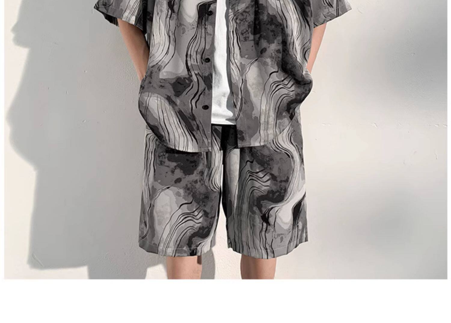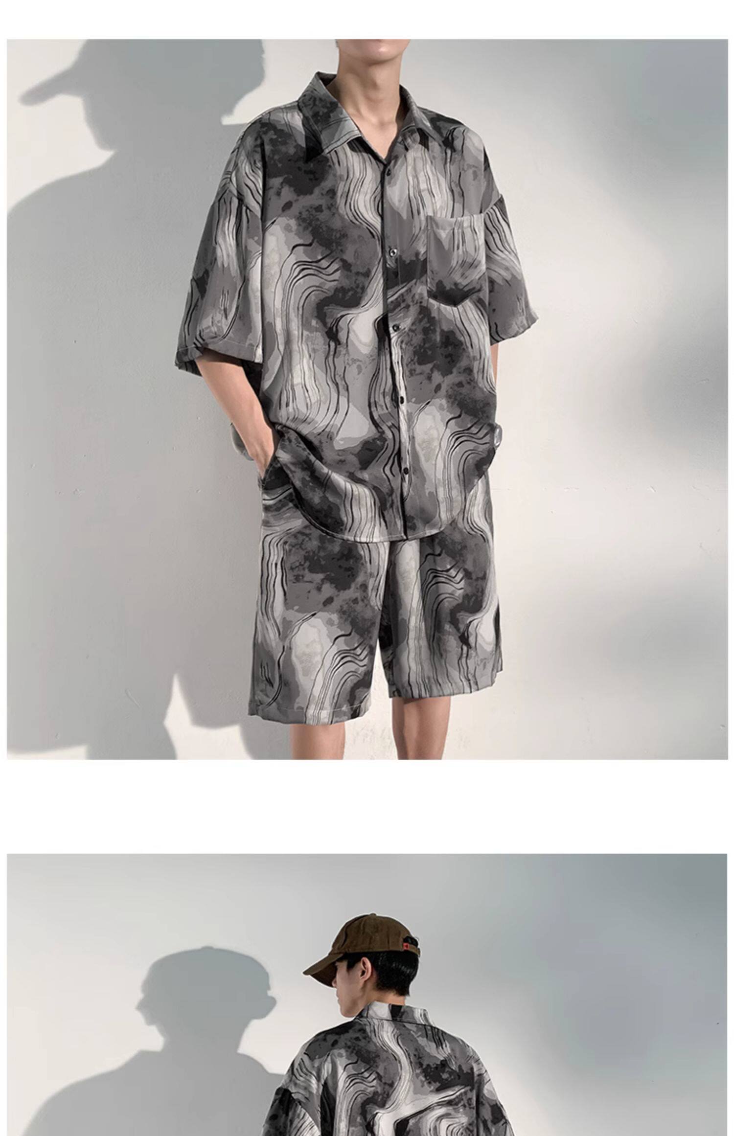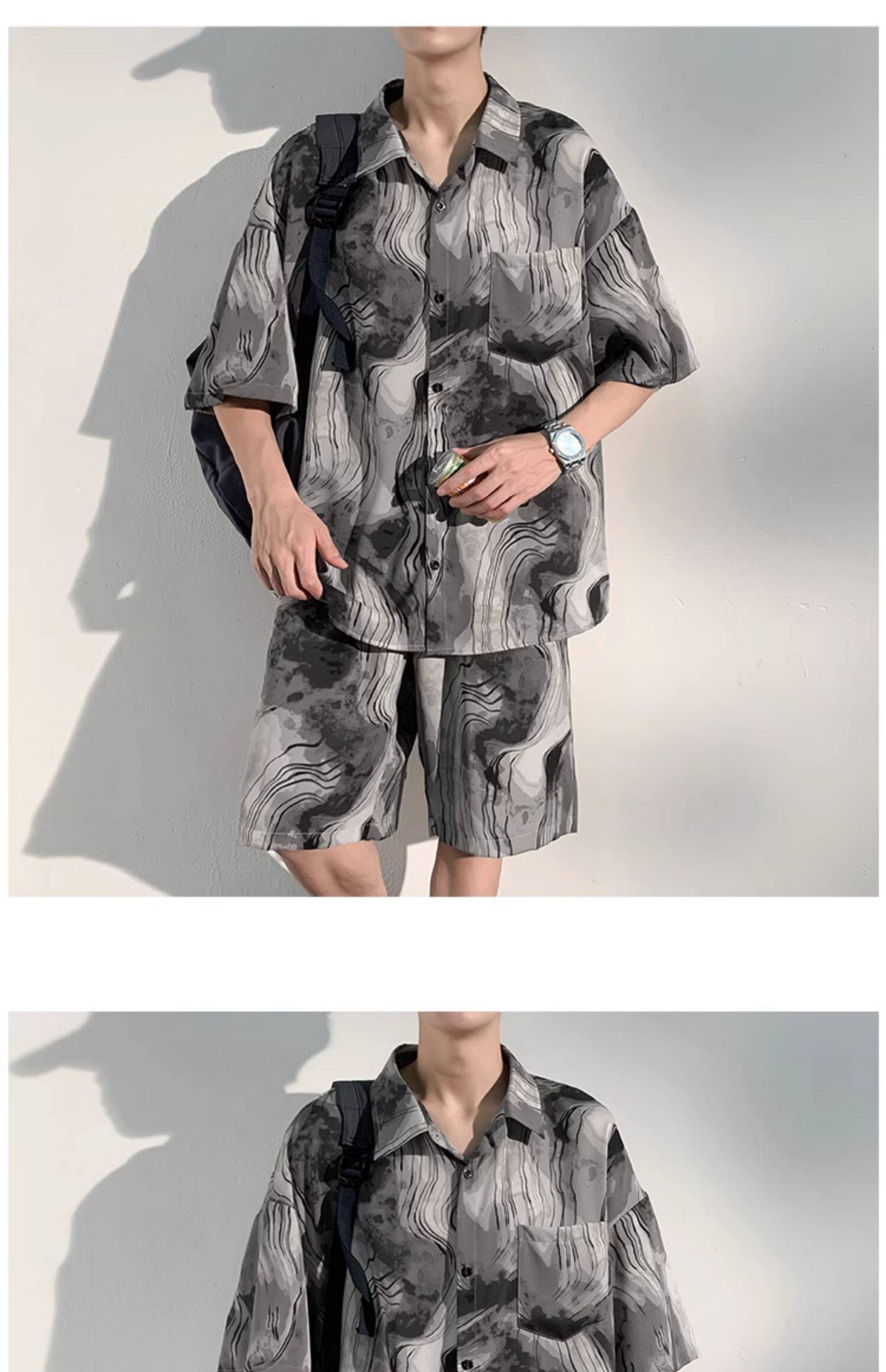 새로운 중국 스타일 국가 스타일 아이스 실크 비치 세트 남성 여름 얇은 느슨한 플러스 사이즈 셔츠 반바지 여름 의류