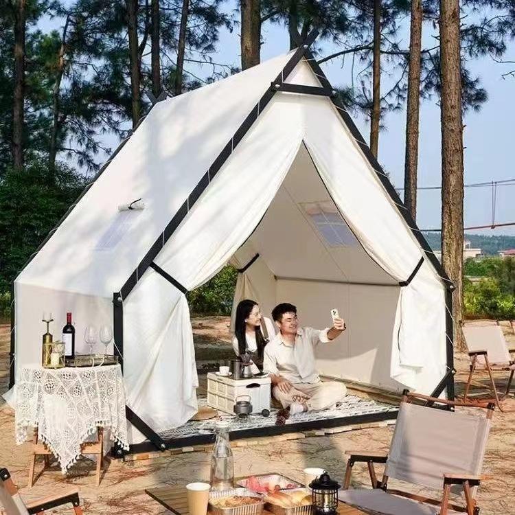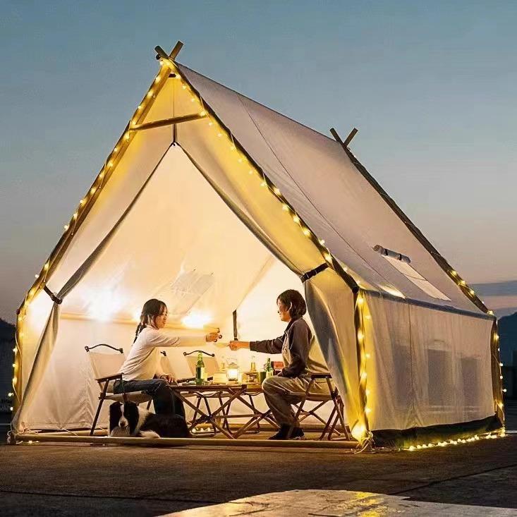 2* 2m 목조 주택 유형 텐트 바닥 없음 따뜻한 램프 제공